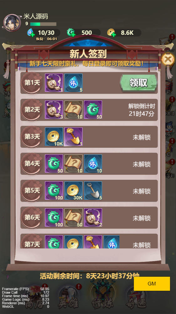 这里有个GM按钮。点击进去后我们试试。输入左侧的命令。右侧是说明。执行后就可以了。我们先通关第一关。然后试试GM命令功能。好了,其他功能就自行测试吧。更多的游戏资源可以访问www.MiR6.com下载,我们每款游戏资源均单独制作了独立的视频架设教程,让小白也可以快速上手游戏架设,快来体验自己做GM的乐趣吧!