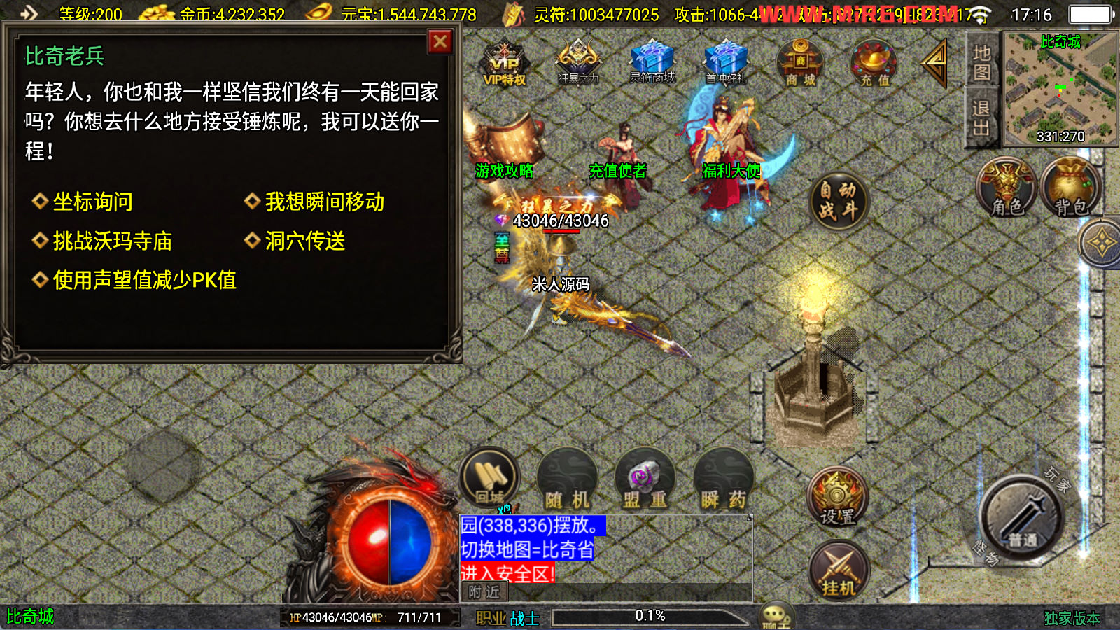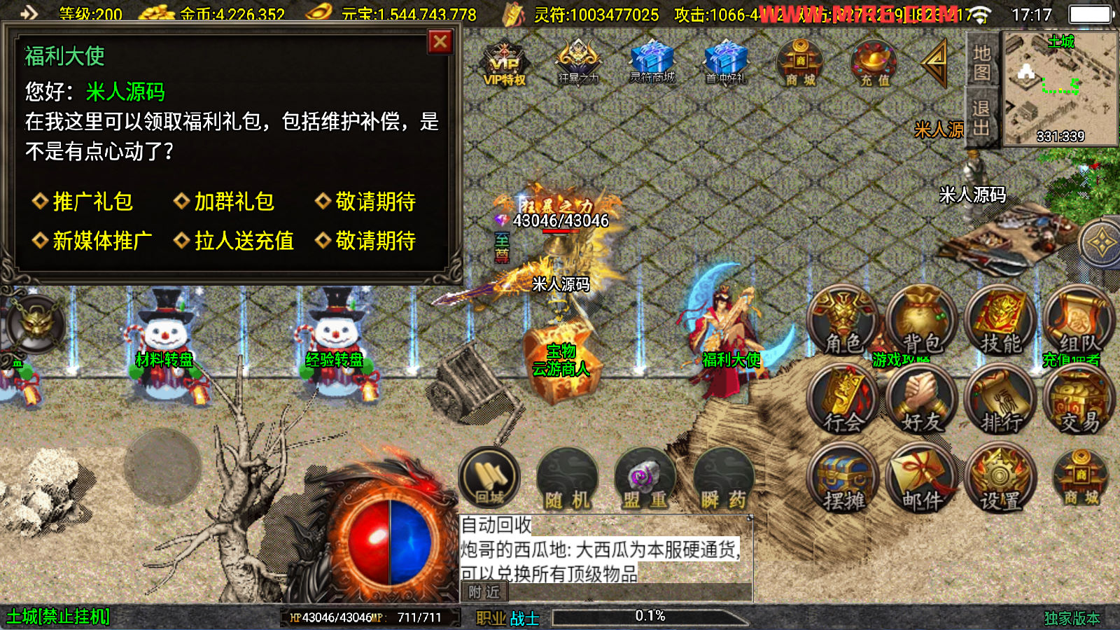 好了,下面我们测试下游戏里的功能看看。其他功能就自行测试吧。更多的游戏资源可以访问www.MiR6.com下载,我们每款游戏资源均单独制作了独立的视频架设教程,让小白也可以快速上手游戏架设,快来体验自己做GM的乐趣吧!