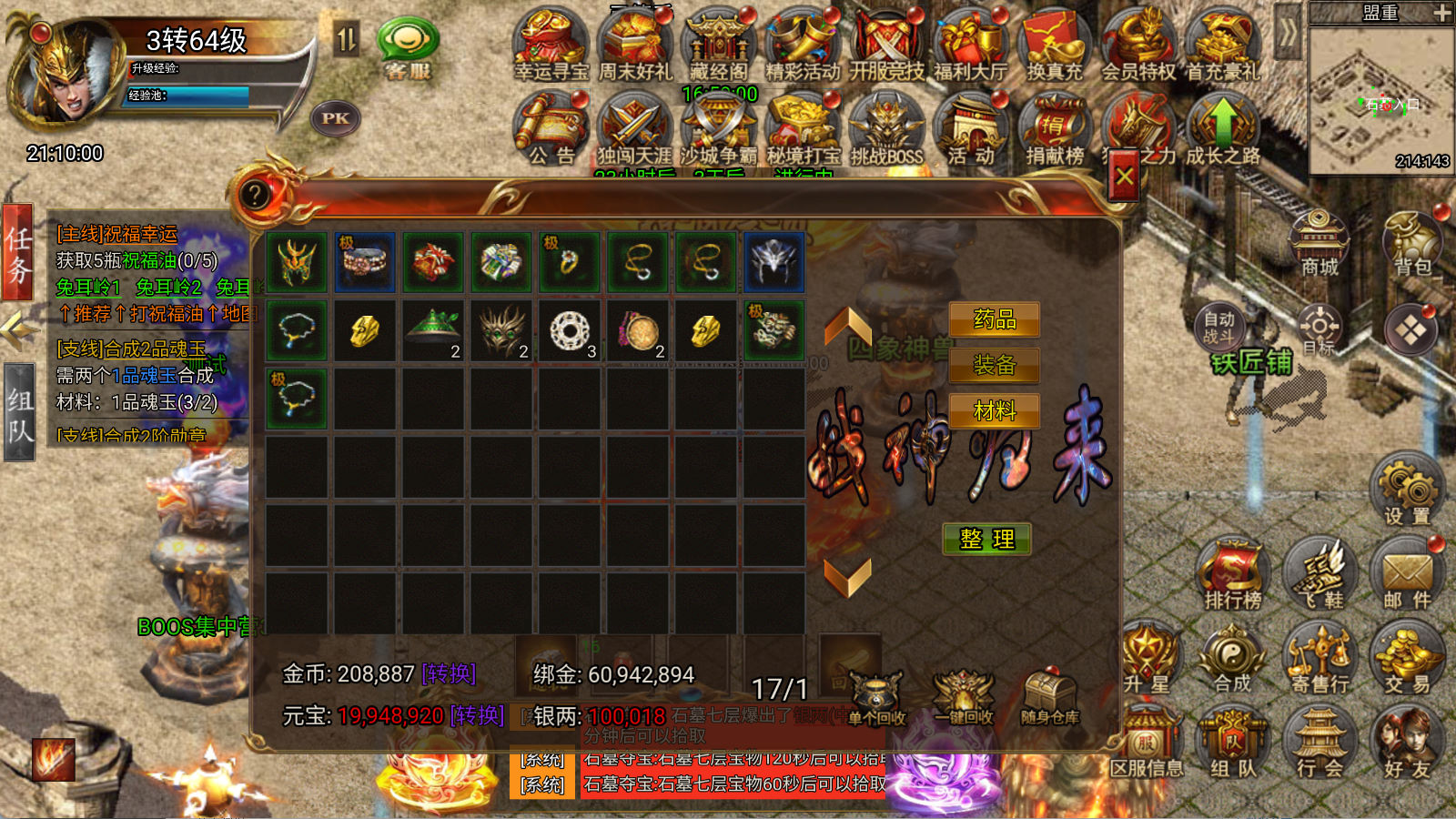 下面我们来测试下游戏里的功能看看。好了,其他功能就自行测试吧。更多的游戏资源可以访问www.MiR6.com下载,我们每款游戏资源均单独制作的有独立的视频架设教程,让小白也可以快速上手游戏架设,快来体验自己做GM的乐趣吧!