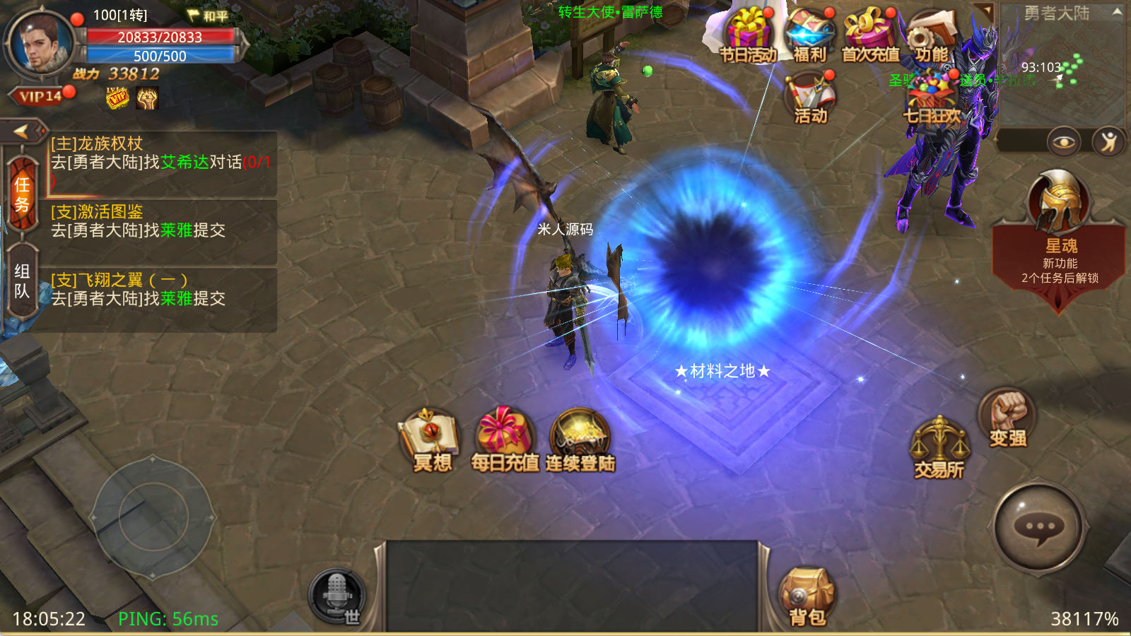 注:新注册角色,需要吃第一个任务送的那个主线任务:8000才能创建跨服房间!