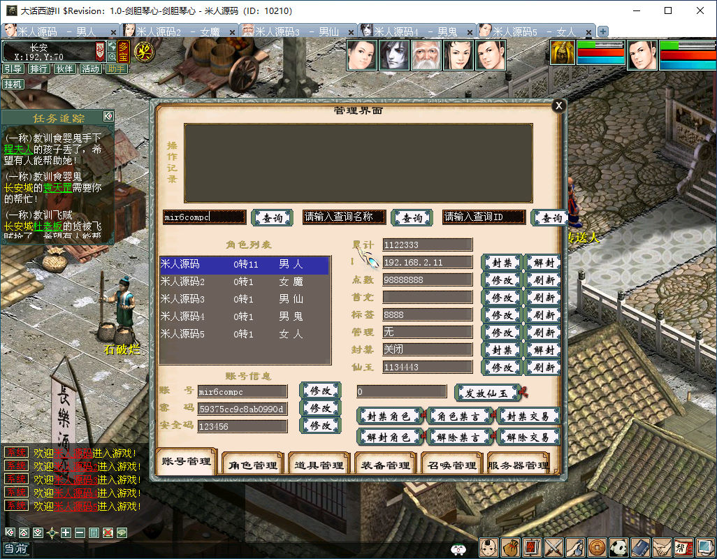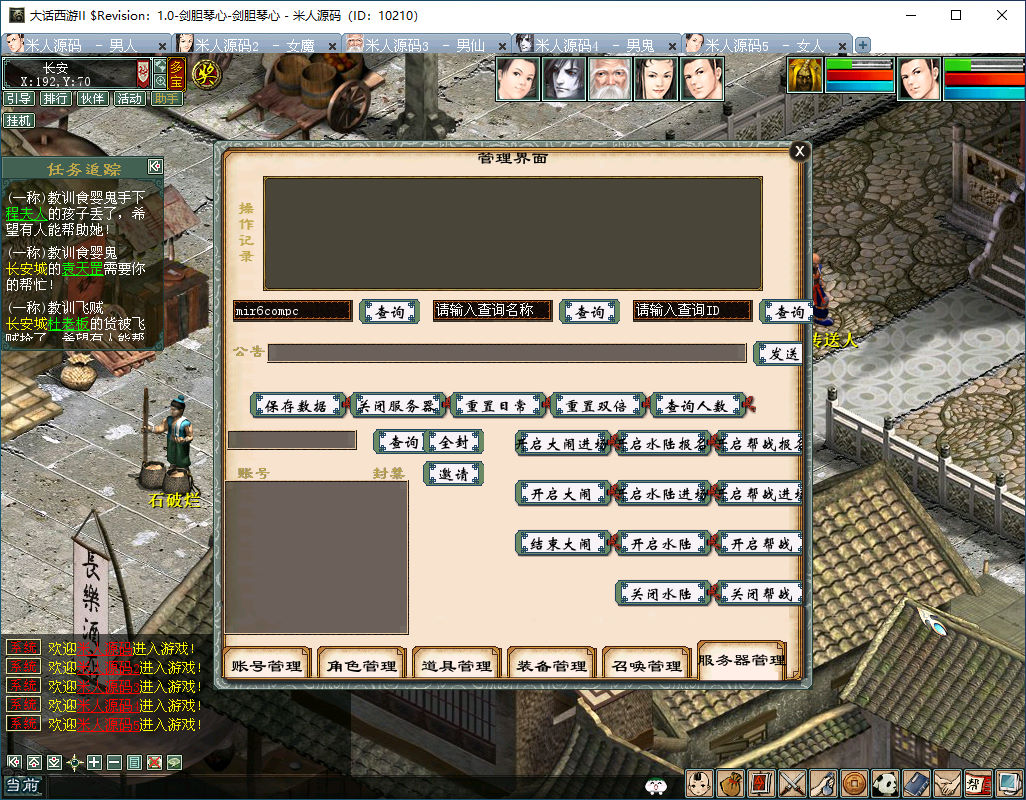 好了,我们进入游戏测试下管理员权限是否可以了。忘记启动服务端了,我们去启动下。刚才发送半天发送错账号了。