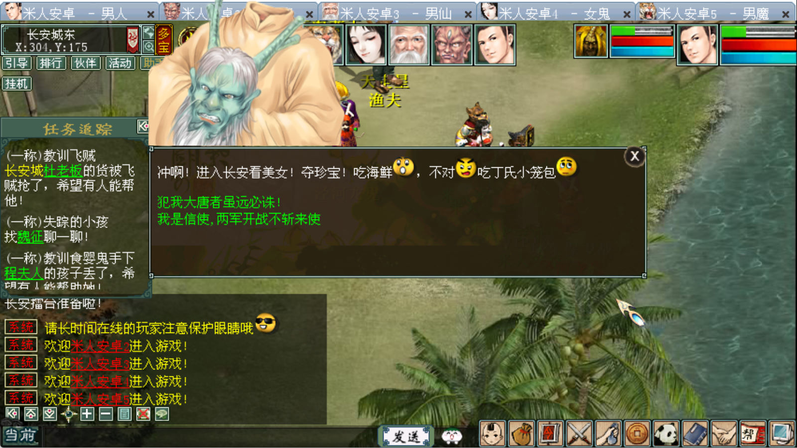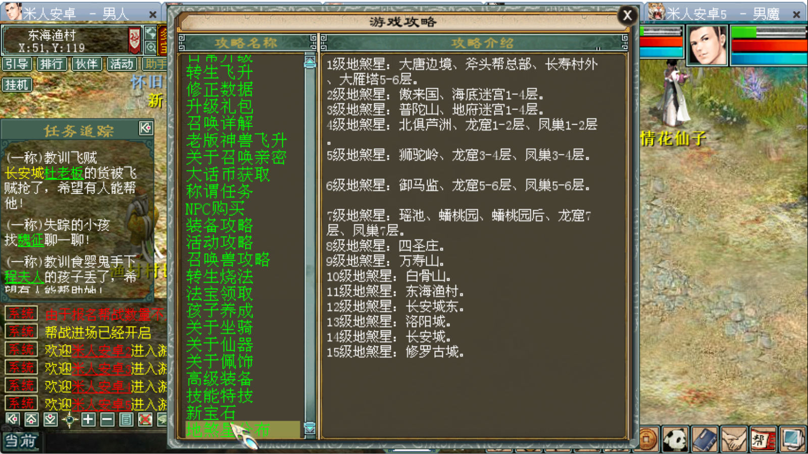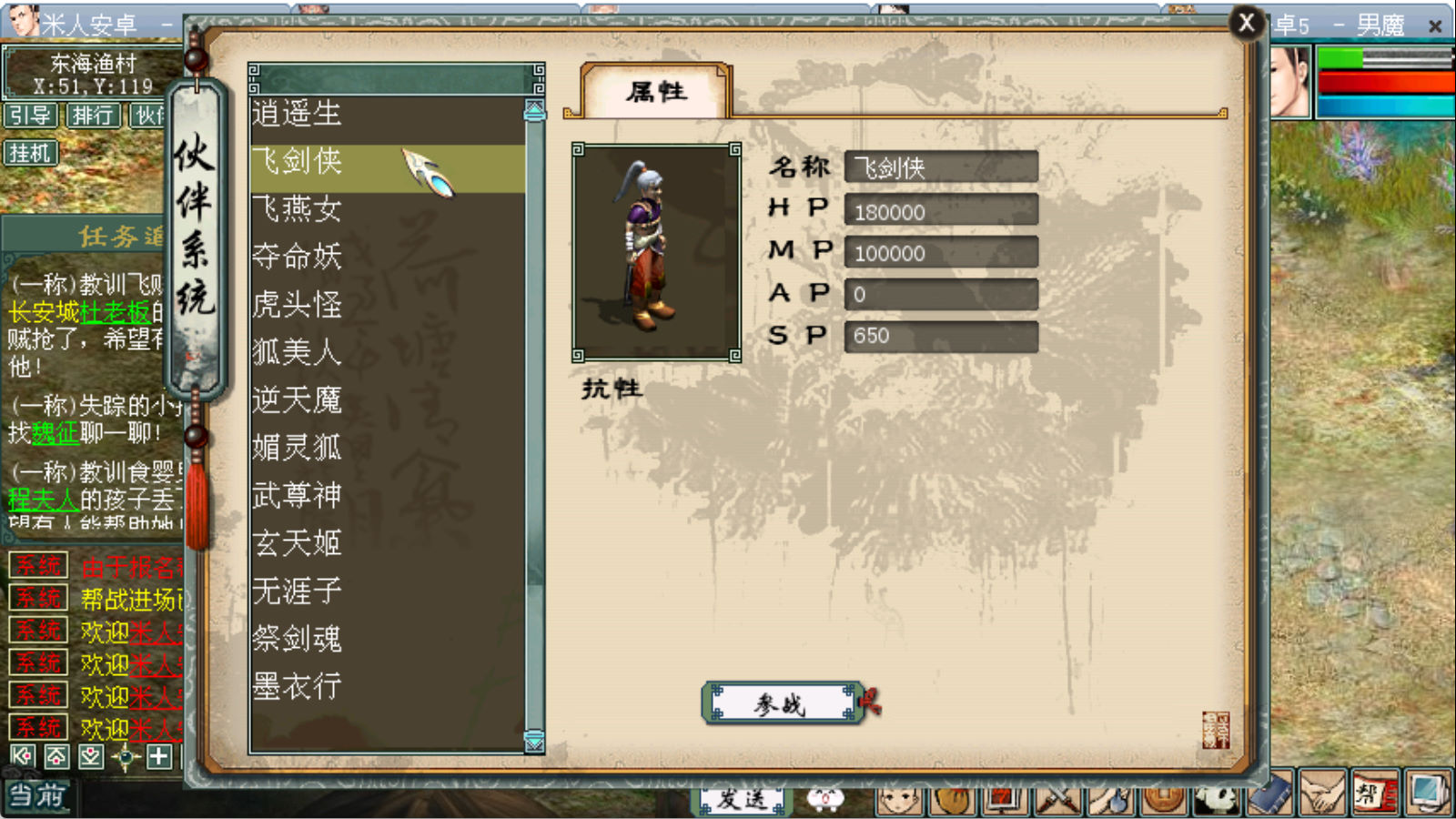 编译后的安卓客户端是在客户端源码根目录里。大话西游.apk 文件,我们把它安装到安卓模拟器里进入游戏试试看。