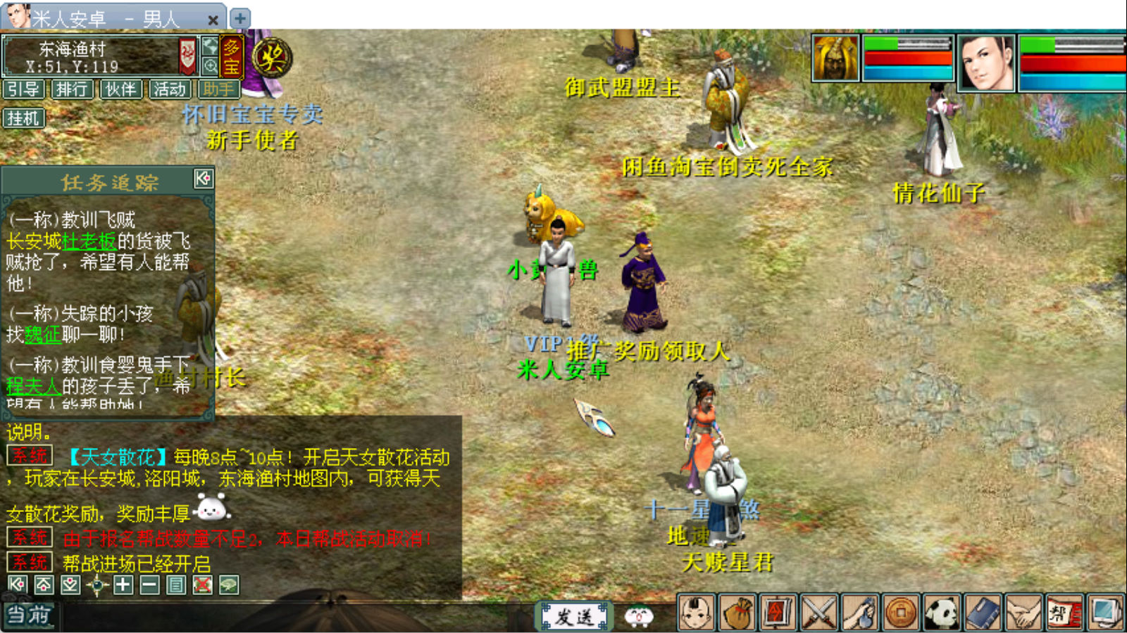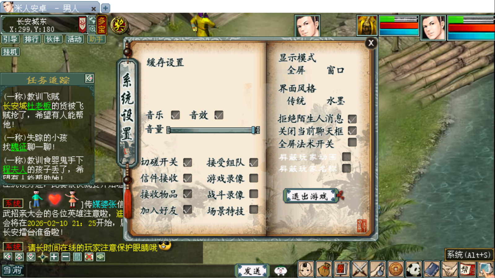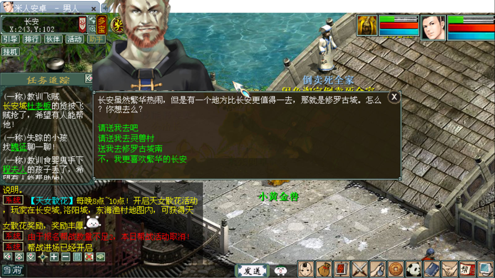 编译后的安卓客户端是在客户端源码根目录里。大话西游.apk 文件,我们把它安装到安卓模拟器里进入游戏试试看。
