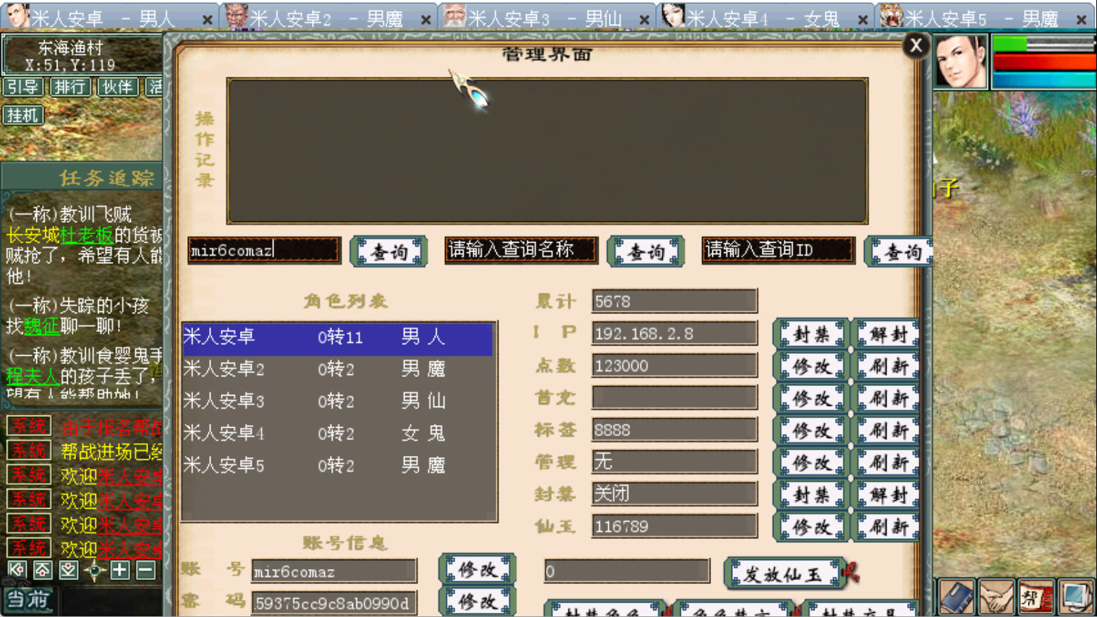 下面我们分别测试下PC客户端和安卓客户端里的游戏功能看看。好了,其他功能就自行测试吧。更多的游戏资源可以访问www.MiR6.com下载,我们每款游戏资源均单独制作了独立的视频架设教程,让小白也可以快速上手游戏架设,快来体验自己做GM的乐趣吧!