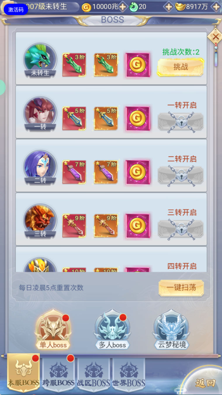 启动跨服大区: