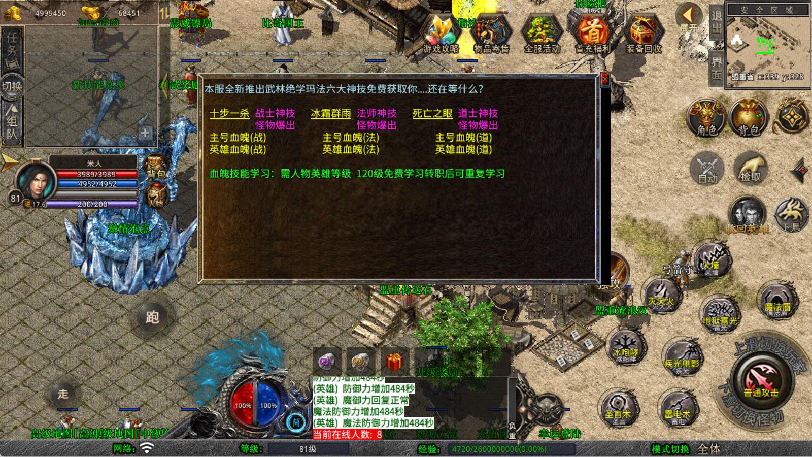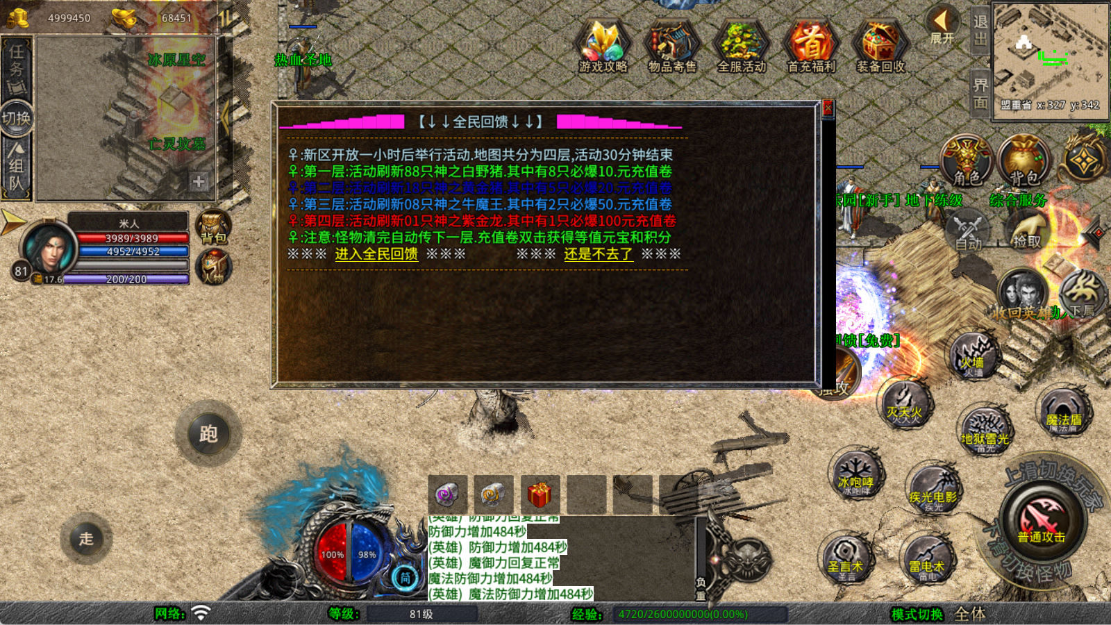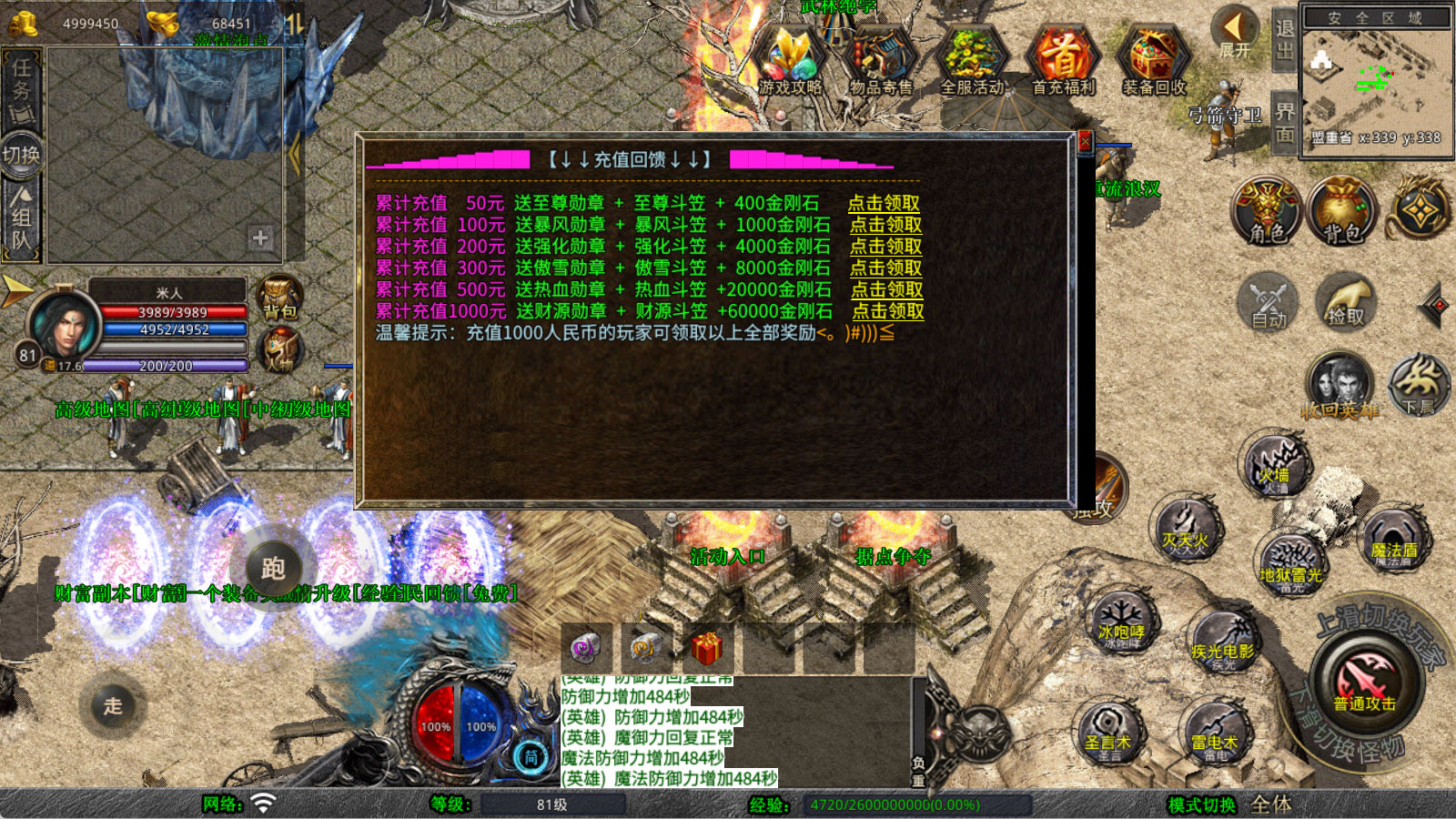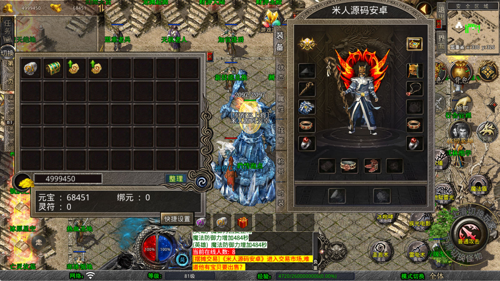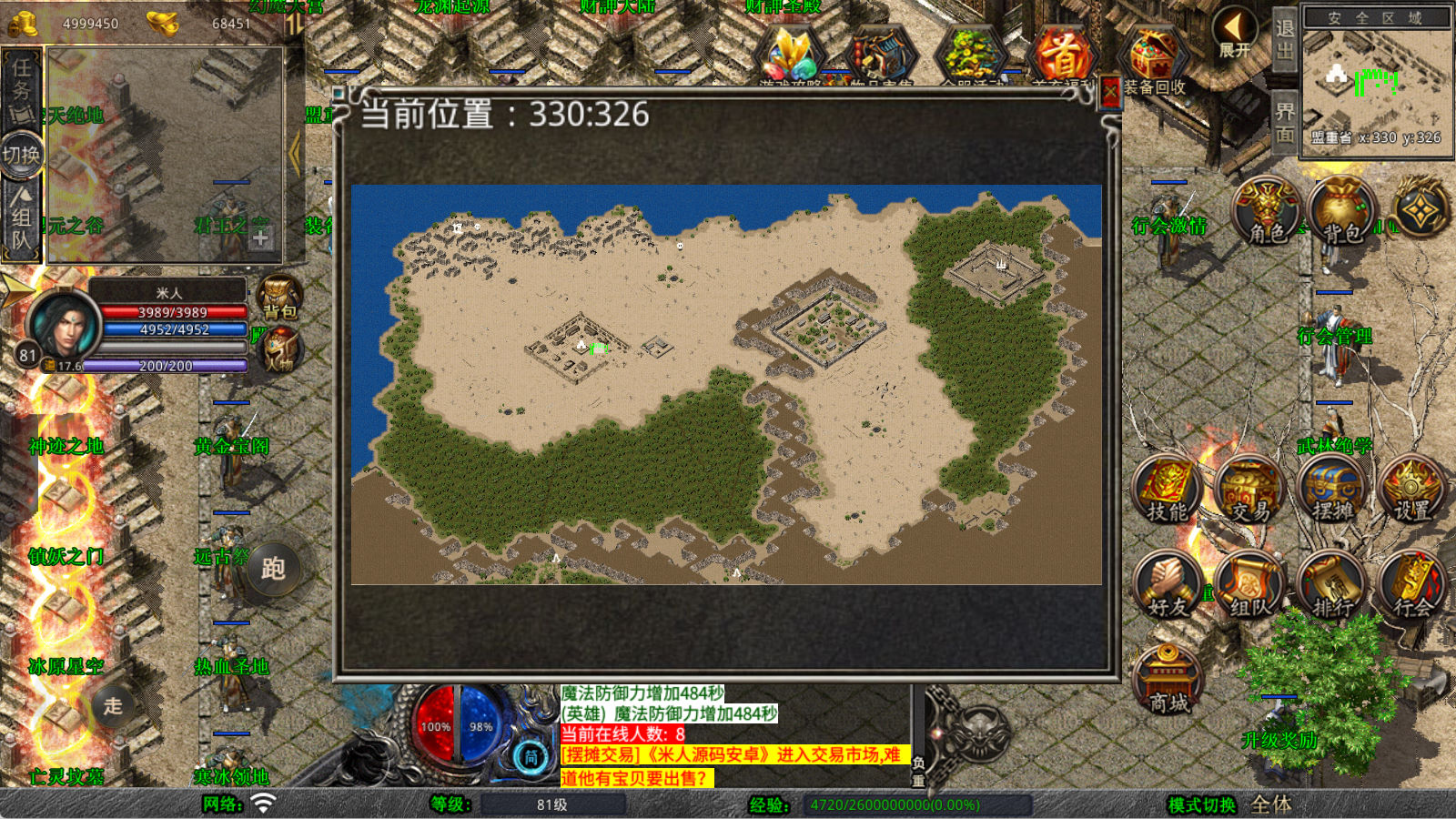 下面我们来测试下游戏里的功能看看吧。好了,其他功能就自行测试吧。更多的游戏资源可以访问www.MiR6.com下载,我们每款游戏资源均单独制作了独立的视频架设教程,让小白也可以快速上手游戏架设,快来体验自己做GM的乐趣吧!