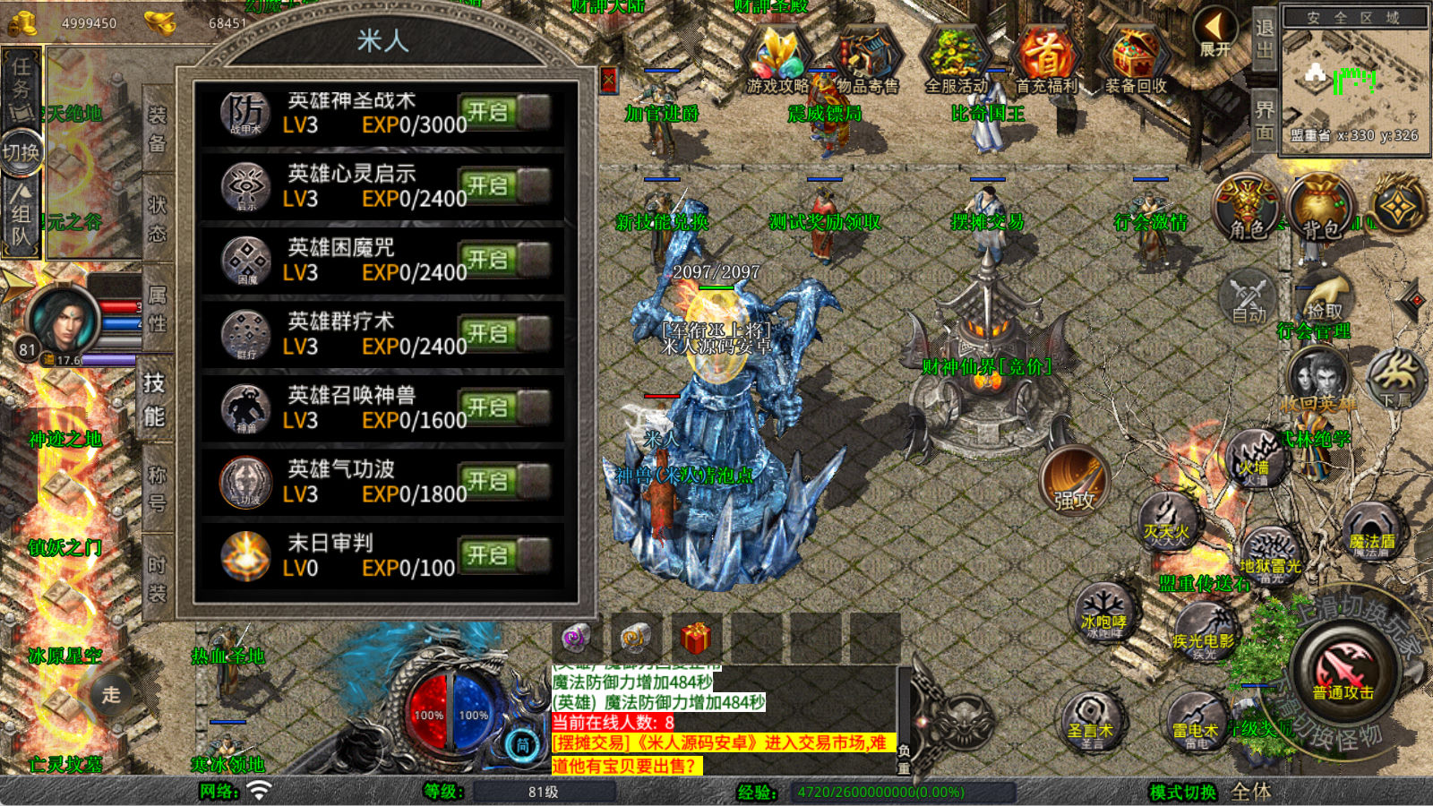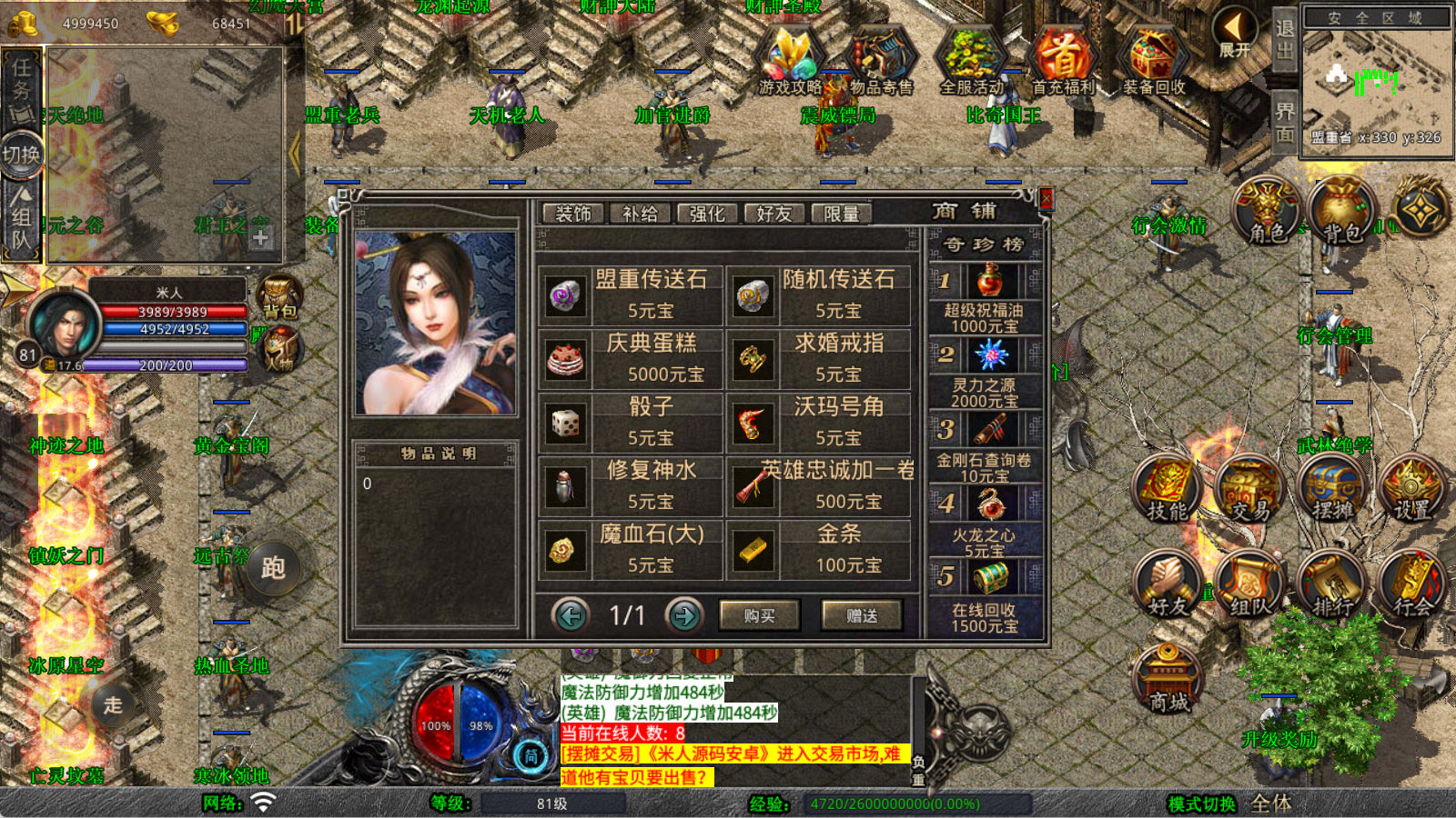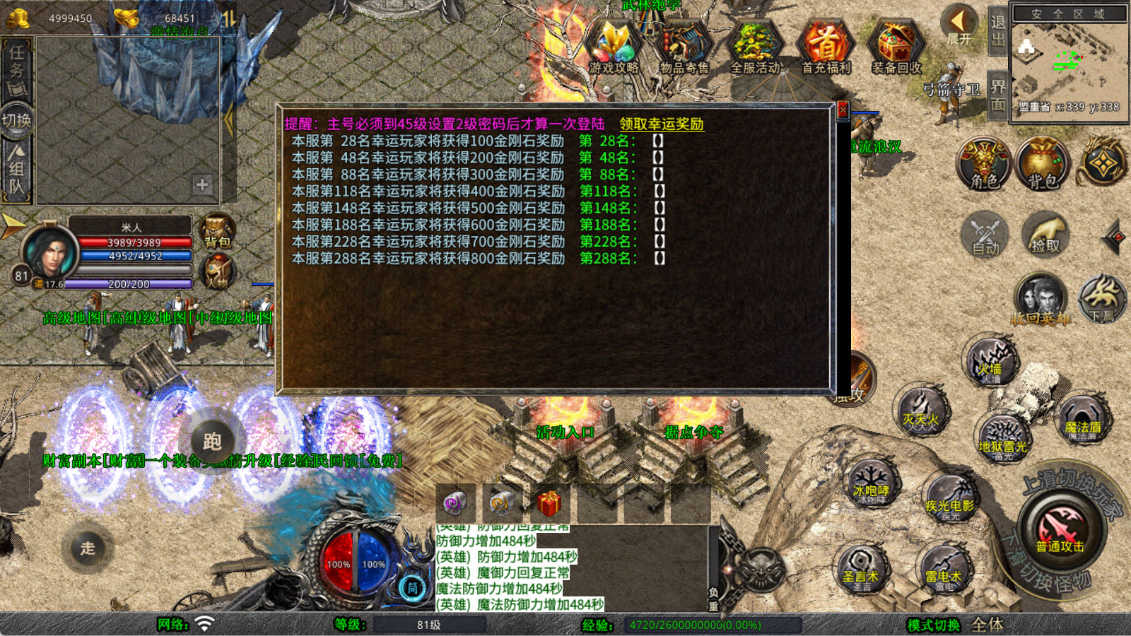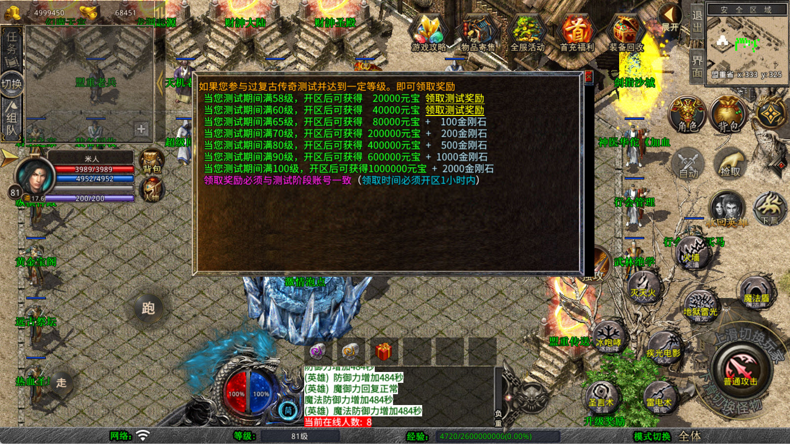 下面我们来测试下游戏里的功能看看吧。好了,其他功能就自行测试吧。更多的游戏资源可以访问www.MiR6.com下载,我们每款游戏资源均单独制作了独立的视频架设教程,让小白也可以快速上手游戏架设,快来体验自己做GM的乐趣吧!