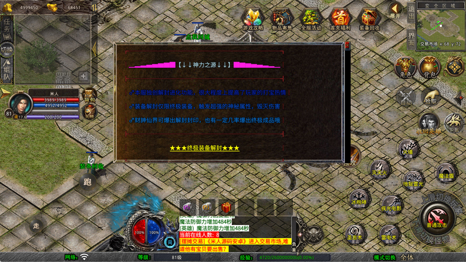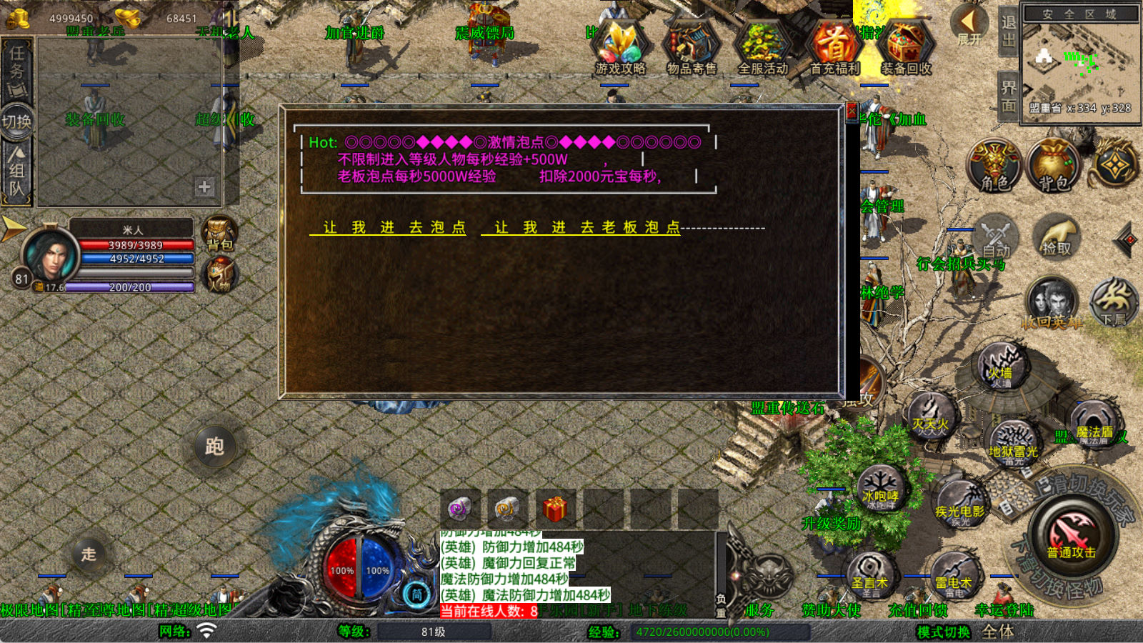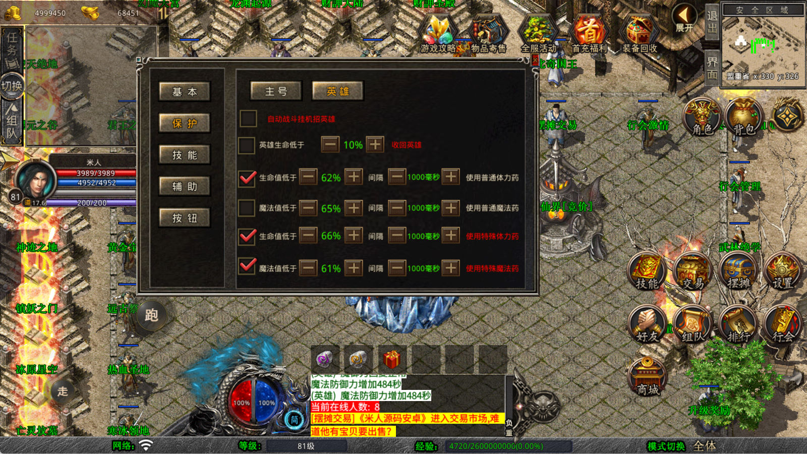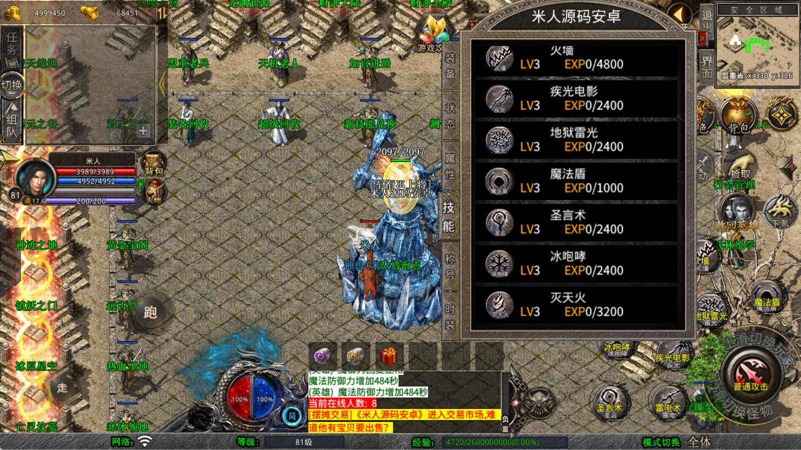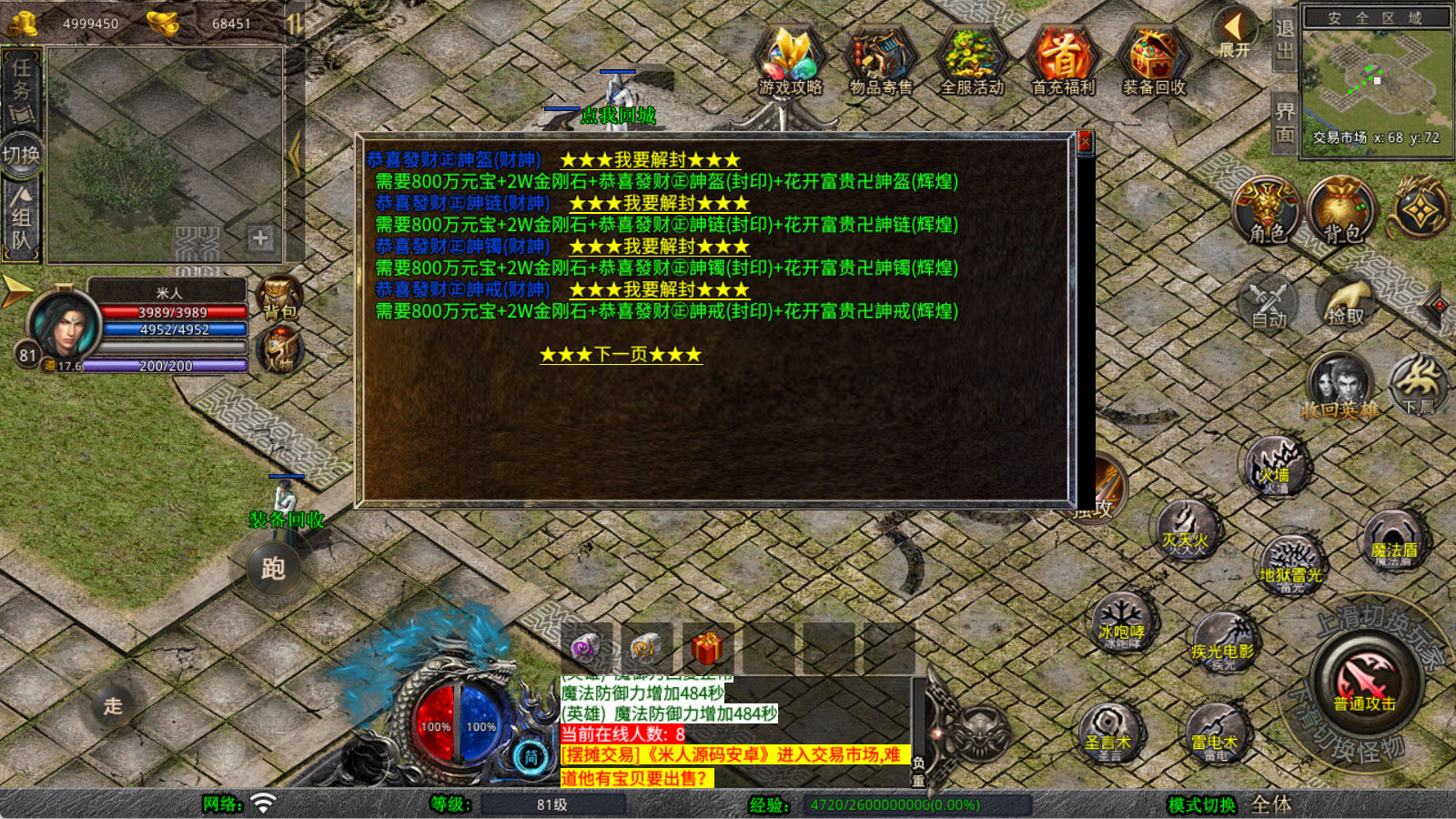 下面我们来测试下游戏里的功能看看吧。好了,其他功能就自行测试吧。更多的游戏资源可以访问www.MiR6.com下载,我们每款游戏资源均单独制作了独立的视频架设教程,让小白也可以快速上手游戏架设,快来体验自己做GM的乐趣吧!