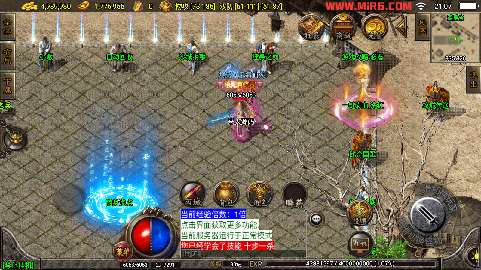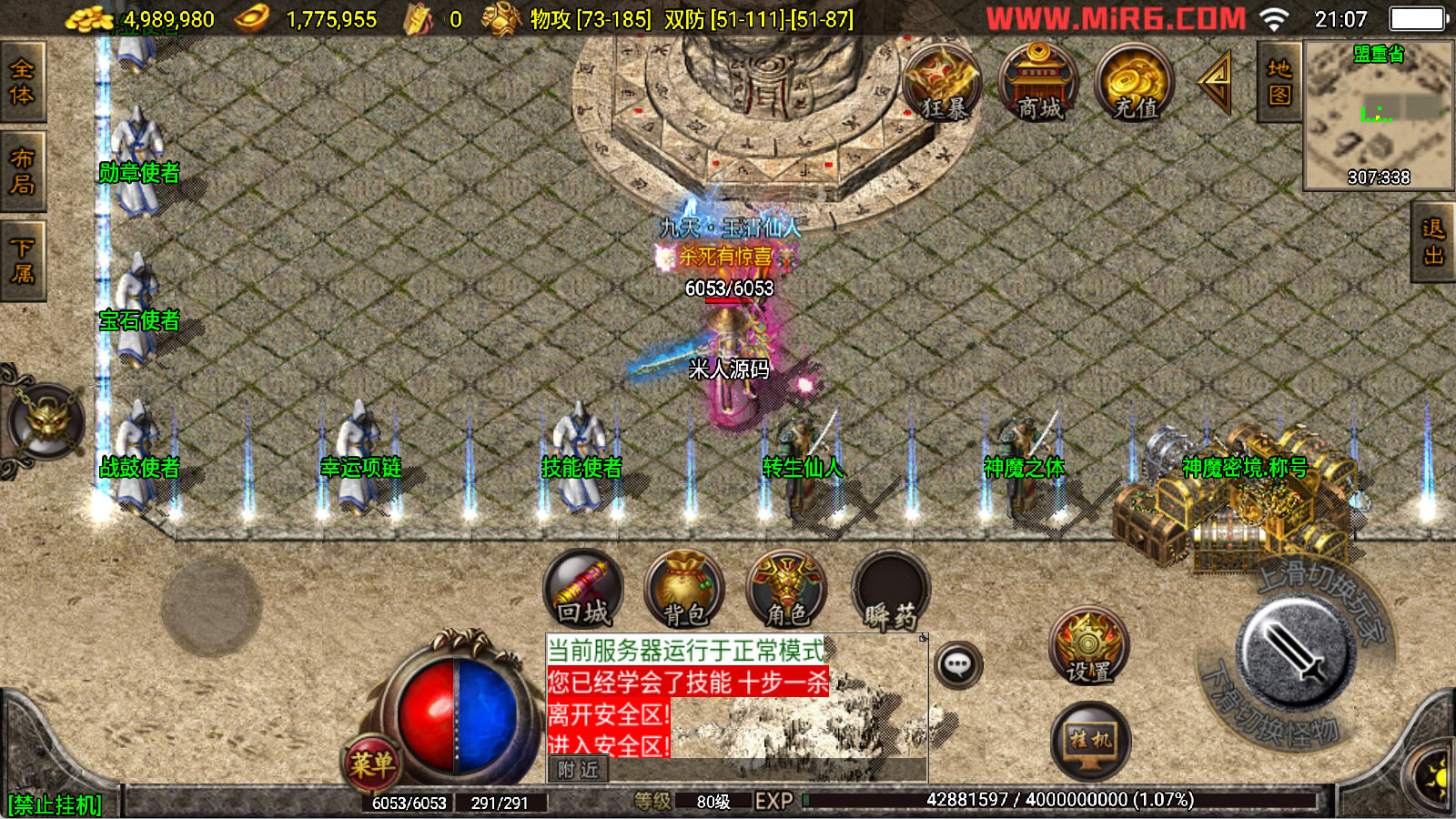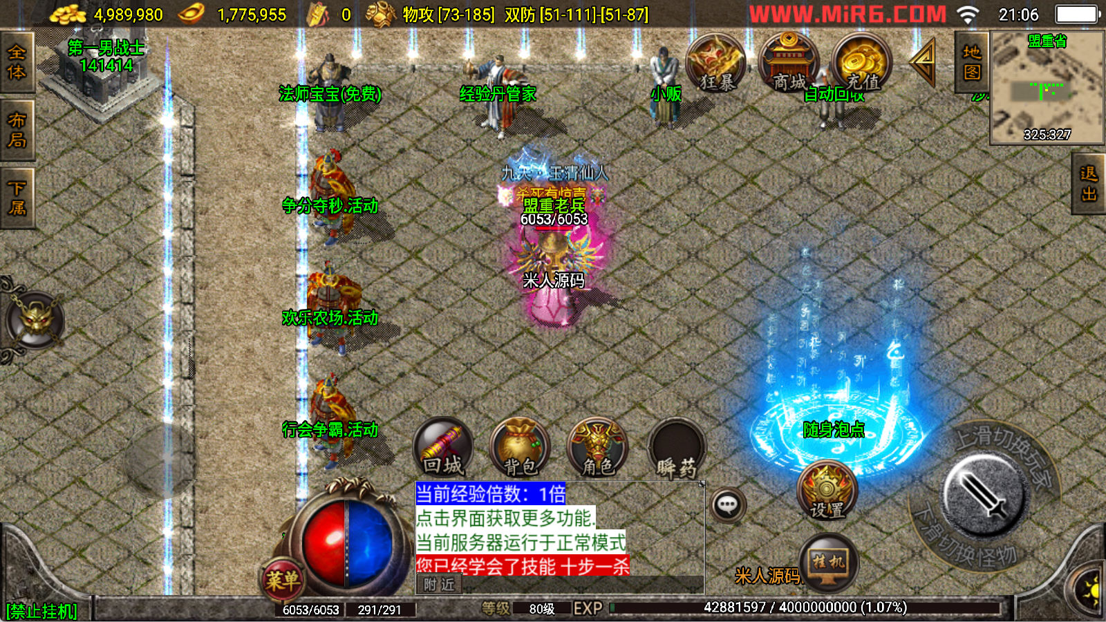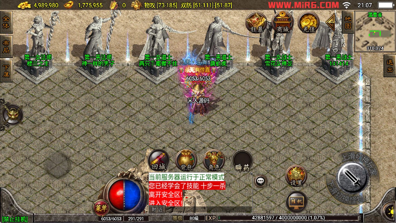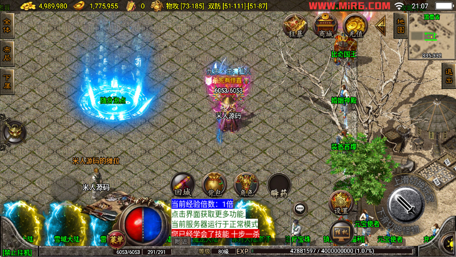 下面我们来测试下游戏里的功能看看。好了,其他功能就自行测试吧。更多的游戏资源可以访问www.MiR6.com下载,我们每款游戏资源均单独制作了独立的视频架设教程,让小白也可以快速上手游戏架设,快来体验自己做GM的乐趣吧!