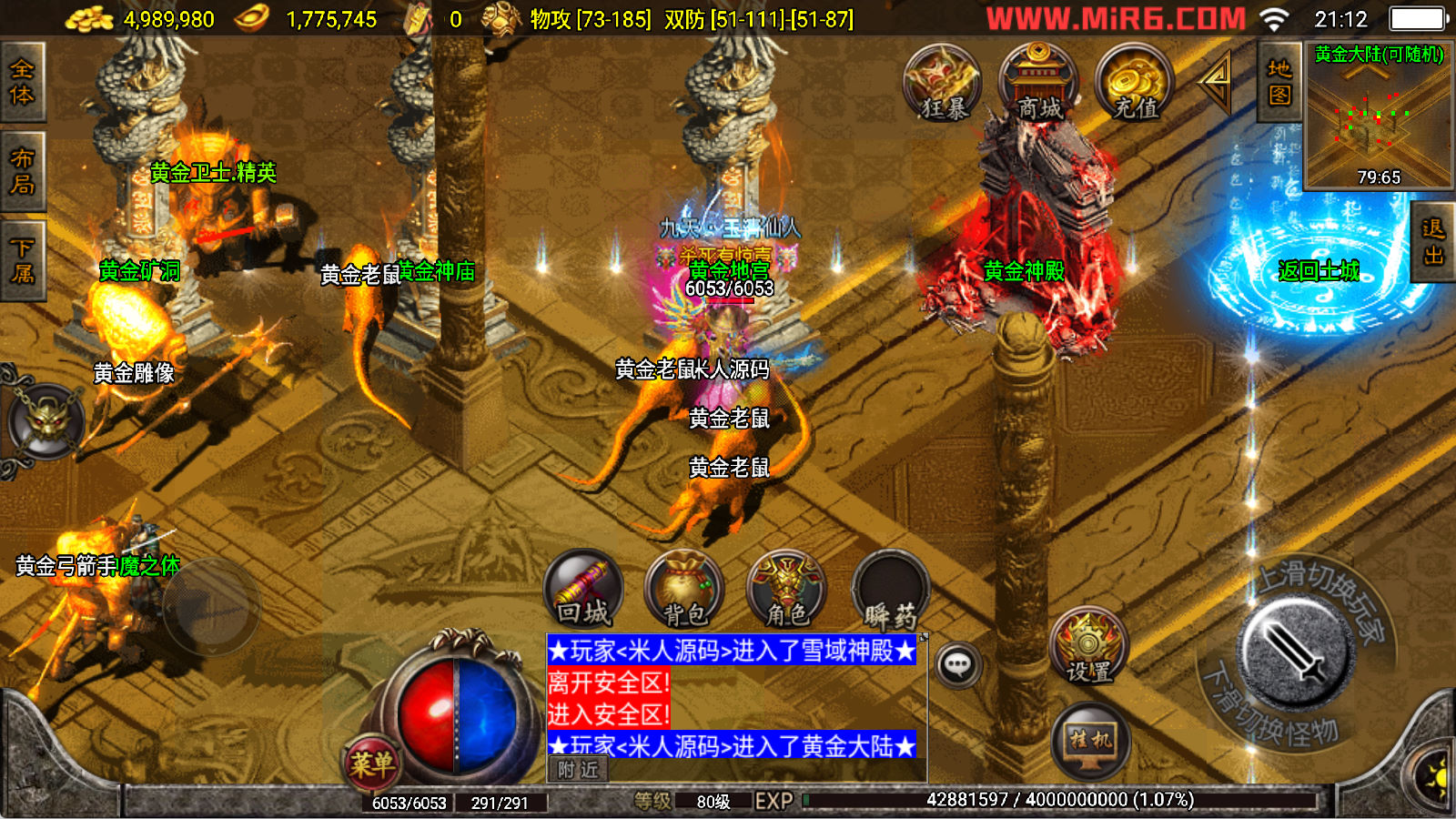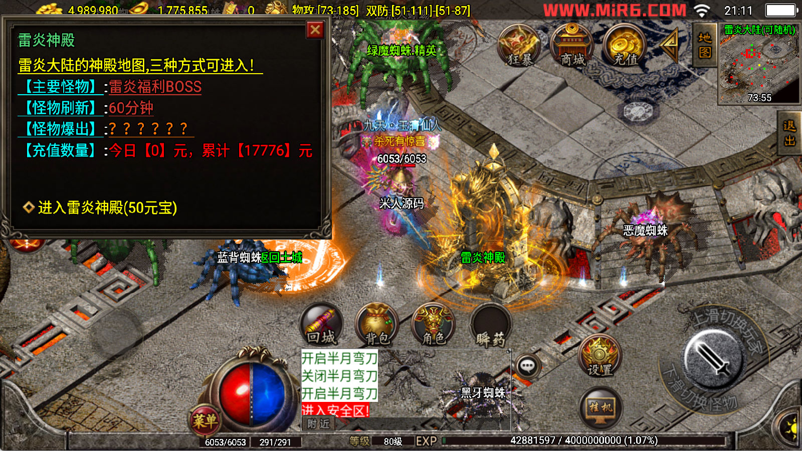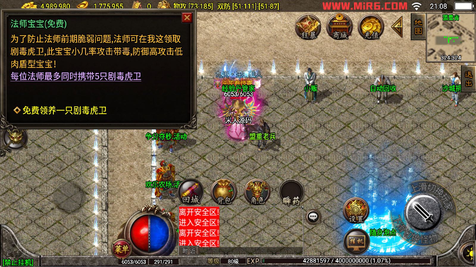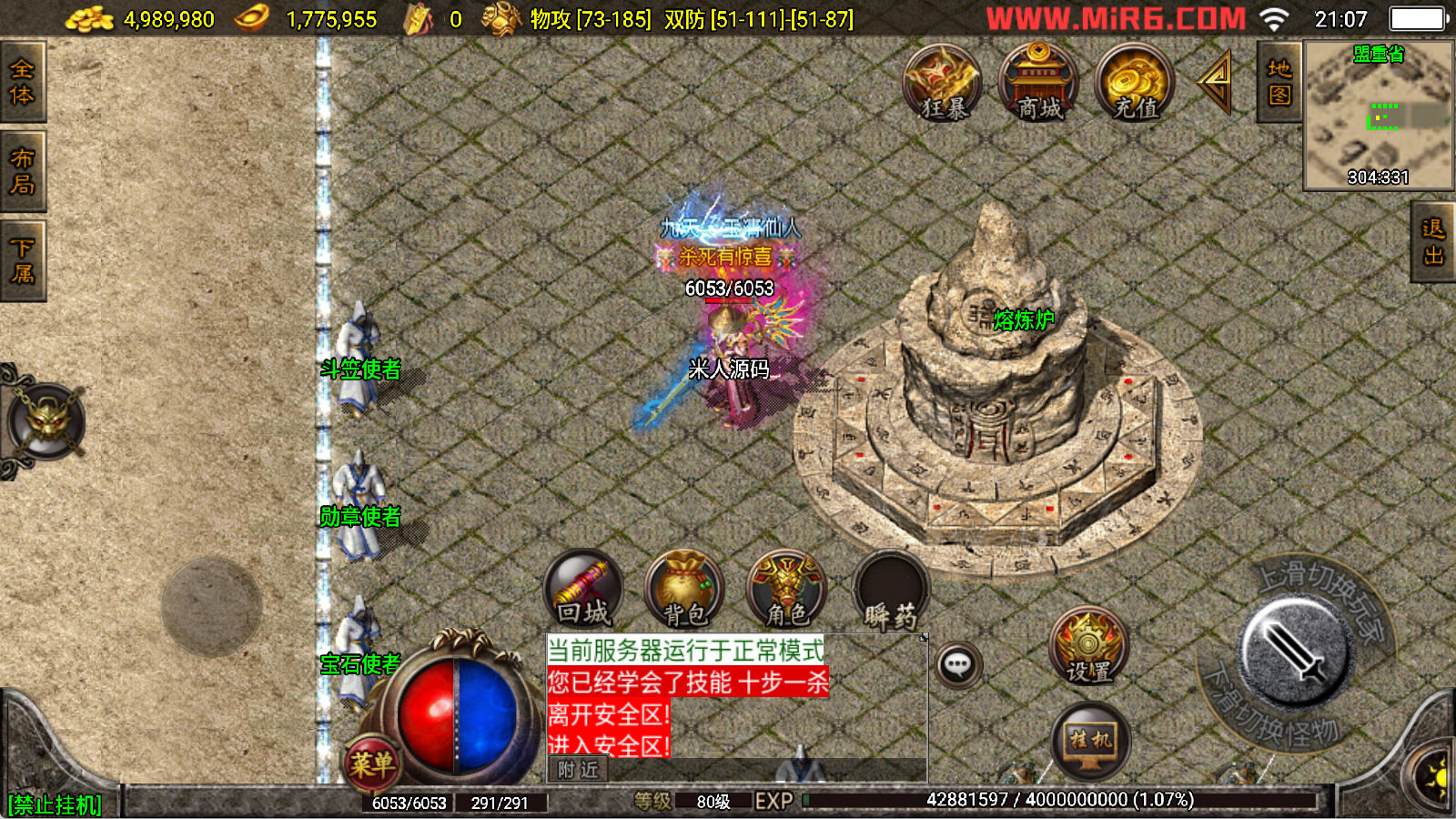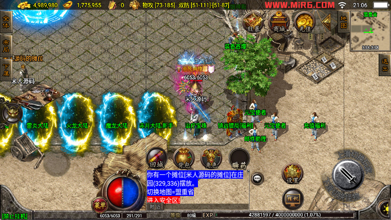 下面我们来测试下游戏里的功能看看。好了,其他功能就自行测试吧。更多的游戏资源可以访问www.MiR6.com下载,我们每款游戏资源均单独制作了独立的视频架设教程,让小白也可以快速上手游戏架设,快来体验自己做GM的乐趣吧!