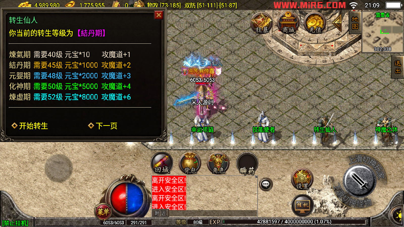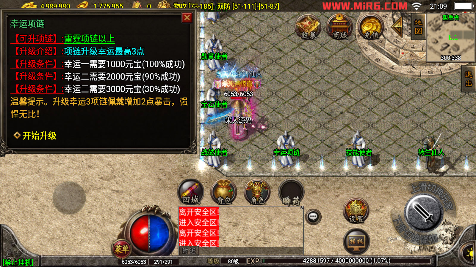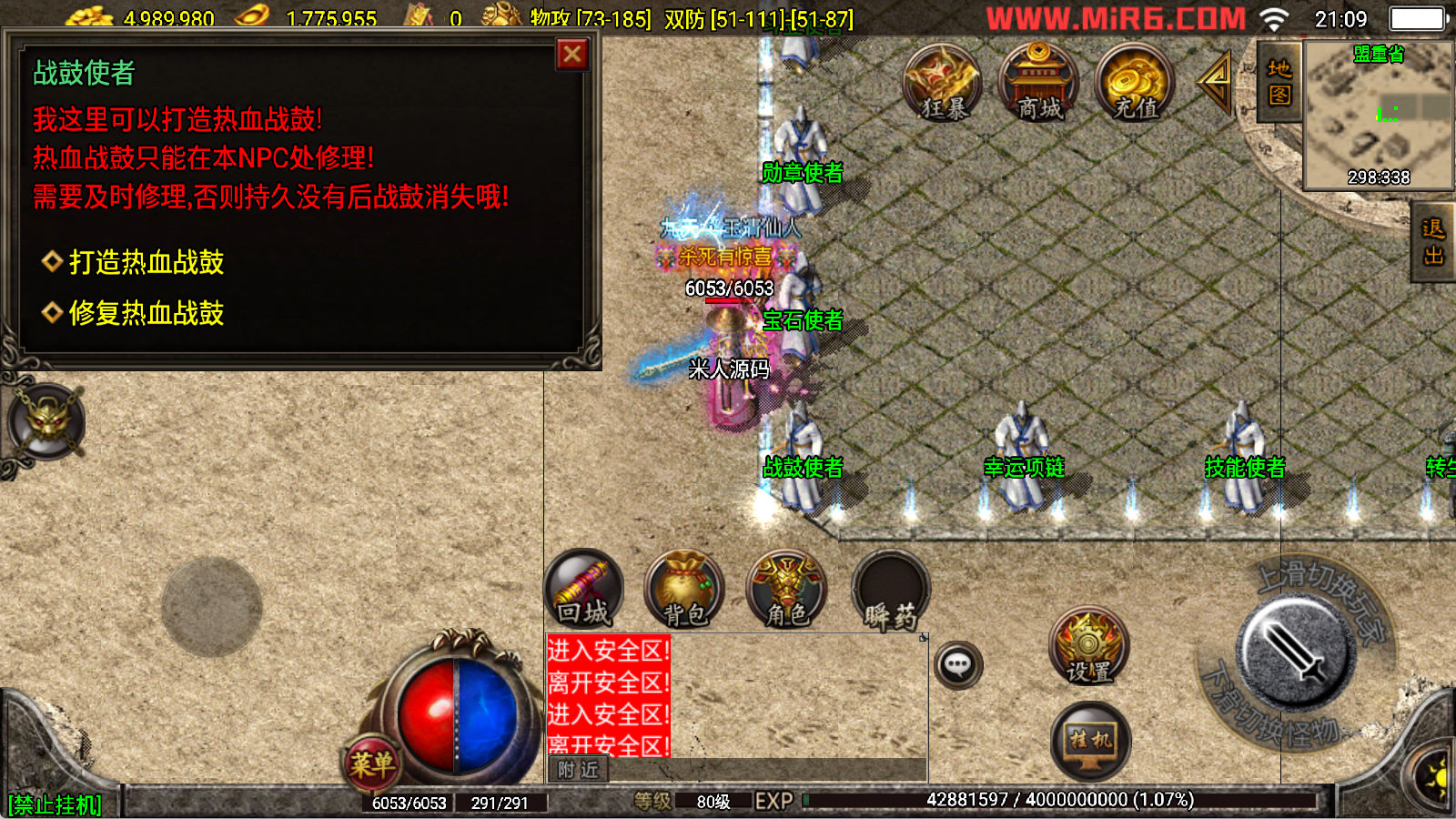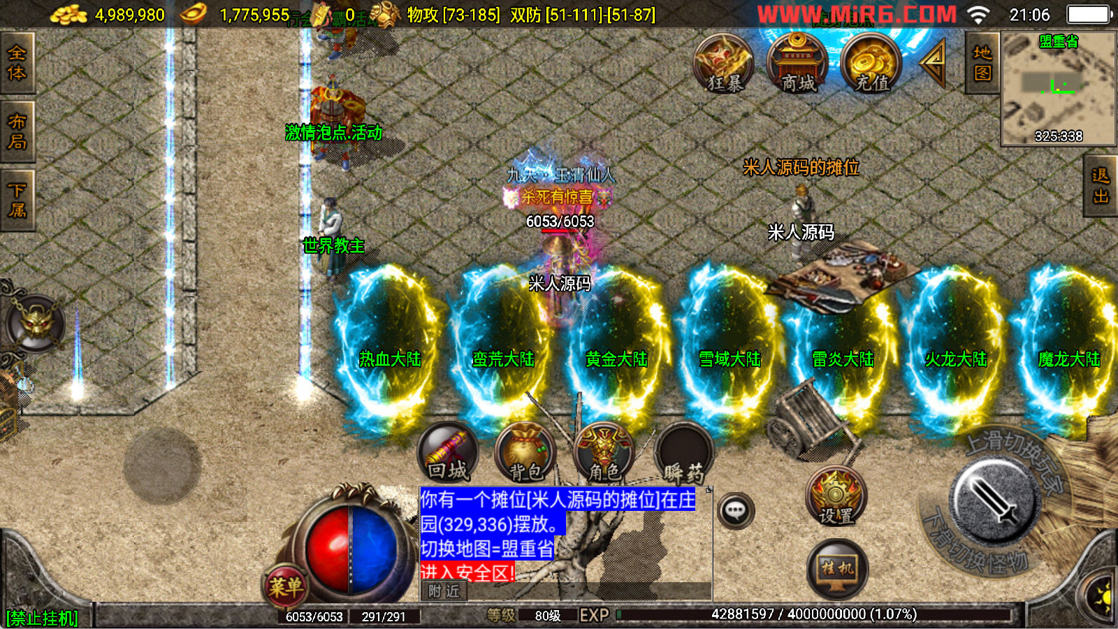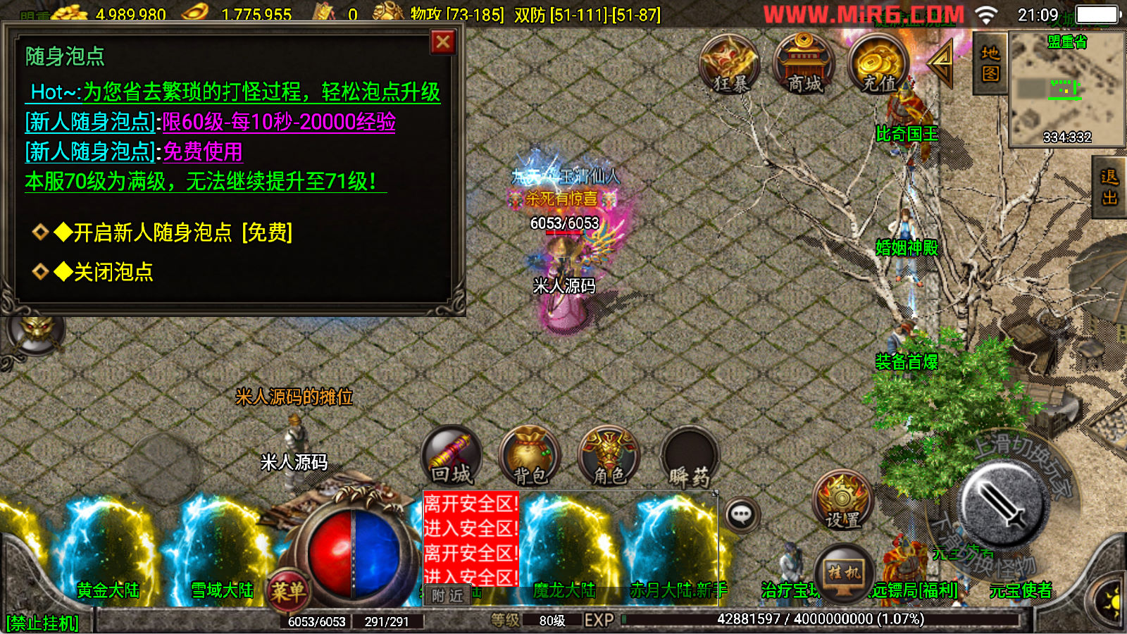 下面我们来测试下游戏里的功能看看。好了,其他功能就自行测试吧。更多的游戏资源可以访问www.MiR6.com下载,我们每款游戏资源均单独制作了独立的视频架设教程,让小白也可以快速上手游戏架设,快来体验自己做GM的乐趣吧!