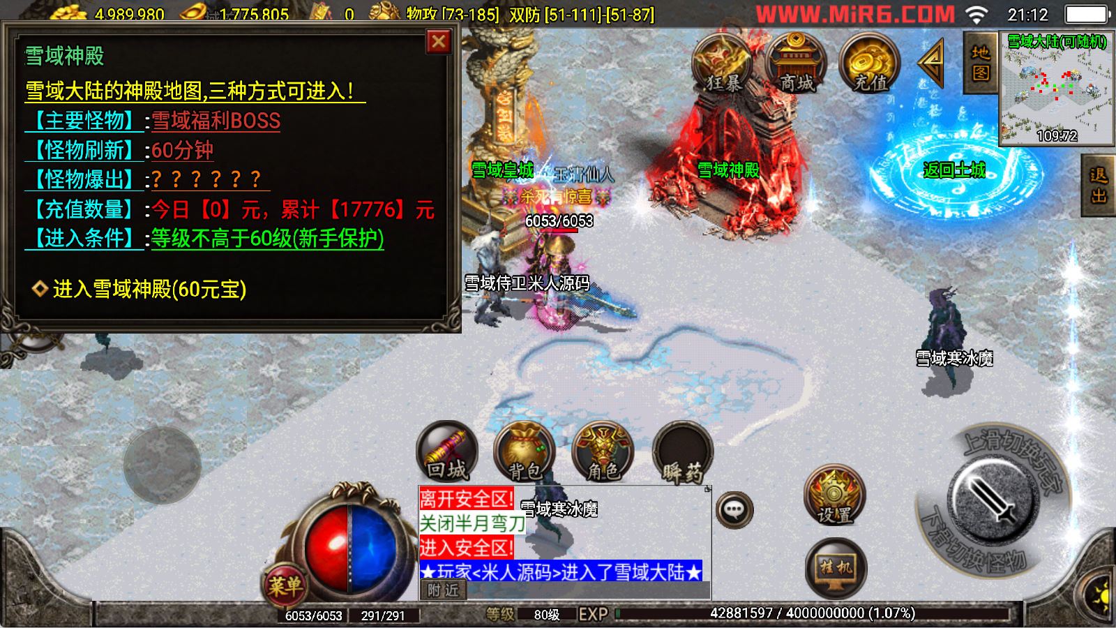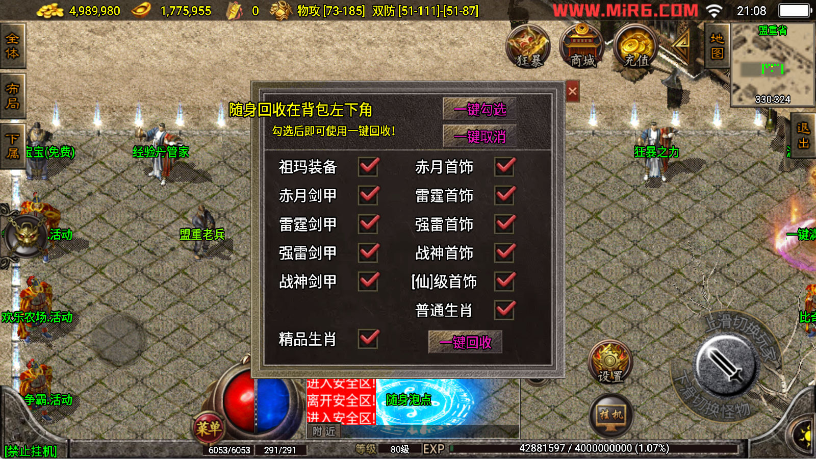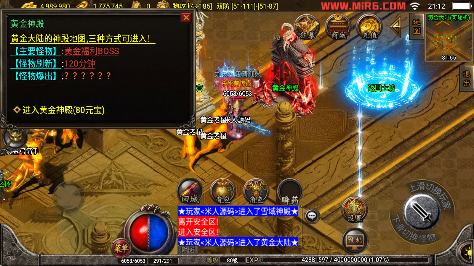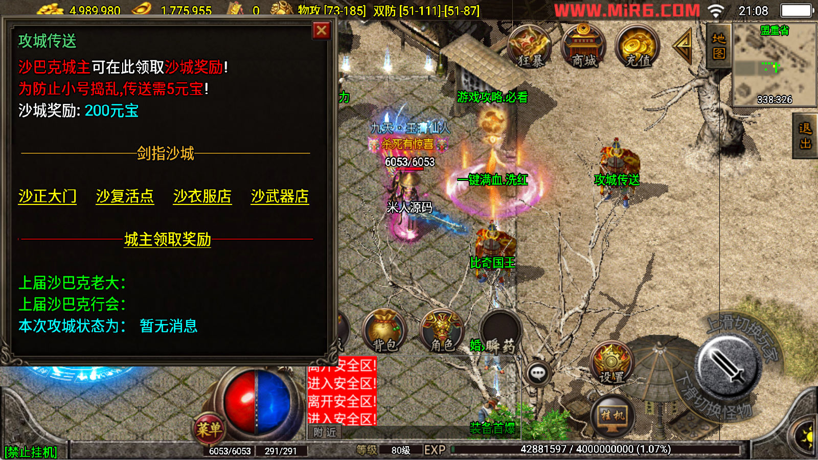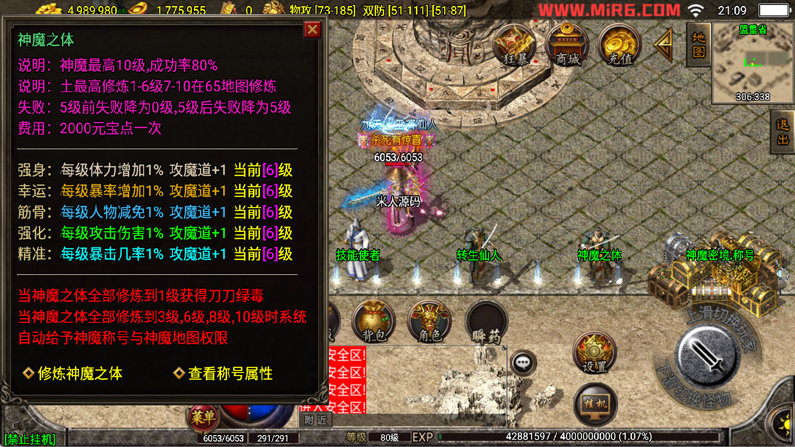 下面我们来测试下游戏里的功能看看。好了,其他功能就自行测试吧。更多的游戏资源可以访问www.MiR6.com下载,我们每款游戏资源均单独制作了独立的视频架设教程,让小白也可以快速上手游戏架设,快来体验自己做GM的乐趣吧!