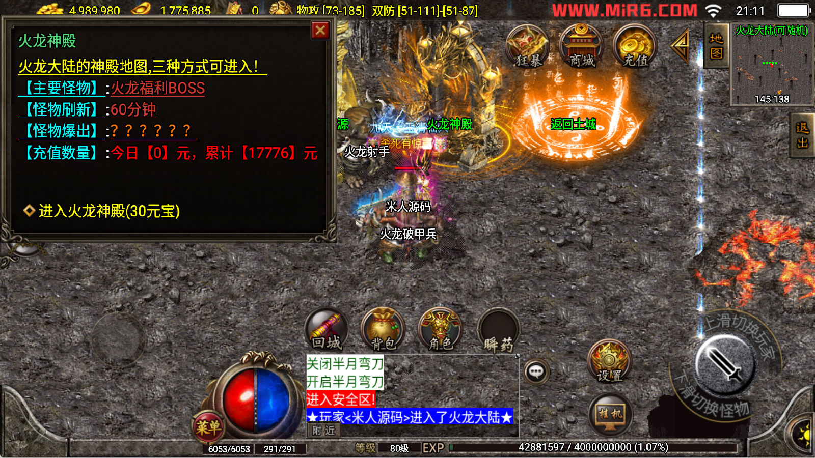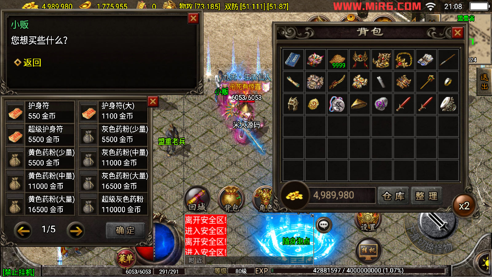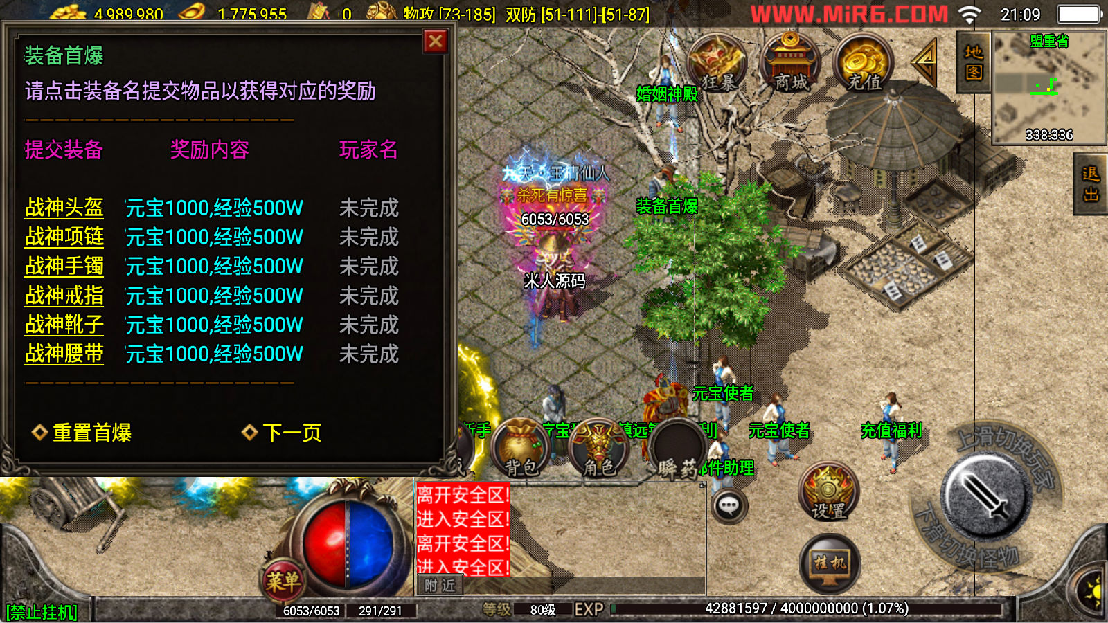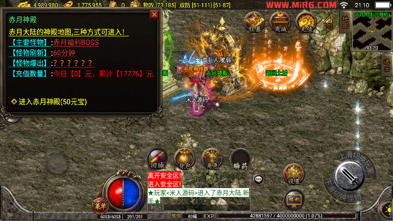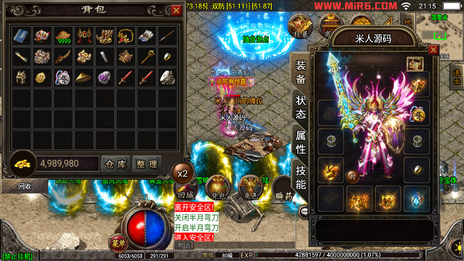 下面我们来测试下游戏里的功能看看。好了,其他功能就自行测试吧。更多的游戏资源可以访问www.MiR6.com下载,我们每款游戏资源均单独制作了独立的视频架设教程,让小白也可以快速上手游戏架设,快来体验自己做GM的乐趣吧!