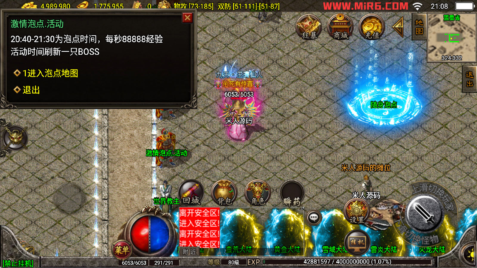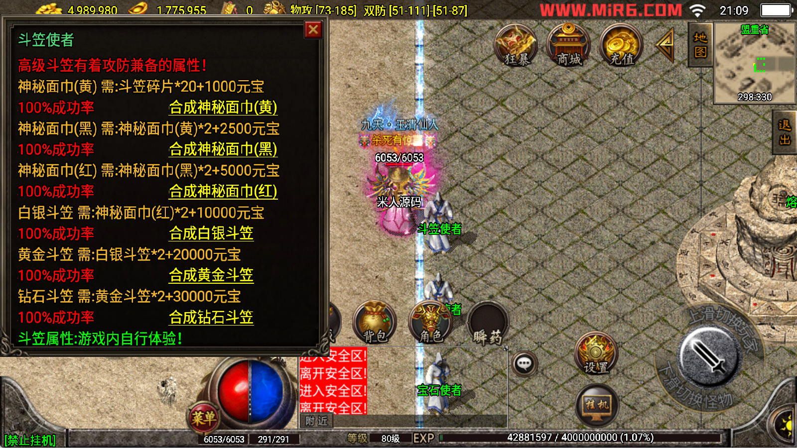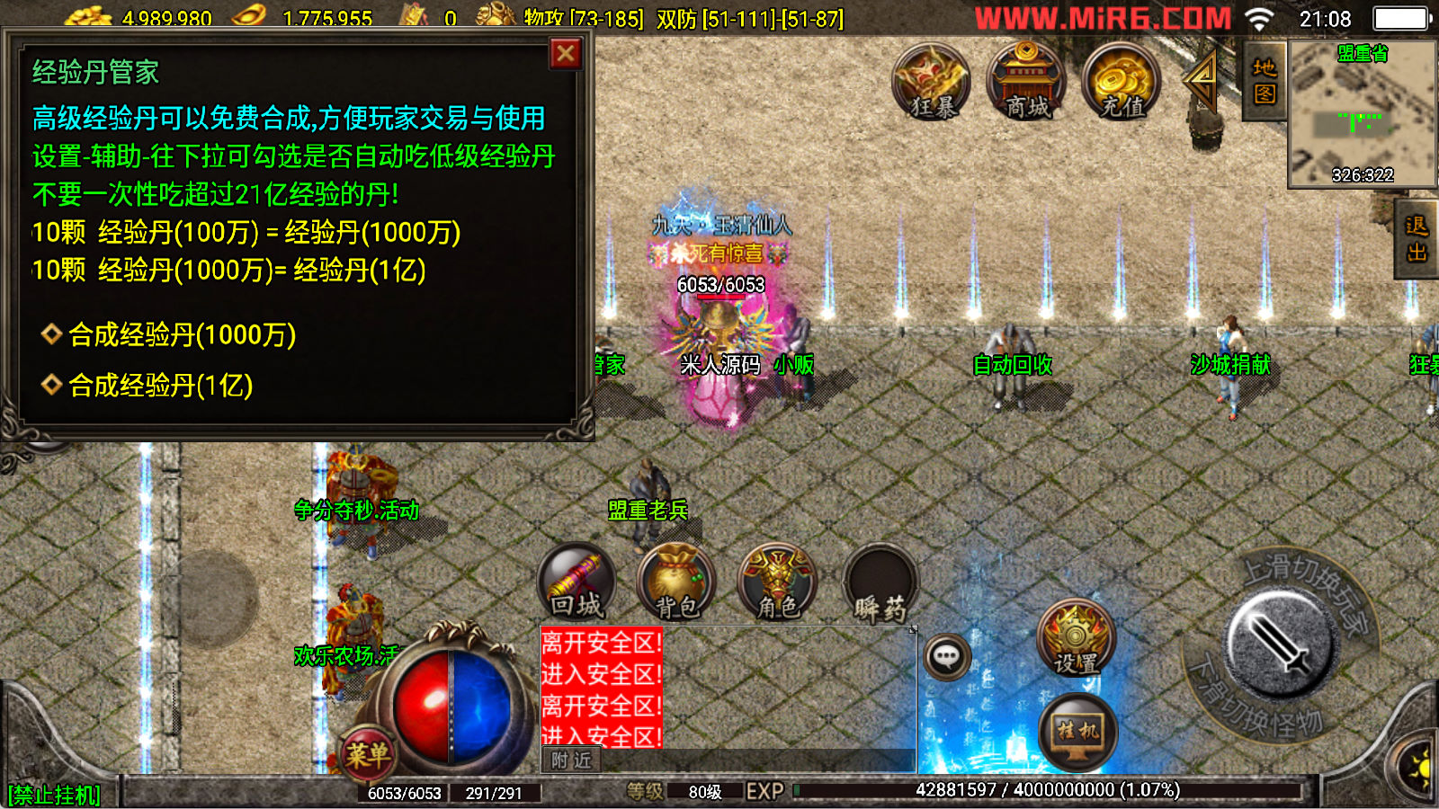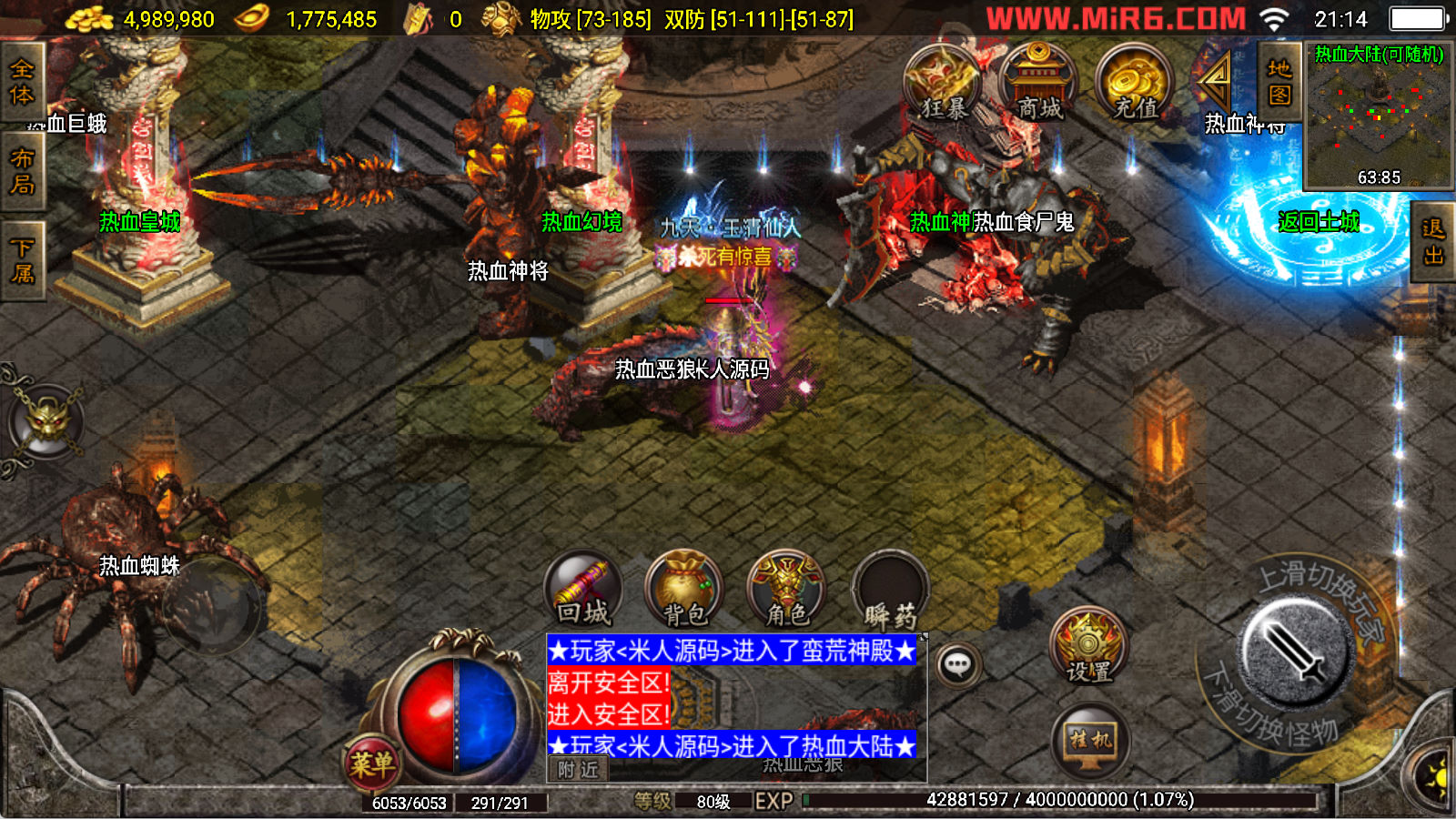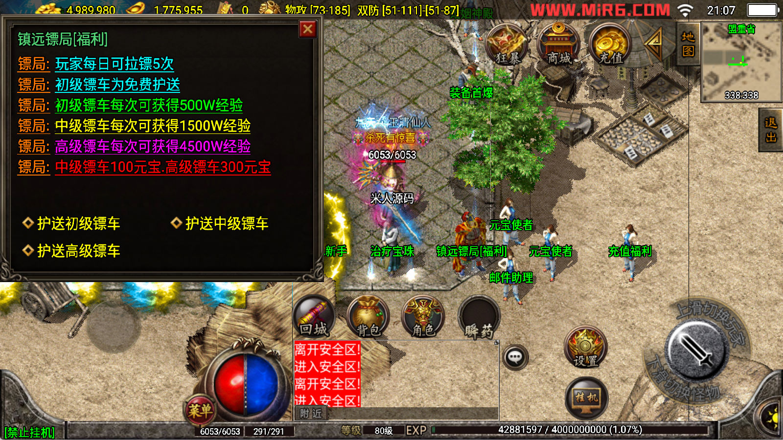 下面我们来测试下游戏里的功能看看。好了,其他功能就自行测试吧。更多的游戏资源可以访问www.MiR6.com下载,我们每款游戏资源均单独制作了独立的视频架设教程,让小白也可以快速上手游戏架设,快来体验自己做GM的乐趣吧!