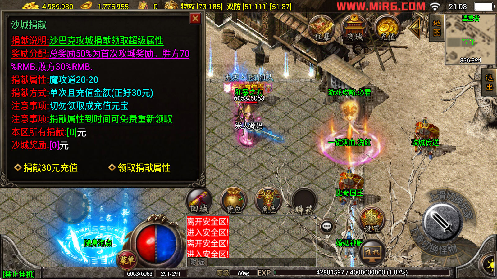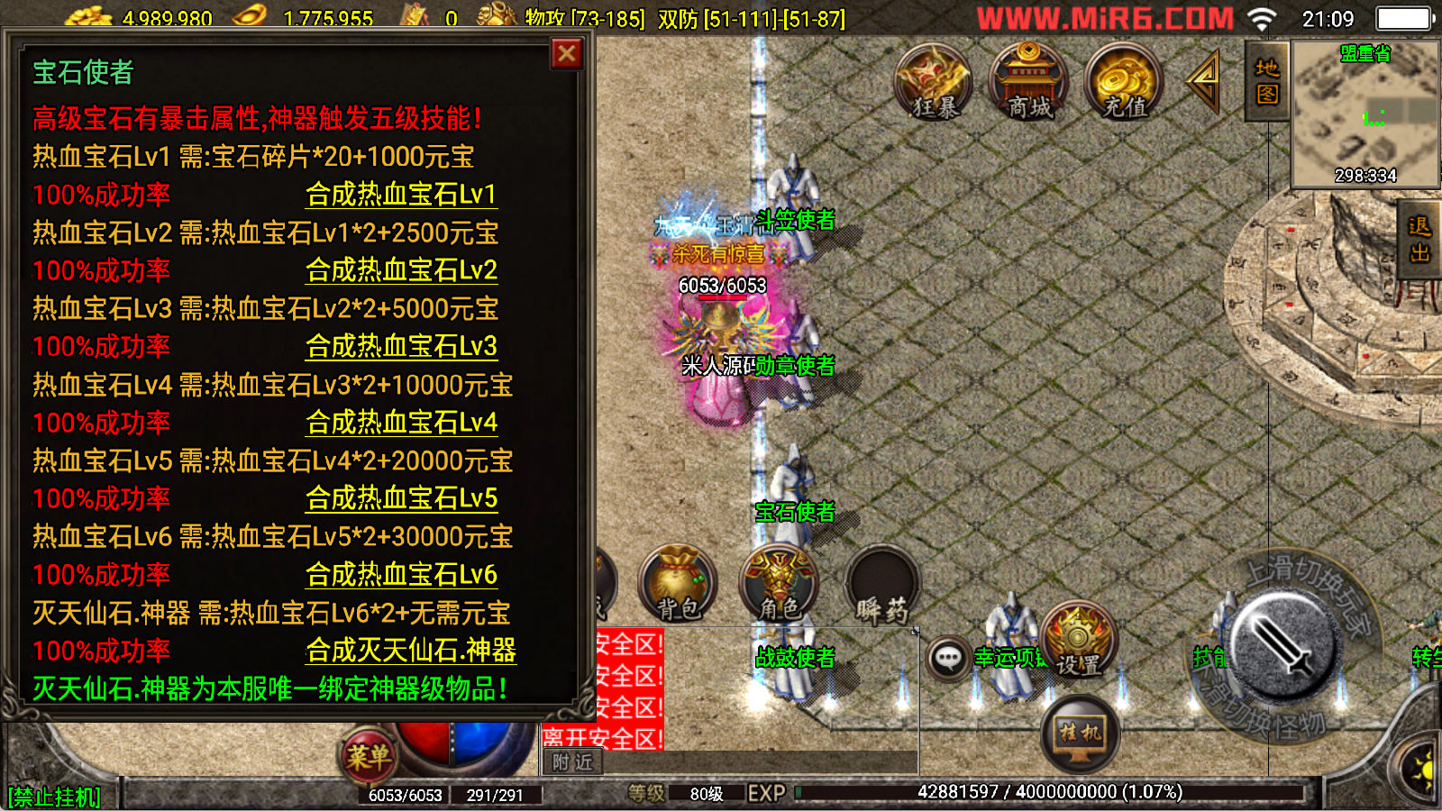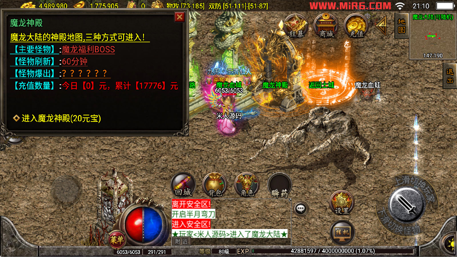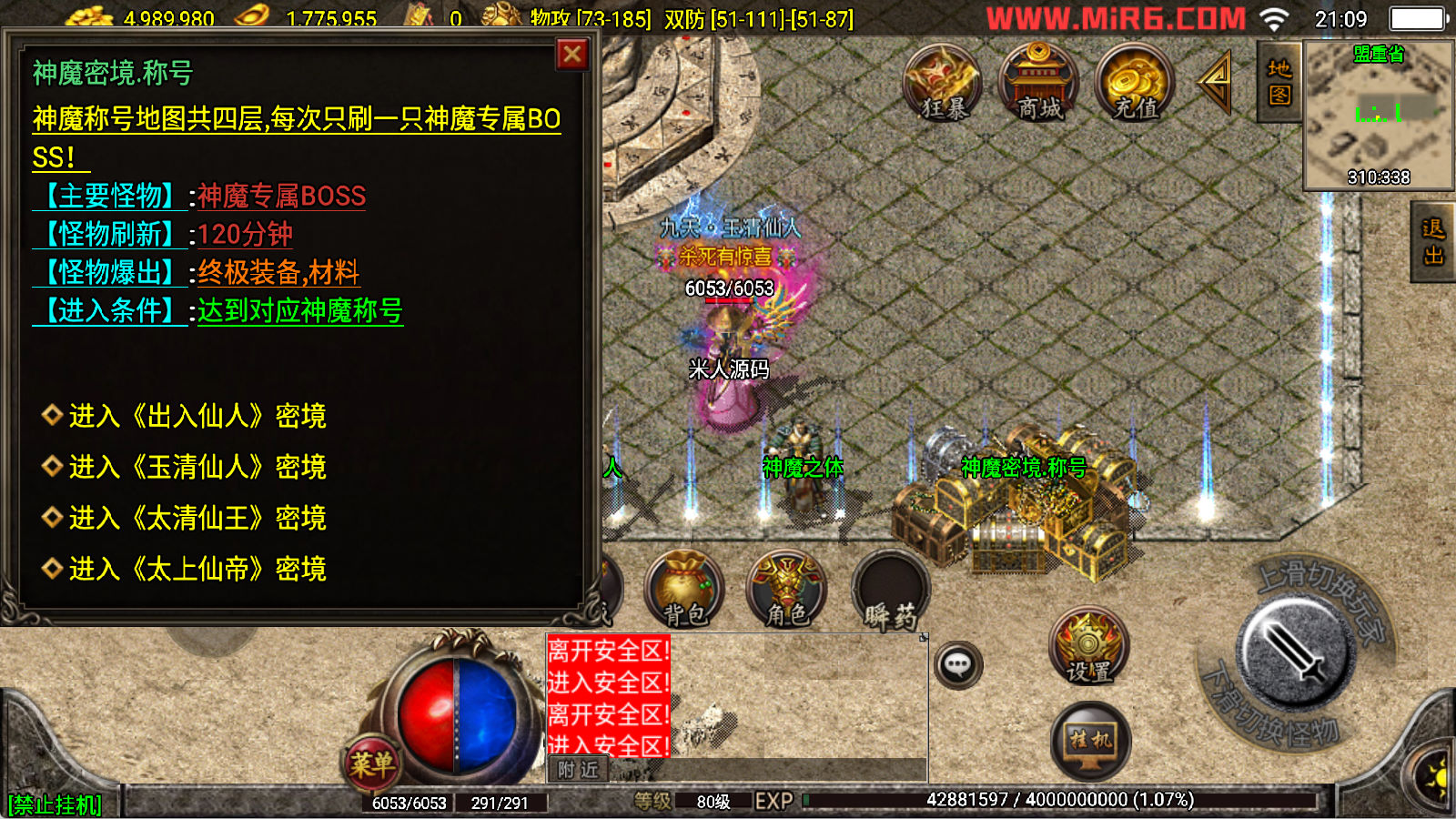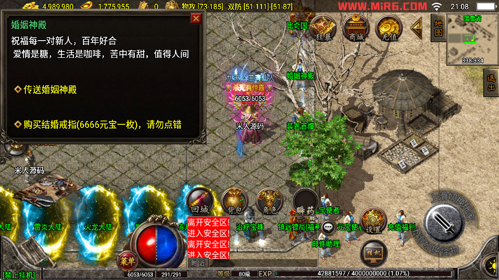 下面我们来测试下游戏里的功能看看。好了,其他功能就自行测试吧。更多的游戏资源可以访问www.MiR6.com下载,我们每款游戏资源均单独制作了独立的视频架设教程,让小白也可以快速上手游戏架设,快来体验自己做GM的乐趣吧!