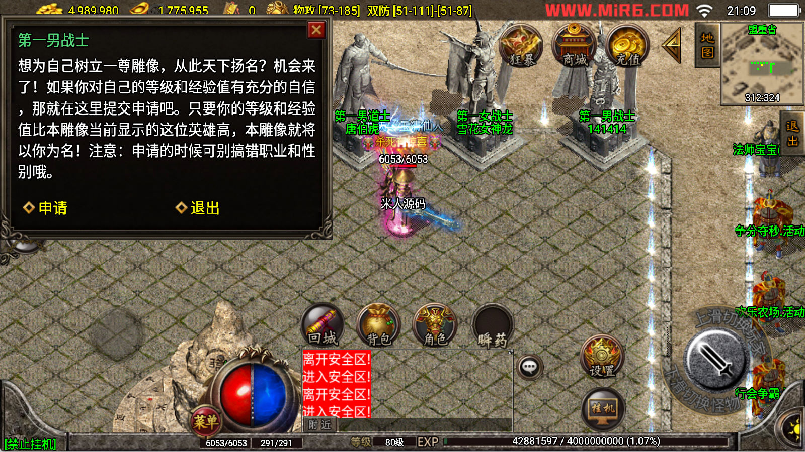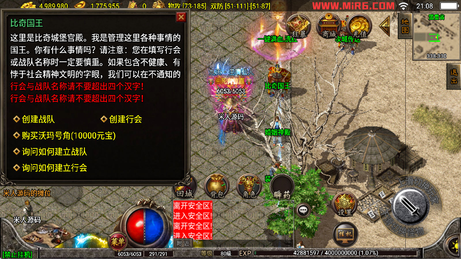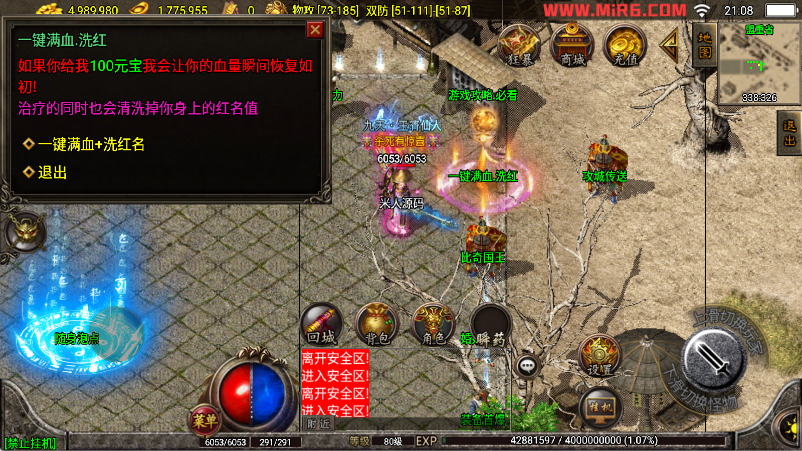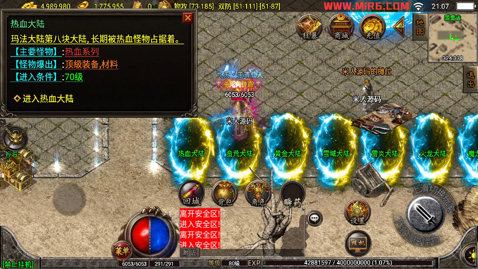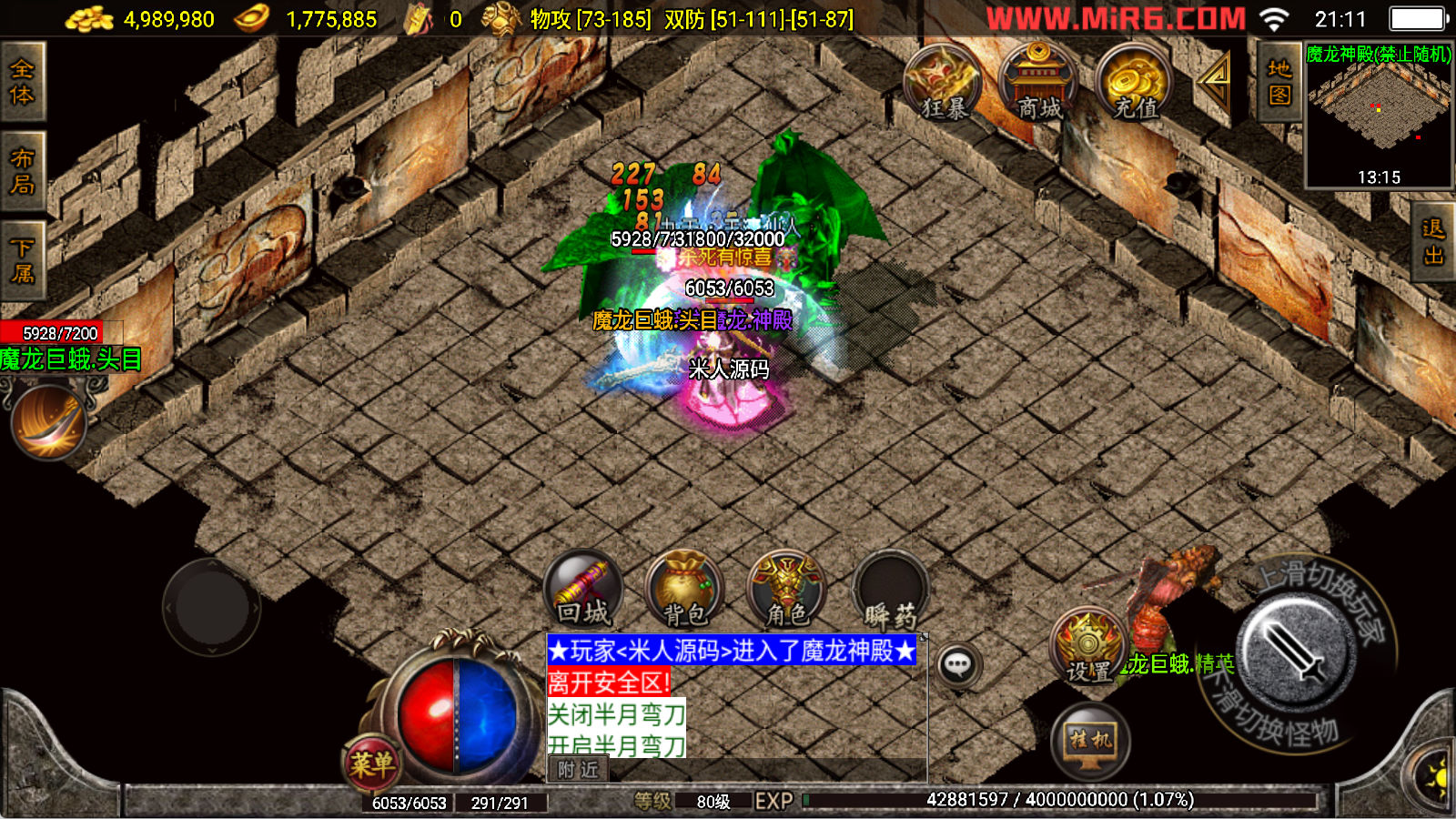 下面我们来测试下游戏里的功能看看。好了,其他功能就自行测试吧。更多的游戏资源可以访问www.MiR6.com下载,我们每款游戏资源均单独制作了独立的视频架设教程,让小白也可以快速上手游戏架设,快来体验自己做GM的乐趣吧!