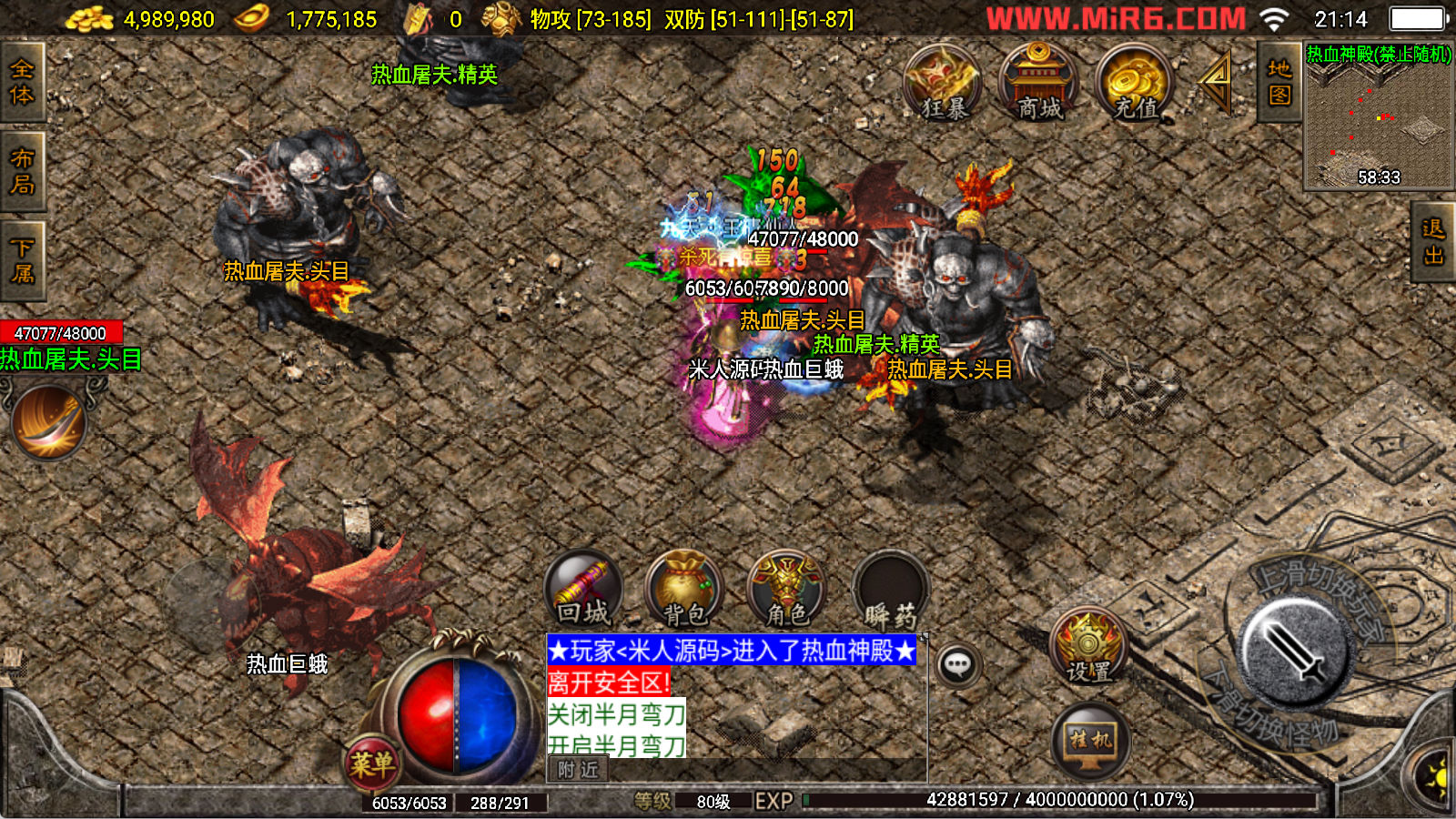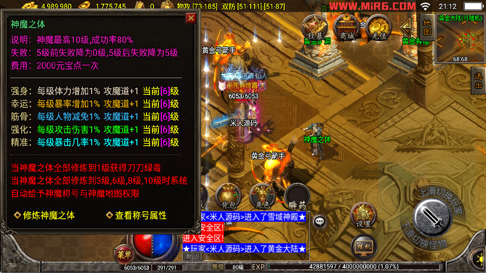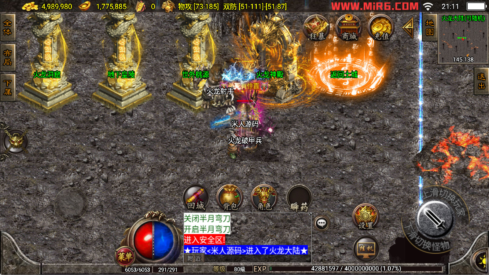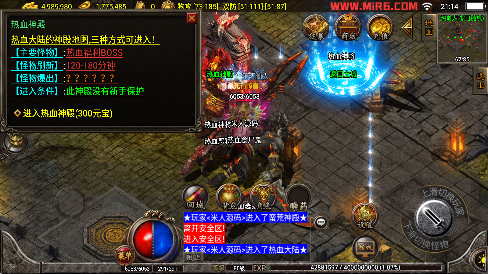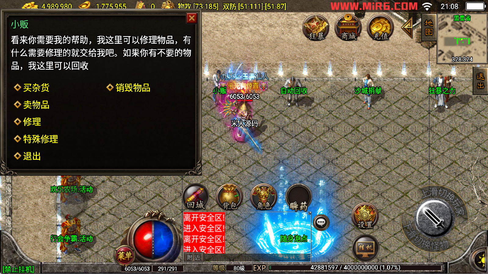 下面我们来测试下游戏里的功能看看。好了,其他功能就自行测试吧。更多的游戏资源可以访问www.MiR6.com下载,我们每款游戏资源均单独制作了独立的视频架设教程,让小白也可以快速上手游戏架设,快来体验自己做GM的乐趣吧!