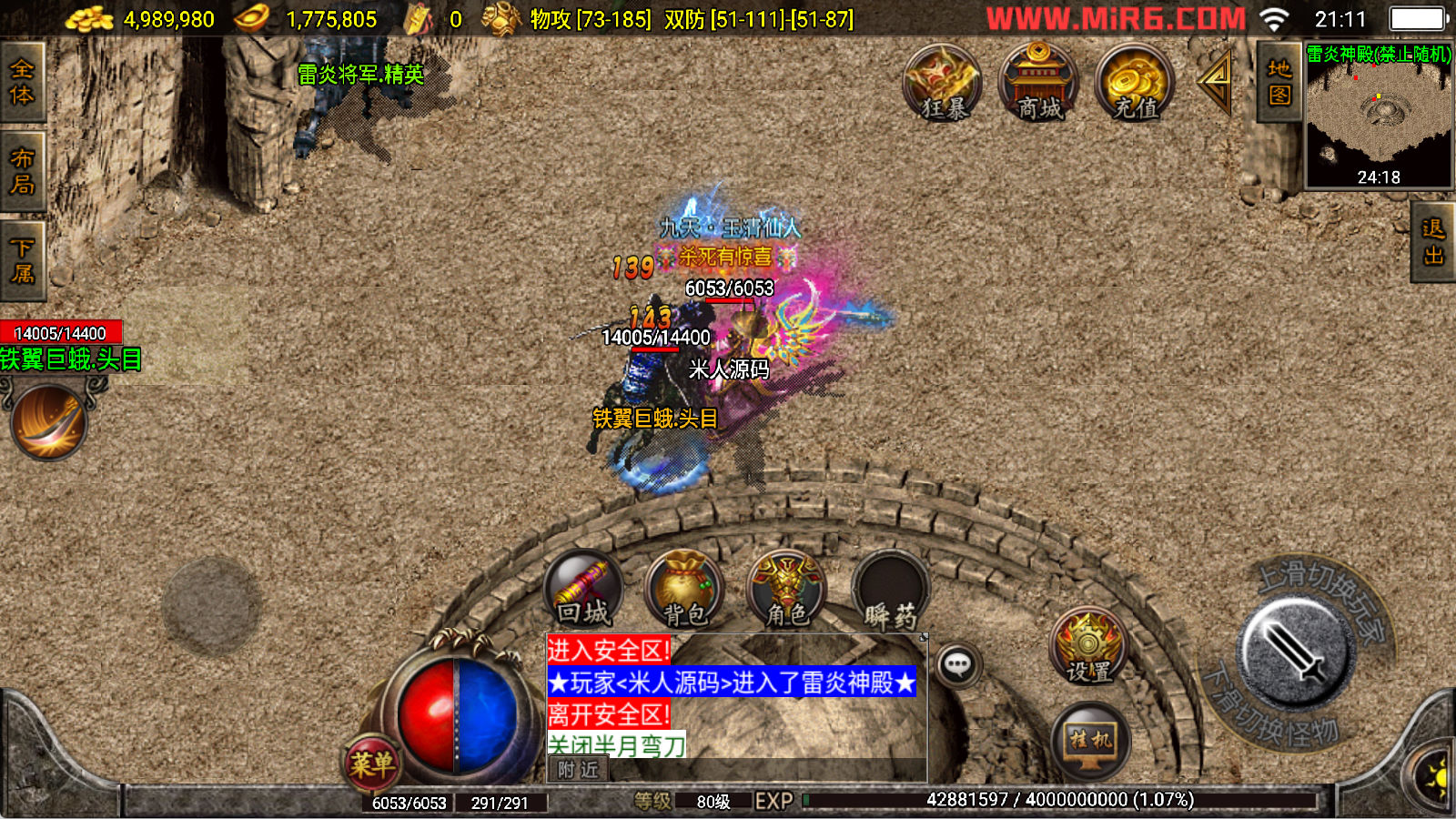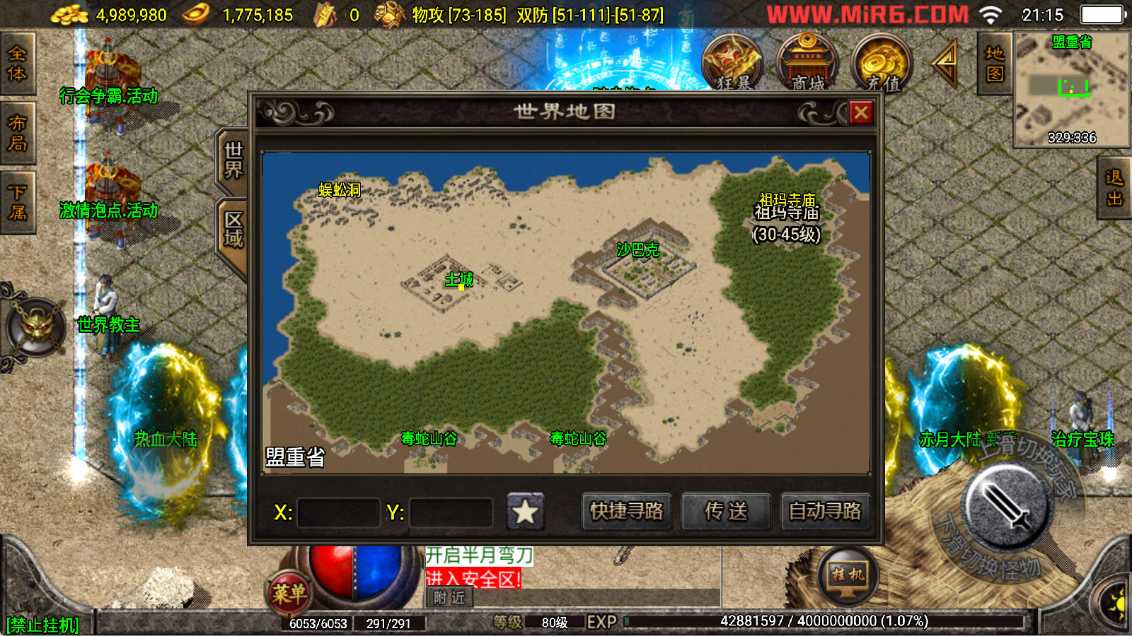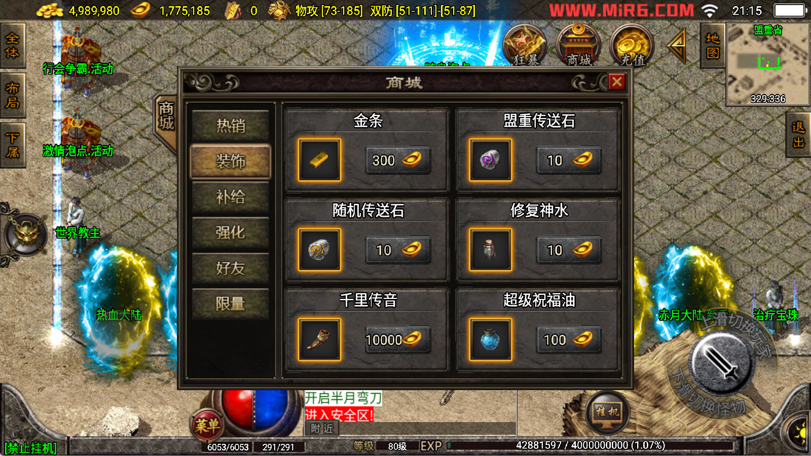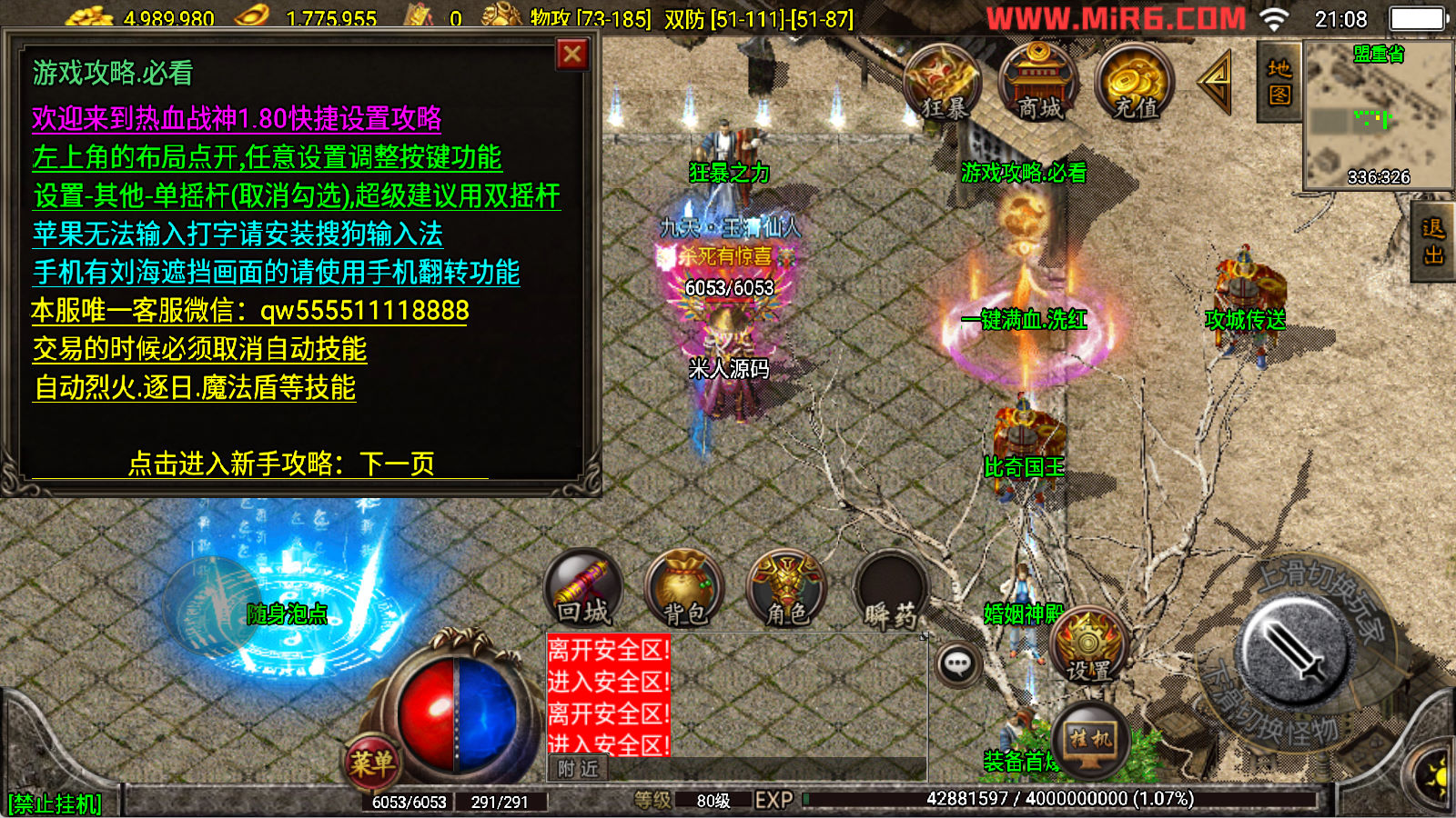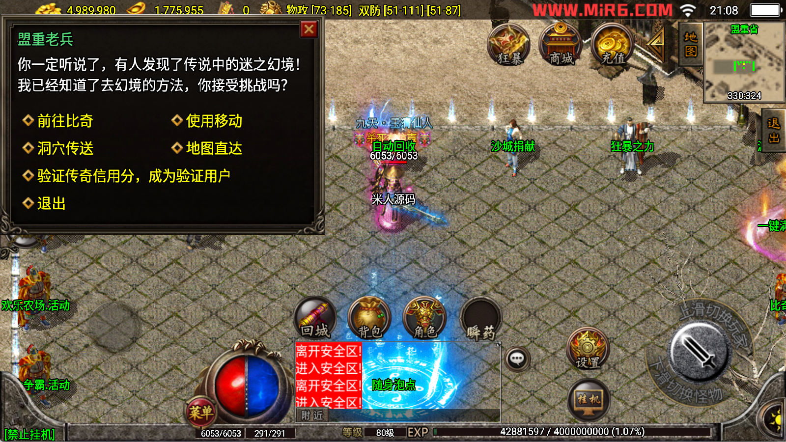 下面我们来测试下游戏里的功能看看。好了,其他功能就自行测试吧。更多的游戏资源可以访问www.MiR6.com下载,我们每款游戏资源均单独制作了独立的视频架设教程,让小白也可以快速上手游戏架设,快来体验自己做GM的乐趣吧!