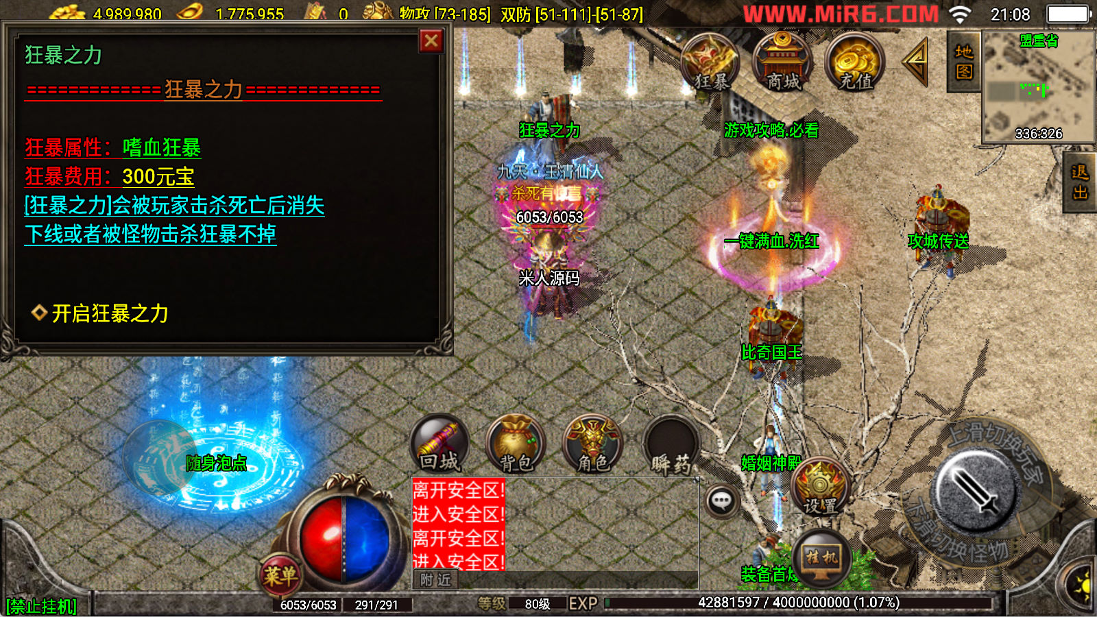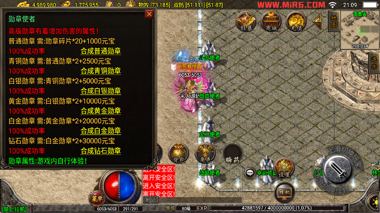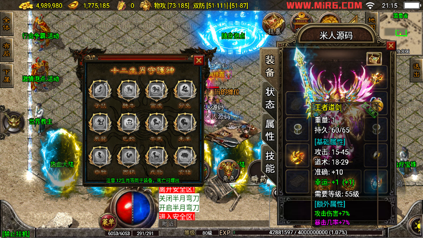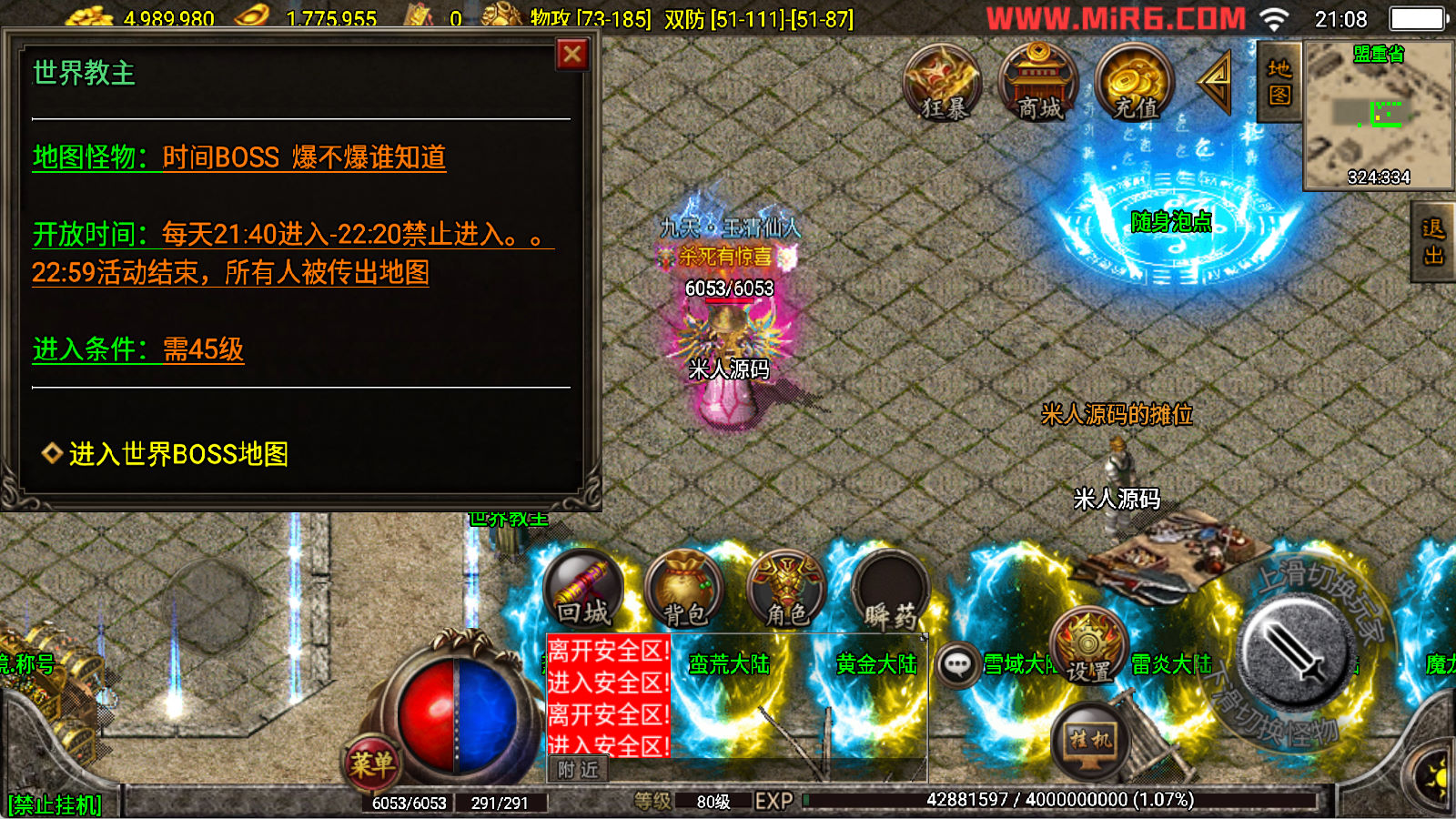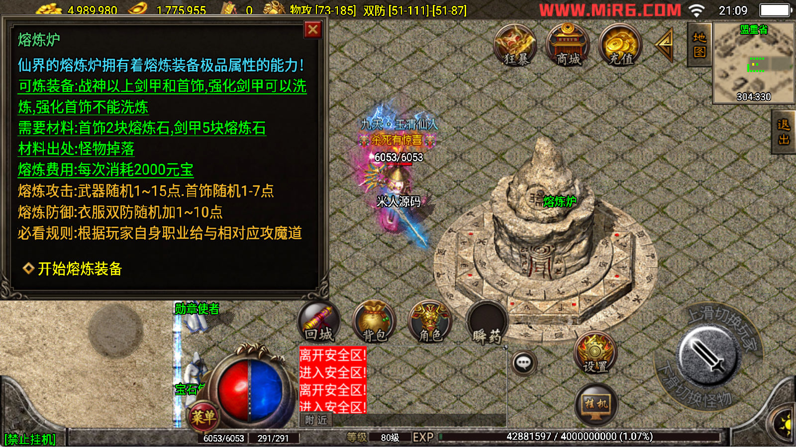 下面我们来测试下游戏里的功能看看。好了,其他功能就自行测试吧。更多的游戏资源可以访问www.MiR6.com下载,我们每款游戏资源均单独制作了独立的视频架设教程,让小白也可以快速上手游戏架设,快来体验自己做GM的乐趣吧!