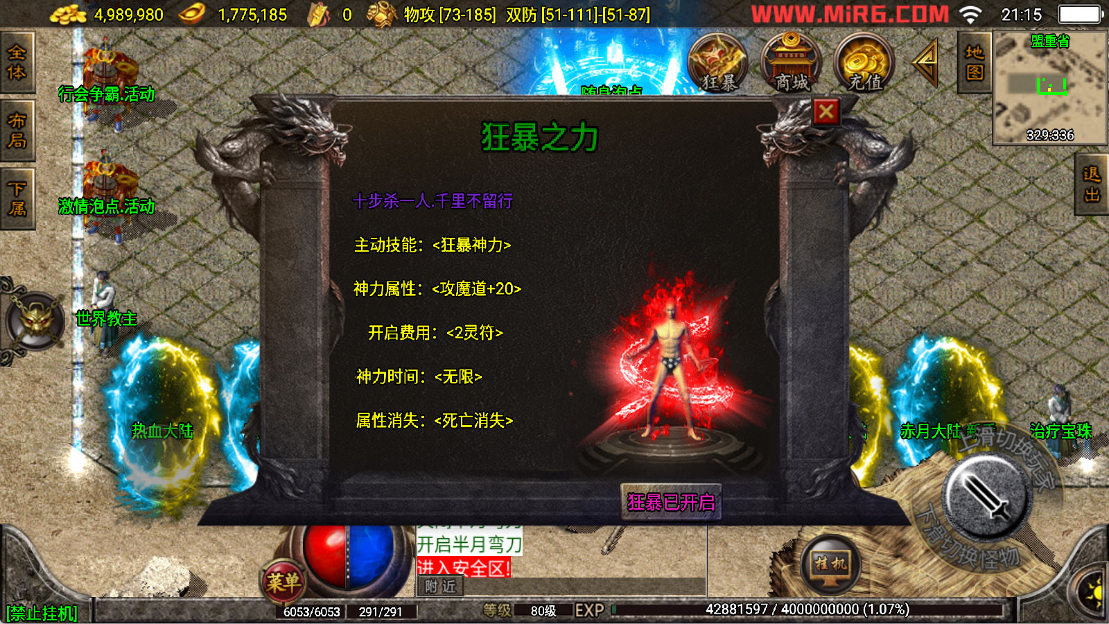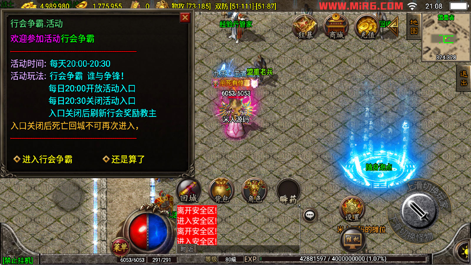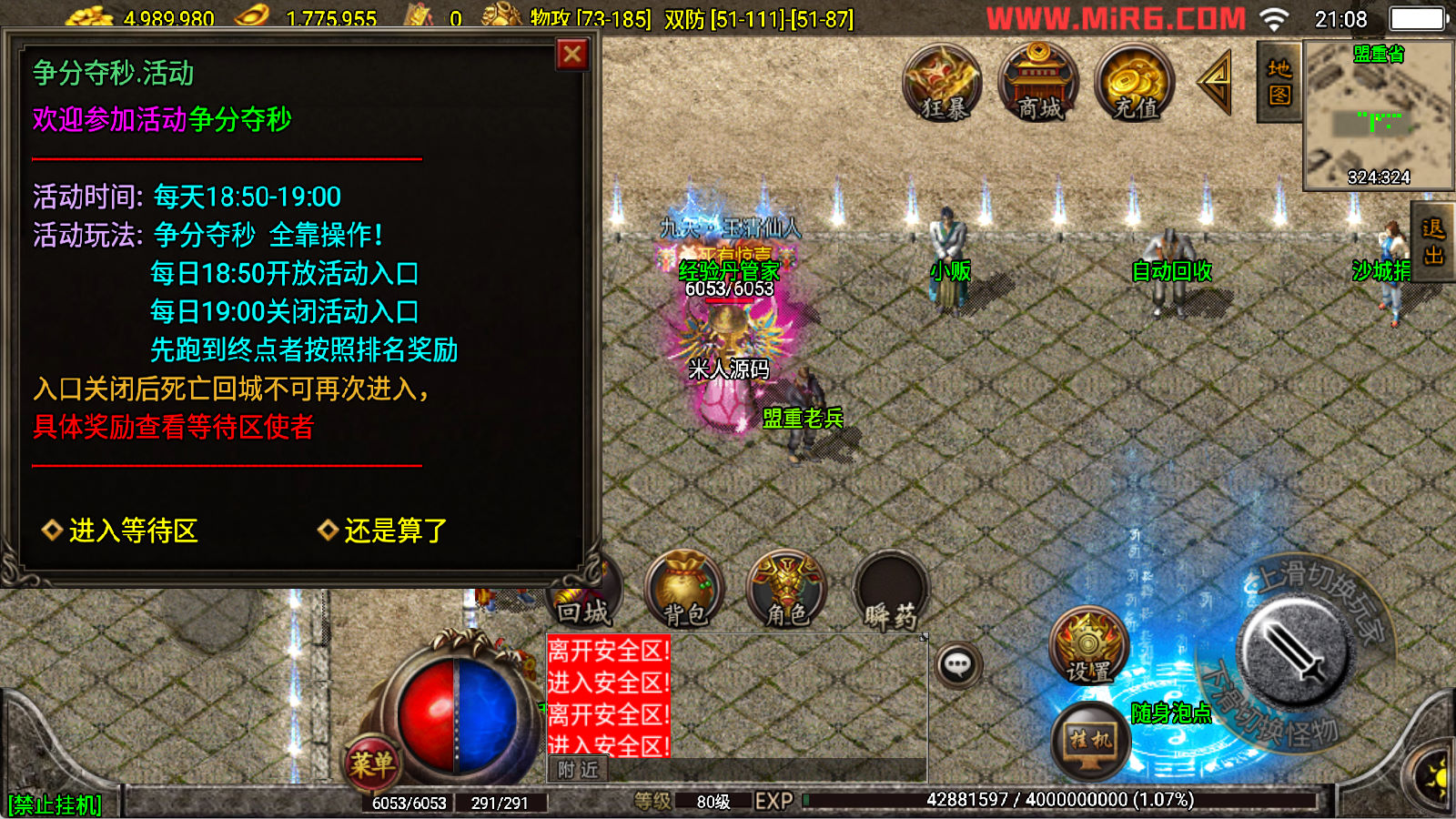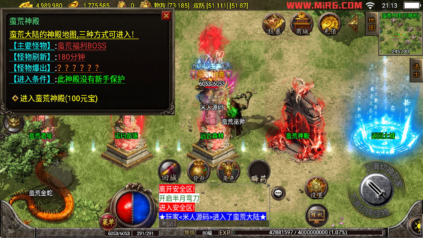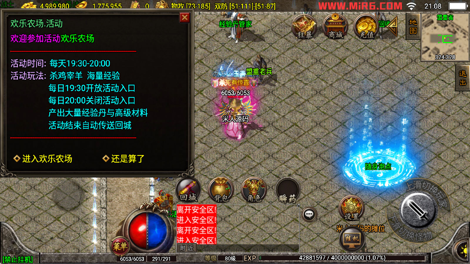 下面我们来测试下游戏里的功能看看。好了,其他功能就自行测试吧。更多的游戏资源可以访问www.MiR6.com下载,我们每款游戏资源均单独制作了独立的视频架设教程,让小白也可以快速上手游戏架设,快来体验自己做GM的乐趣吧!