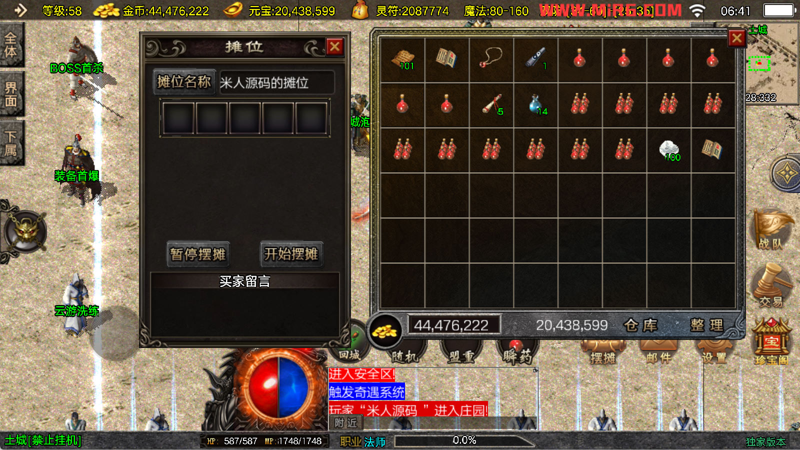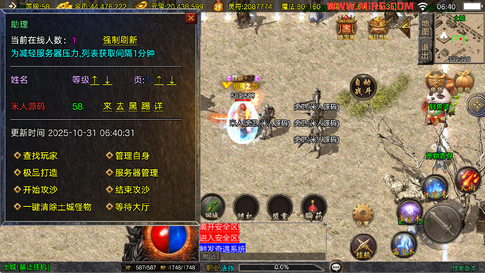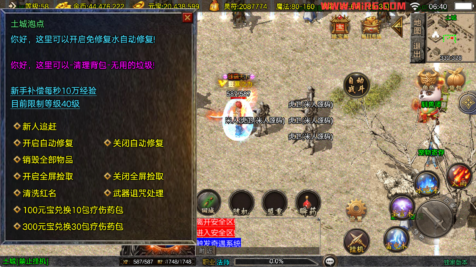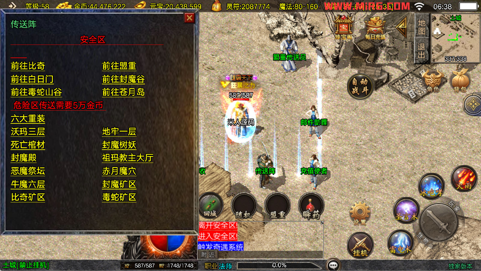 下面我们开始测试下游戏里的功能看看。好了,其他功能就自行测试吧。更多的游戏资源可以访问www.MiR6.com下载,我们每款游戏资源均单独制作了独立的视频架设教程,让小白也可以快速上手游戏架设,快来体验自己做GM的乐趣吧!