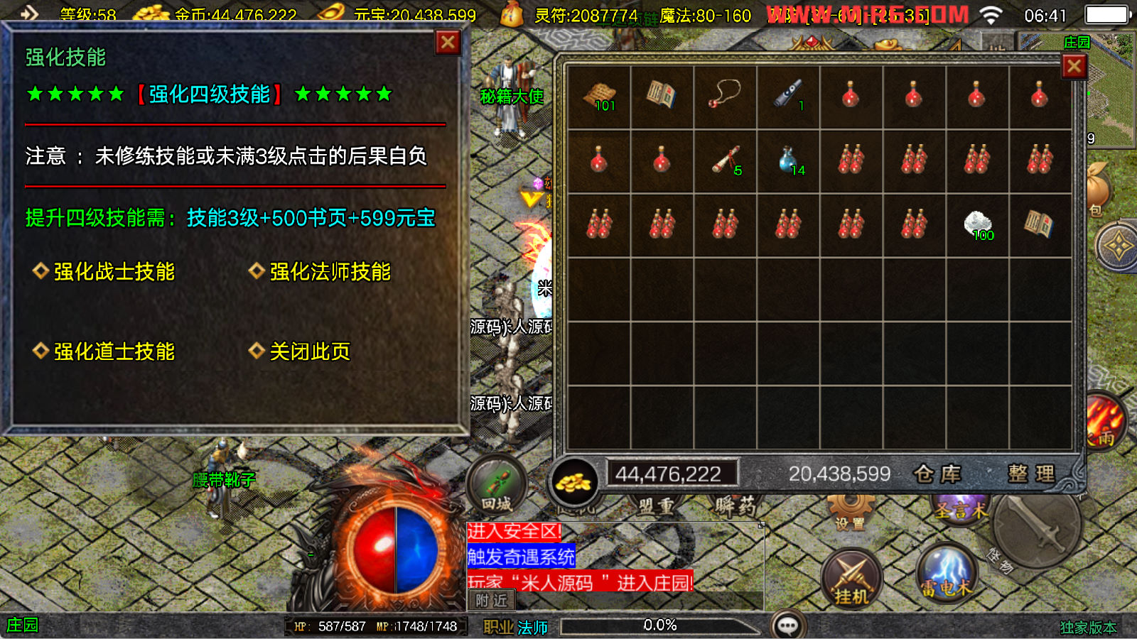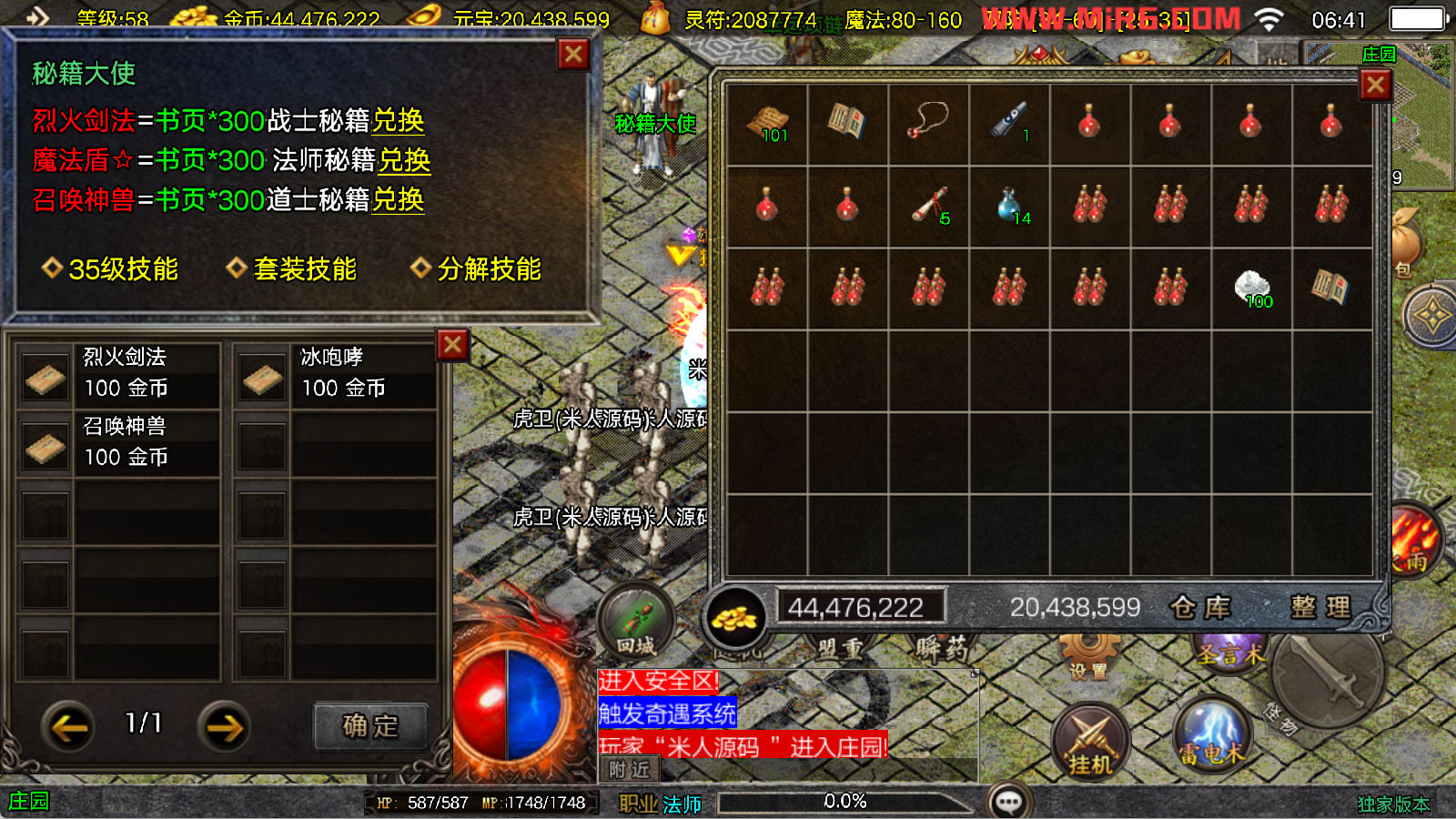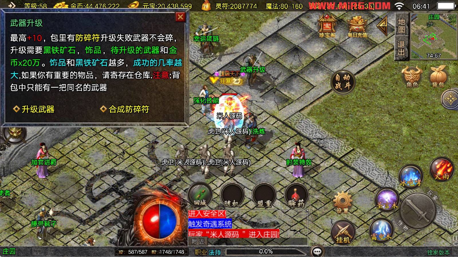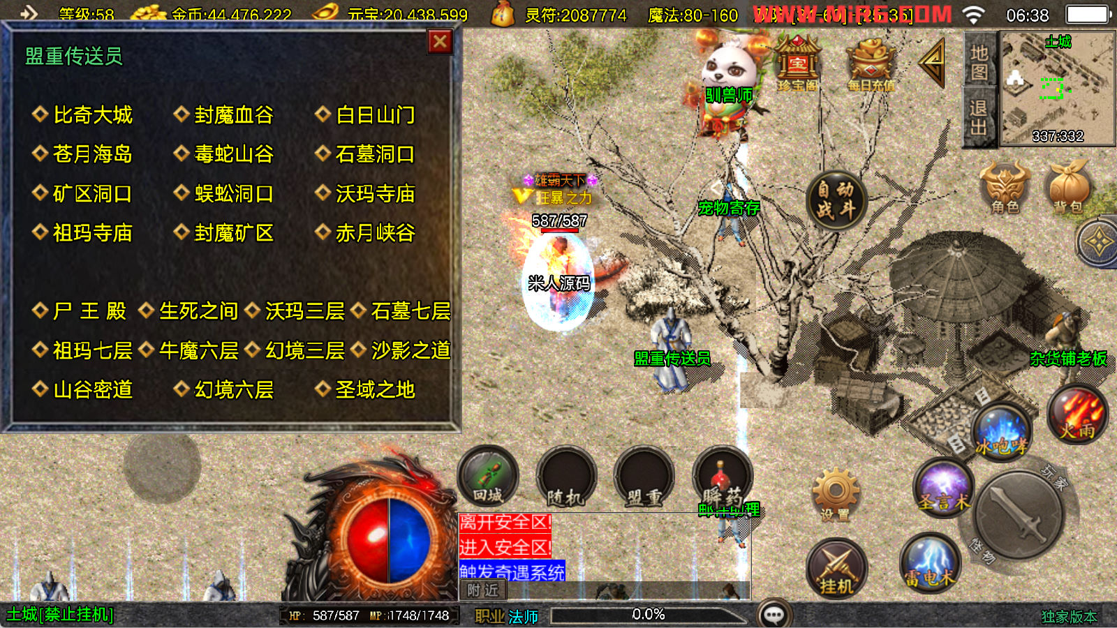 下面我们开始测试下游戏里的功能看看。好了,其他功能就自行测试吧。更多的游戏资源可以访问www.MiR6.com下载,我们每款游戏资源均单独制作了独立的视频架设教程,让小白也可以快速上手游戏架设,快来体验自己做GM的乐趣吧!