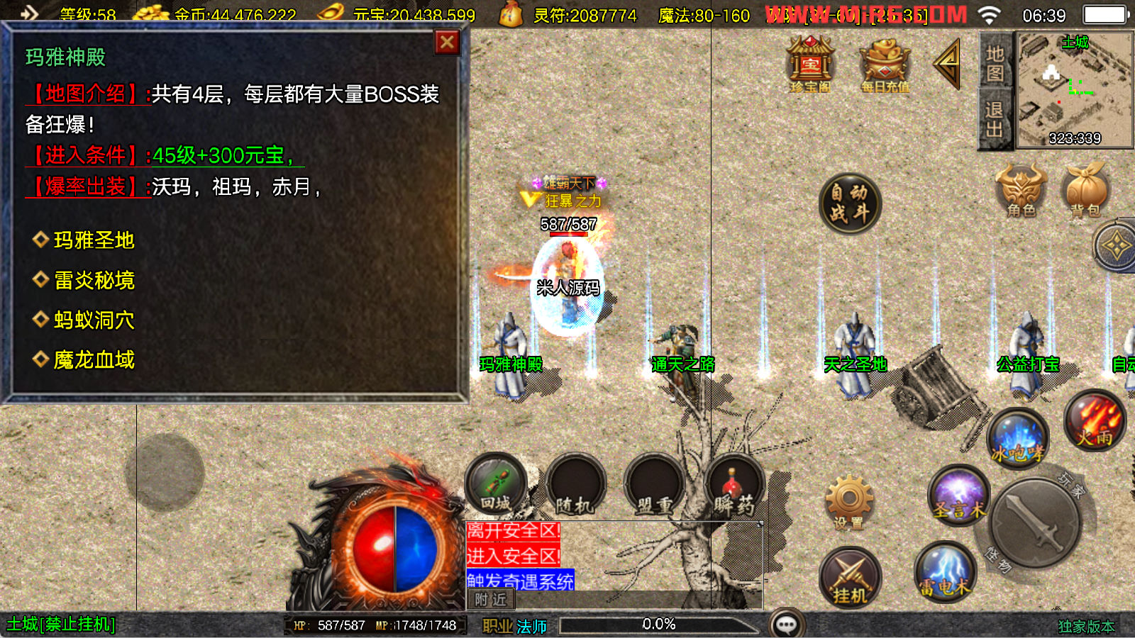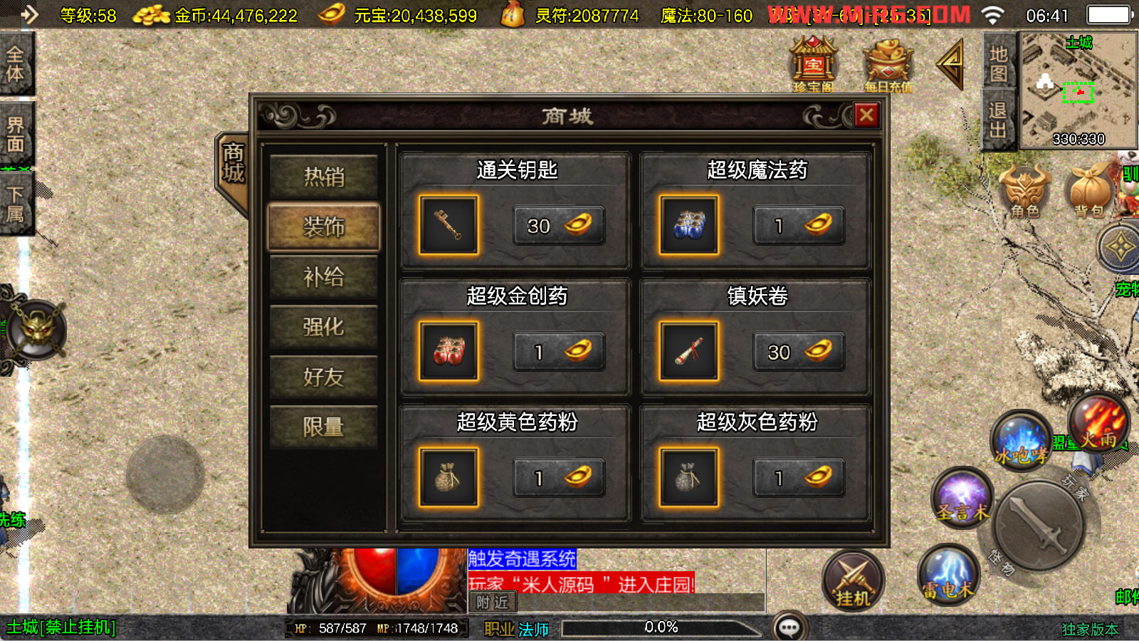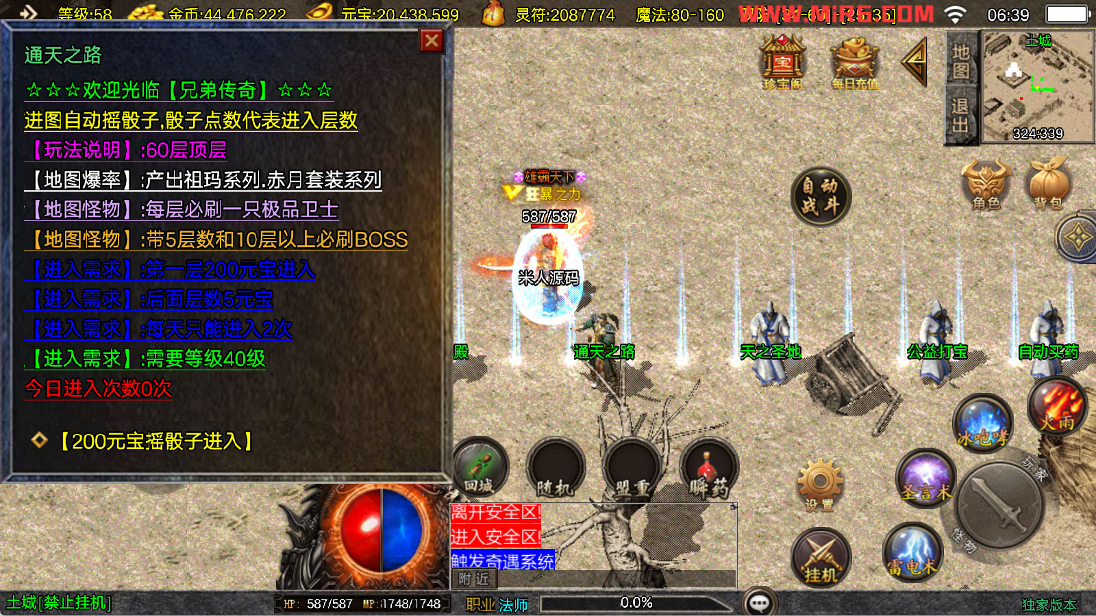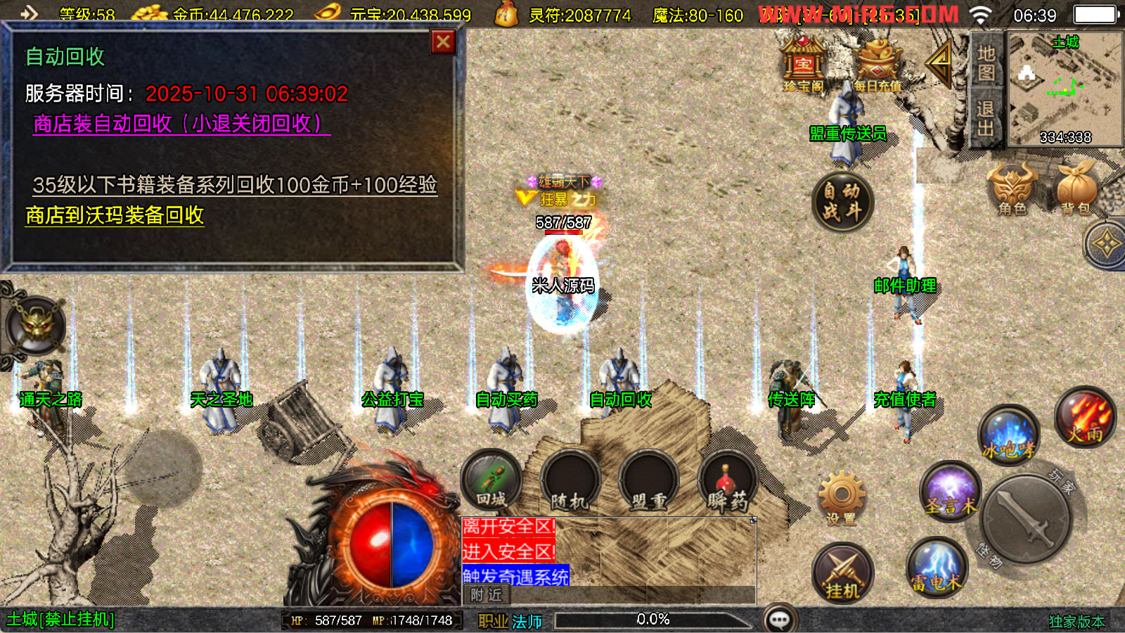 下面我们开始测试下游戏里的功能看看。好了,其他功能就自行测试吧。更多的游戏资源可以访问www.MiR6.com下载,我们每款游戏资源均单独制作了独立的视频架设教程,让小白也可以快速上手游戏架设,快来体验自己做GM的乐趣吧!