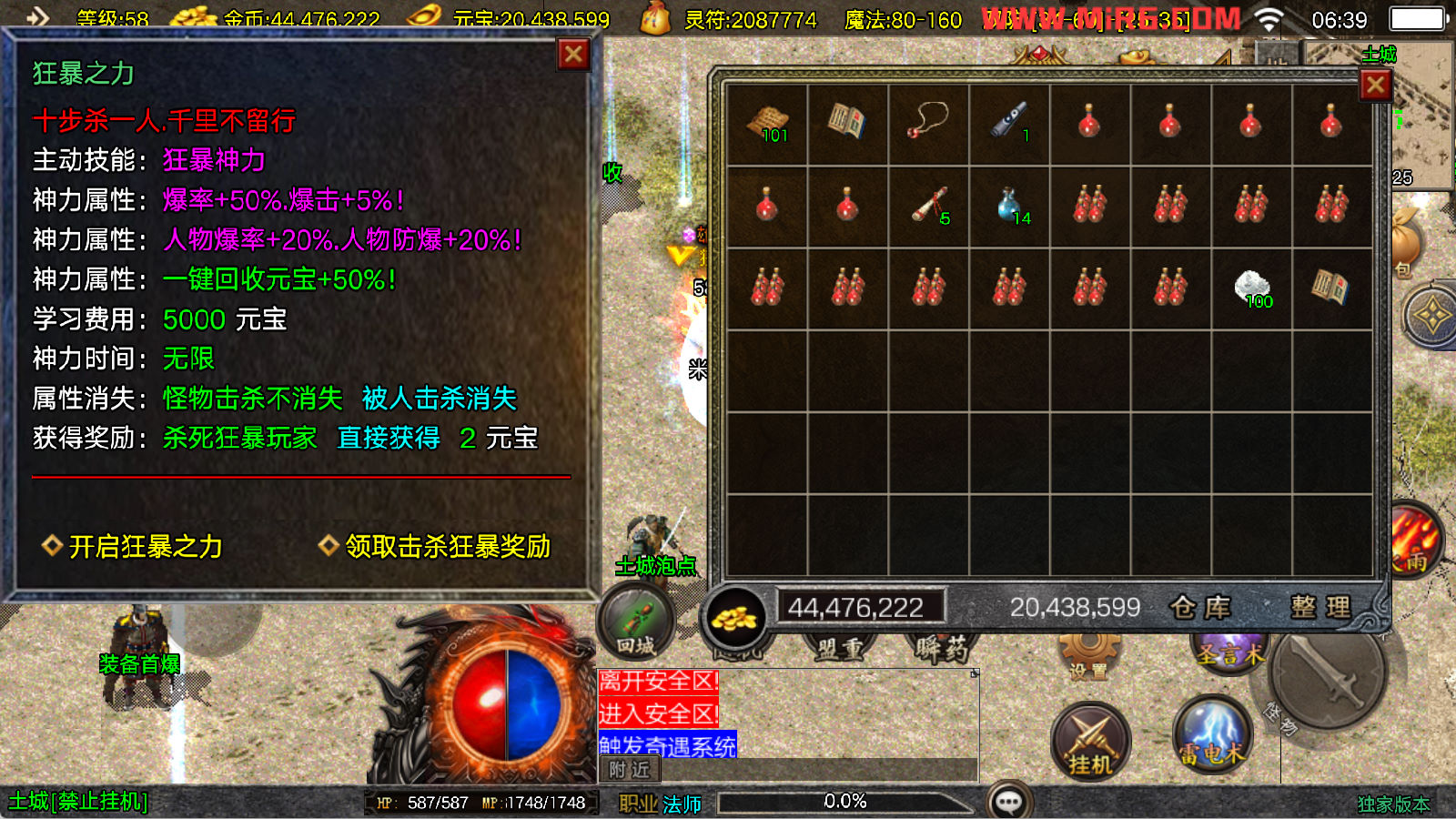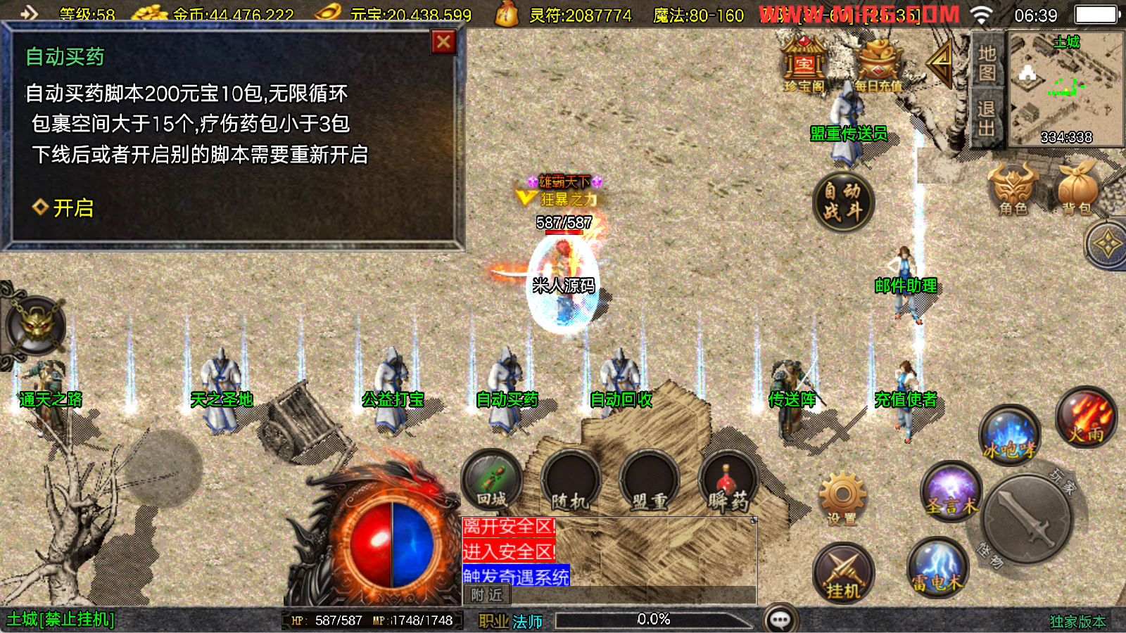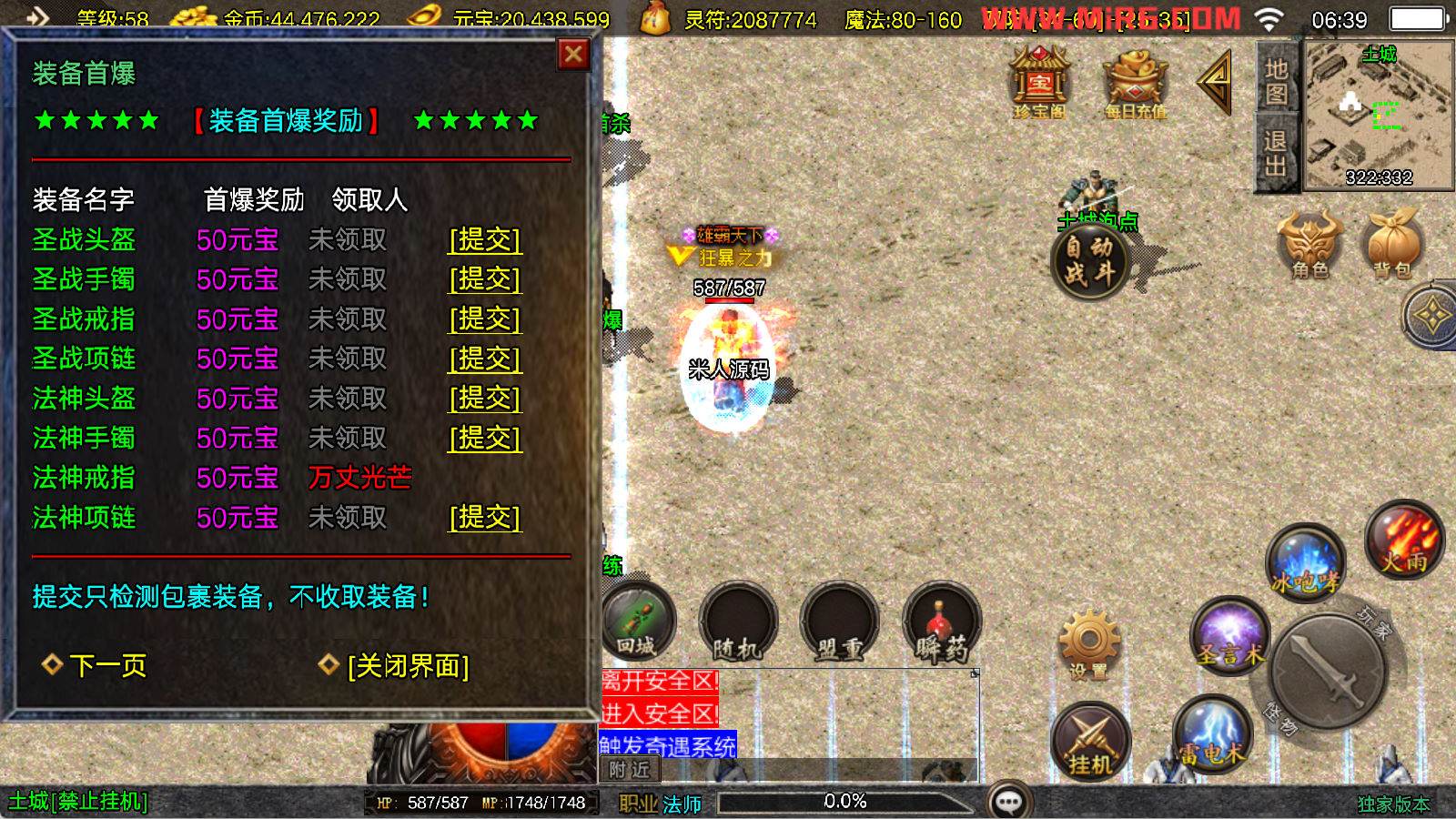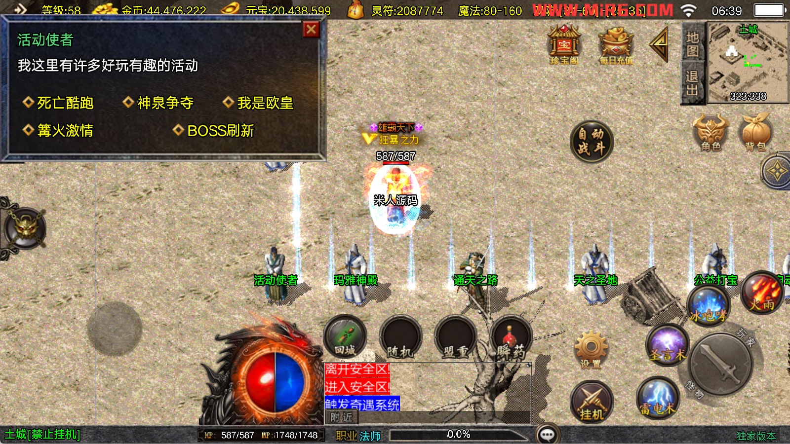 下面我们开始测试下游戏里的功能看看。好了,其他功能就自行测试吧。更多的游戏资源可以访问www.MiR6.com下载,我们每款游戏资源均单独制作了独立的视频架设教程,让小白也可以快速上手游戏架设,快来体验自己做GM的乐趣吧!