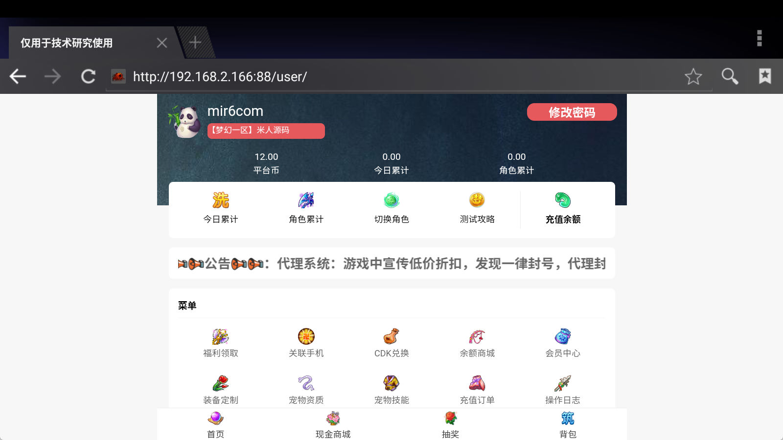 下面我们来测试下GM后台功能。功能都没有问题。