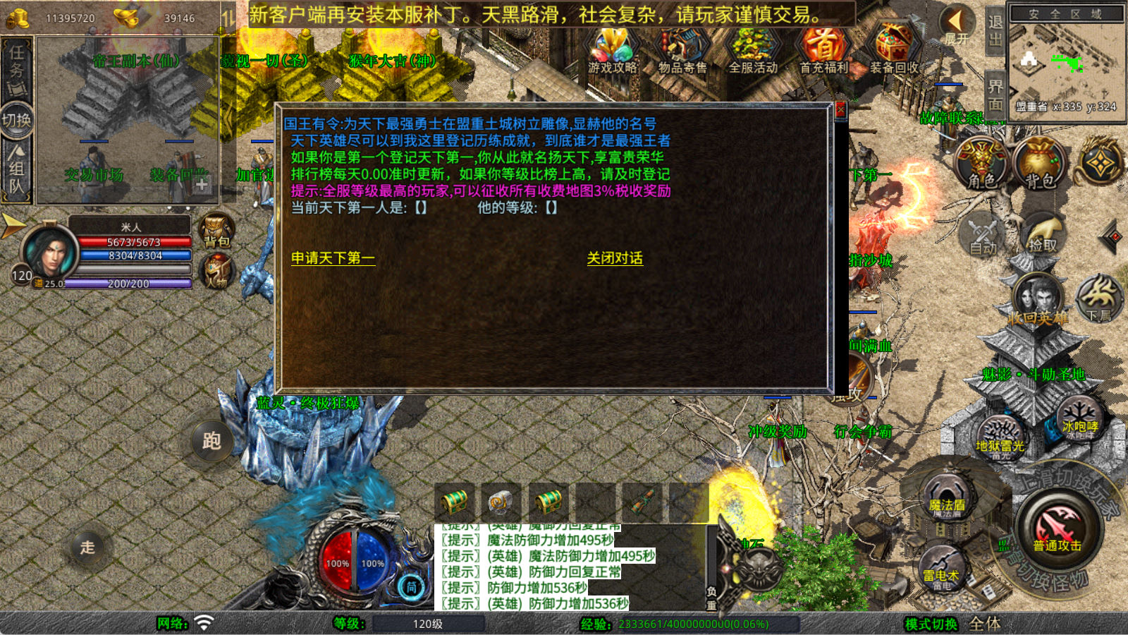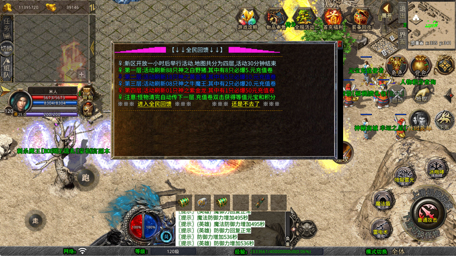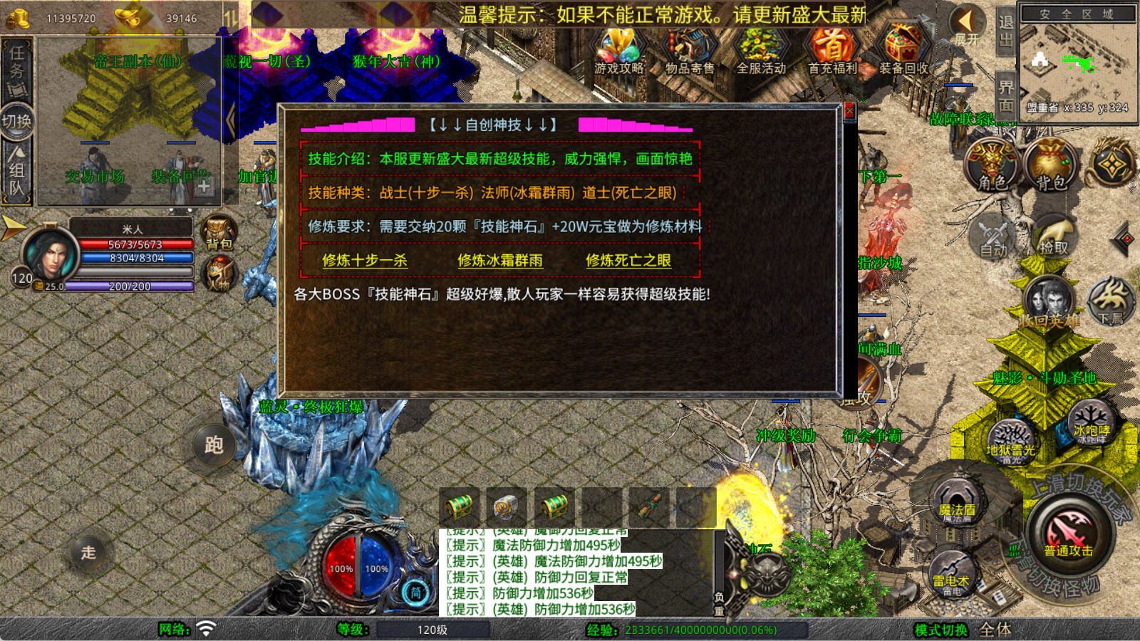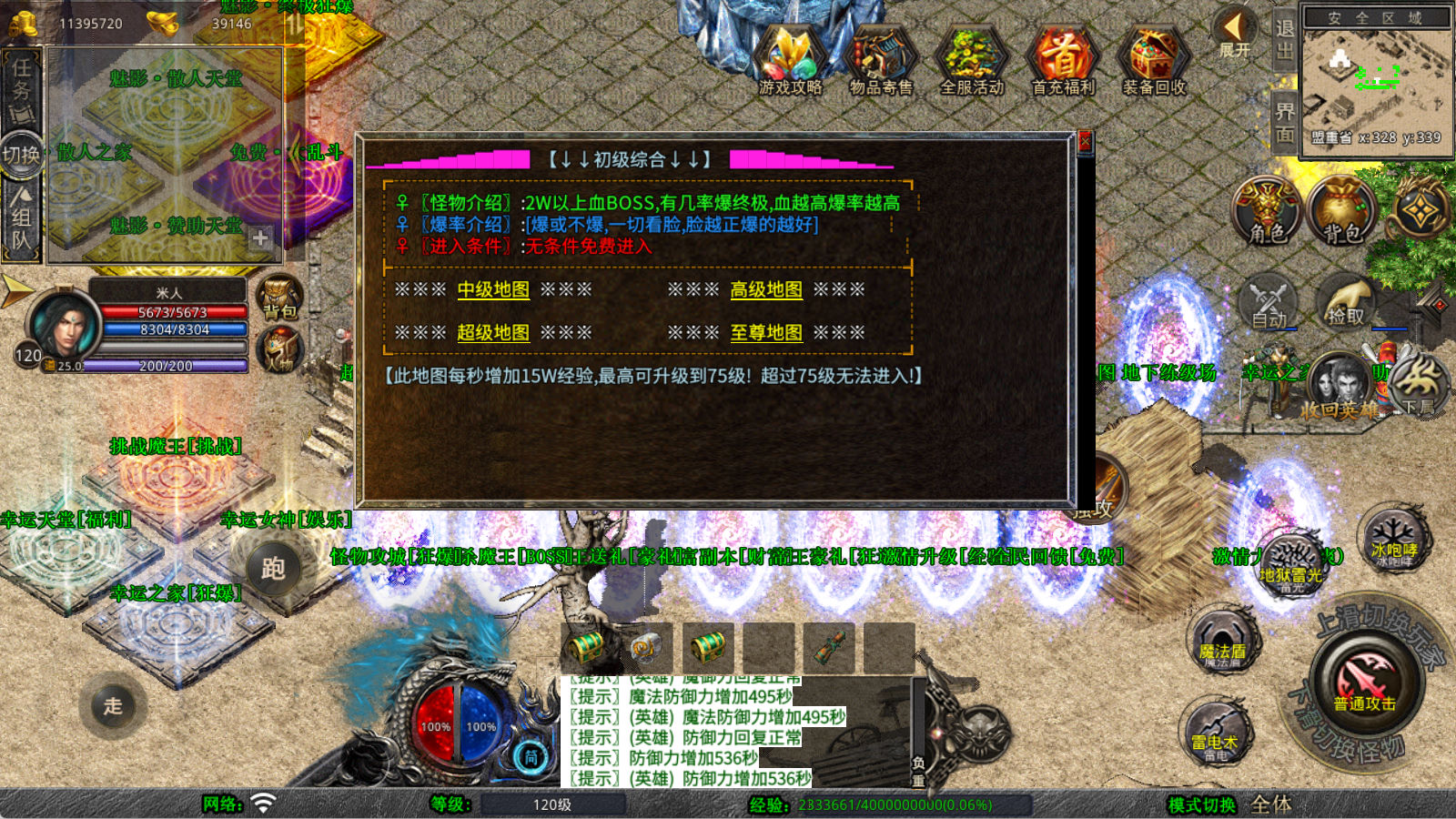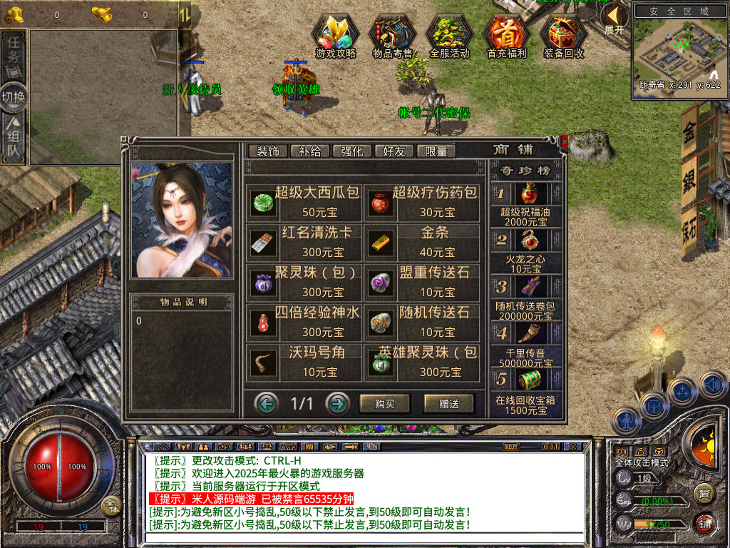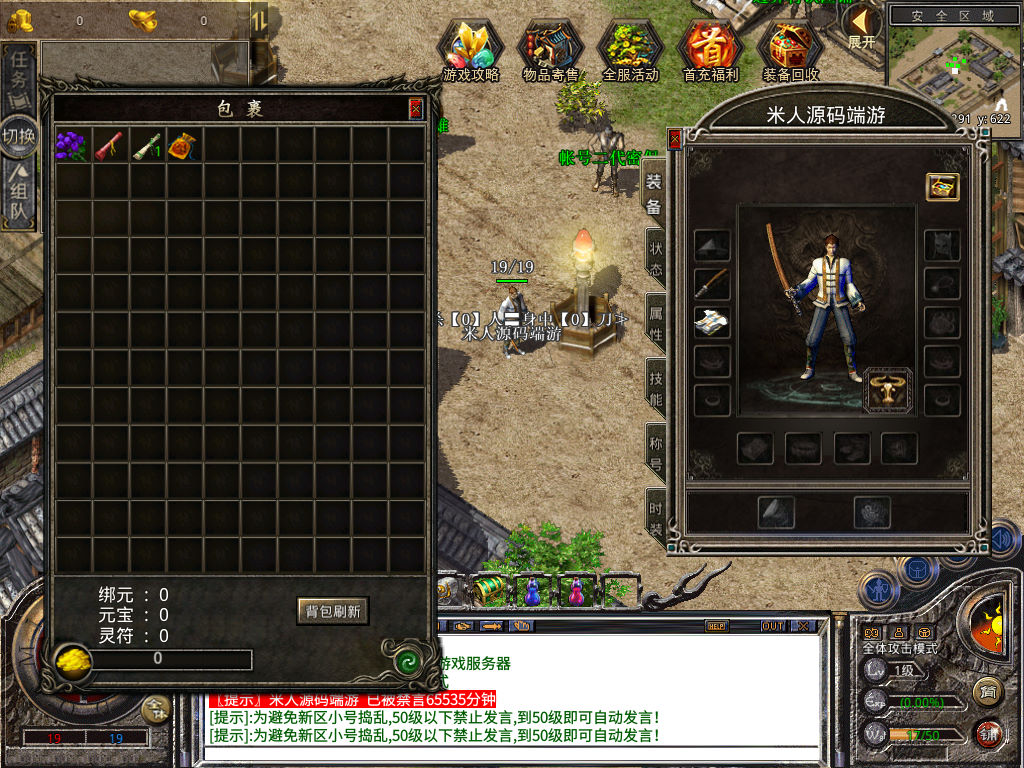 下面我们来测试下游戏里的功能看看。好了,其他功能就自行测试吧。更多的游戏资源可以访问www.MiR6.com下载,我们每款游戏资源均单独制作了独立的视频架设教程,让小白也可以快速上手游戏架设,快来体验自己做GM的乐趣吧!