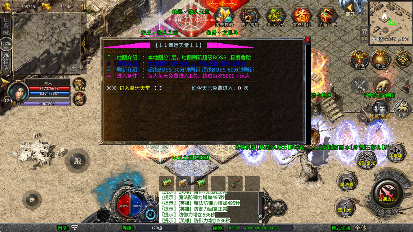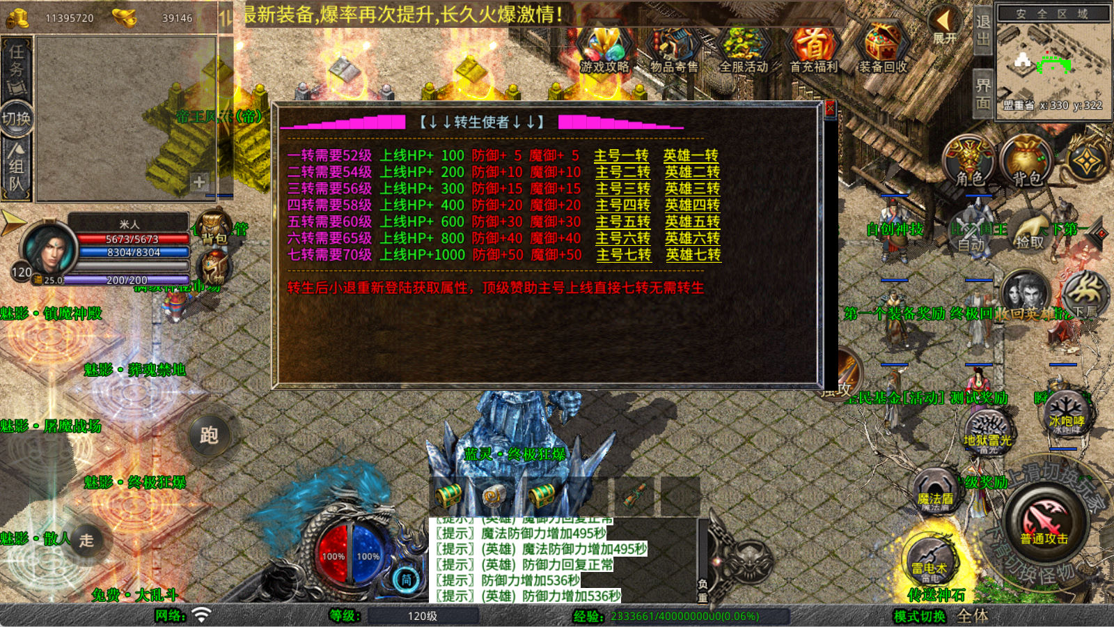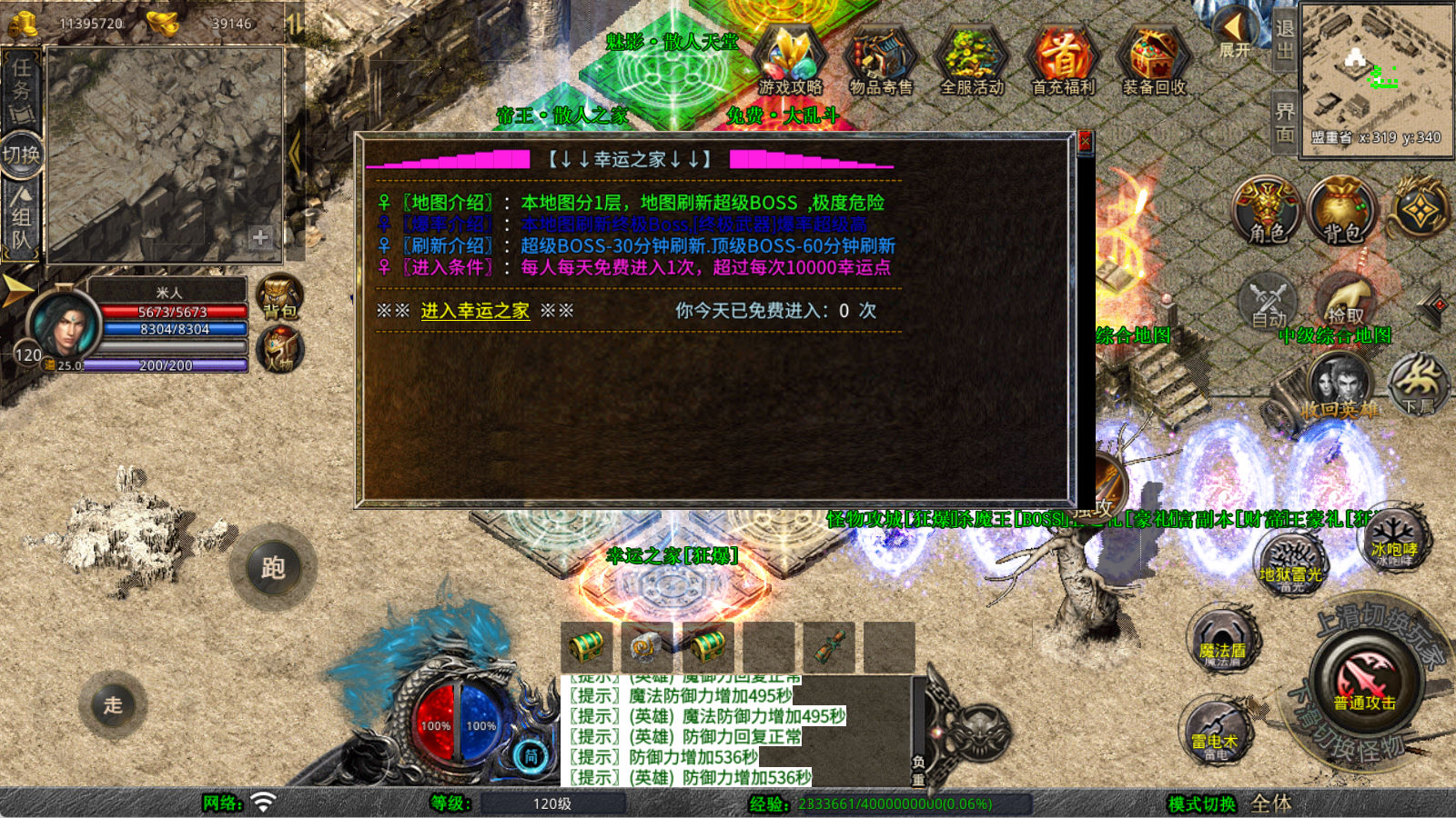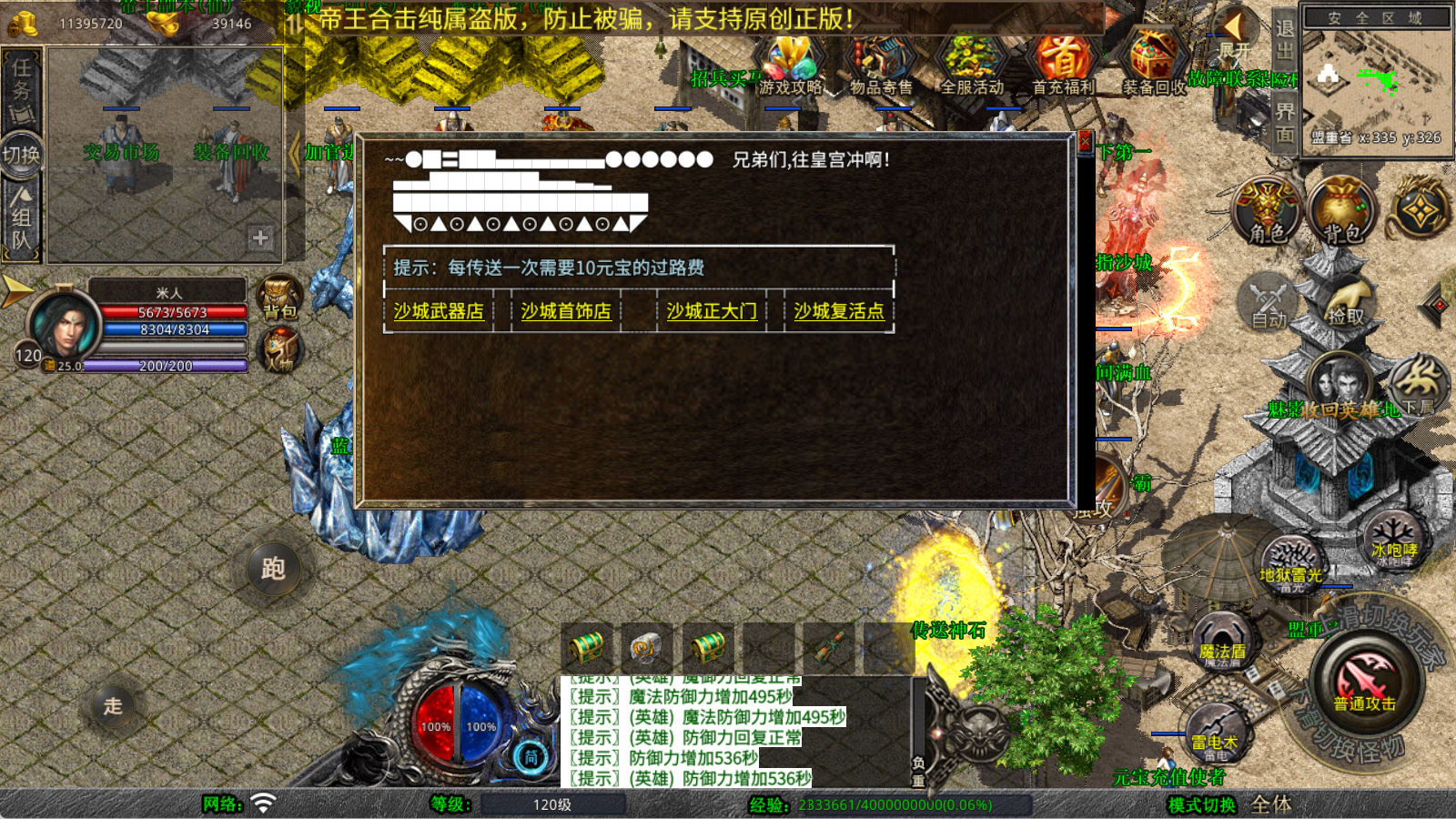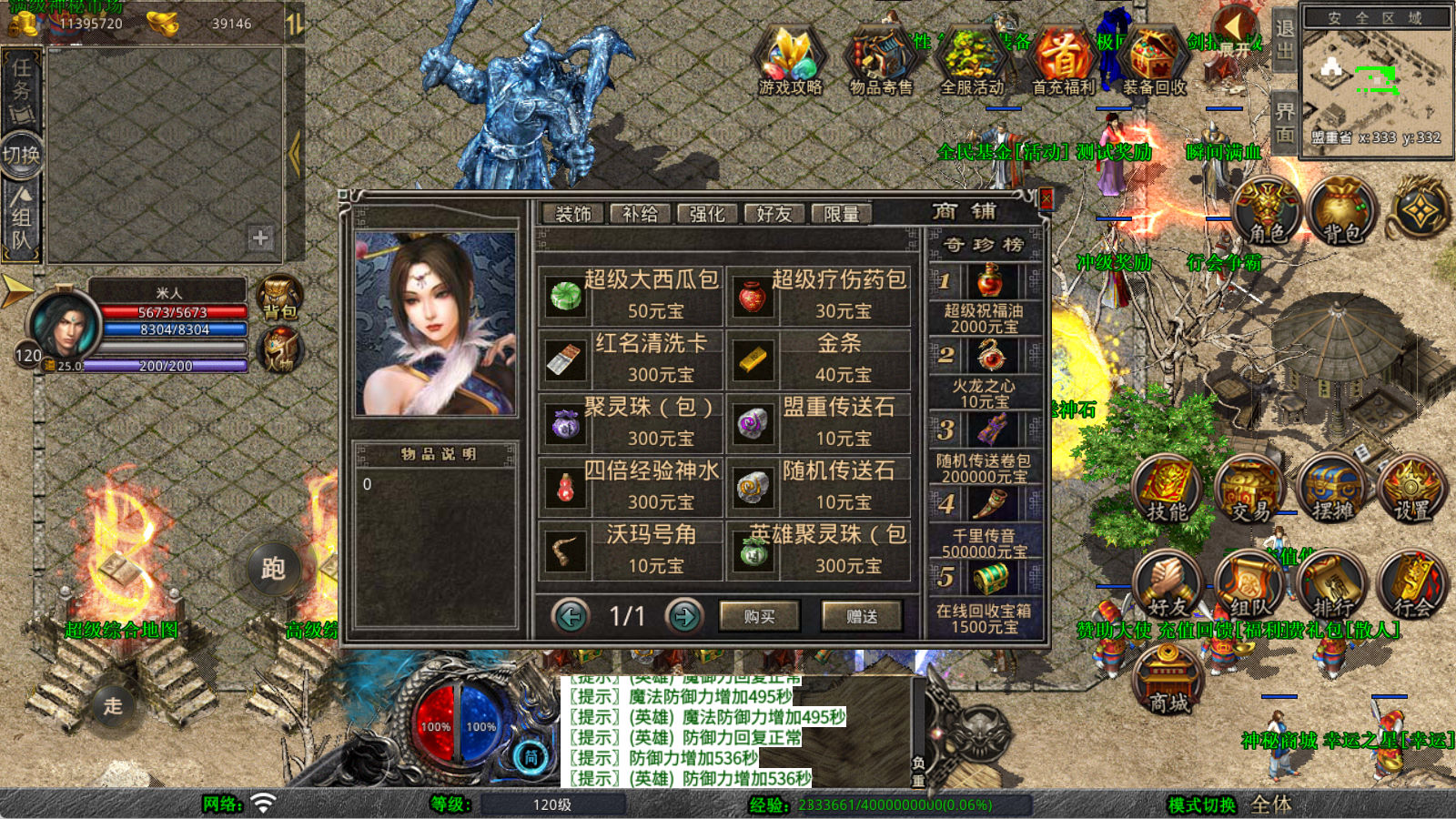 下面我们来测试下游戏里的功能看看。好了,其他功能就自行测试吧。更多的游戏资源可以访问www.MiR6.com下载,我们每款游戏资源均单独制作了独立的视频架设教程,让小白也可以快速上手游戏架设,快来体验自己做GM的乐趣吧!