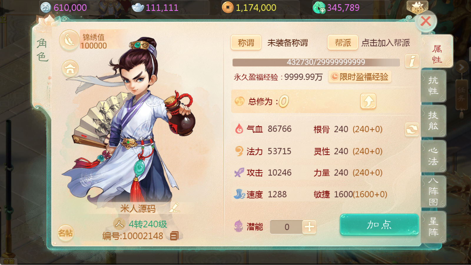 2.修复宝宝所有技能、门派修炼技能和心法等!