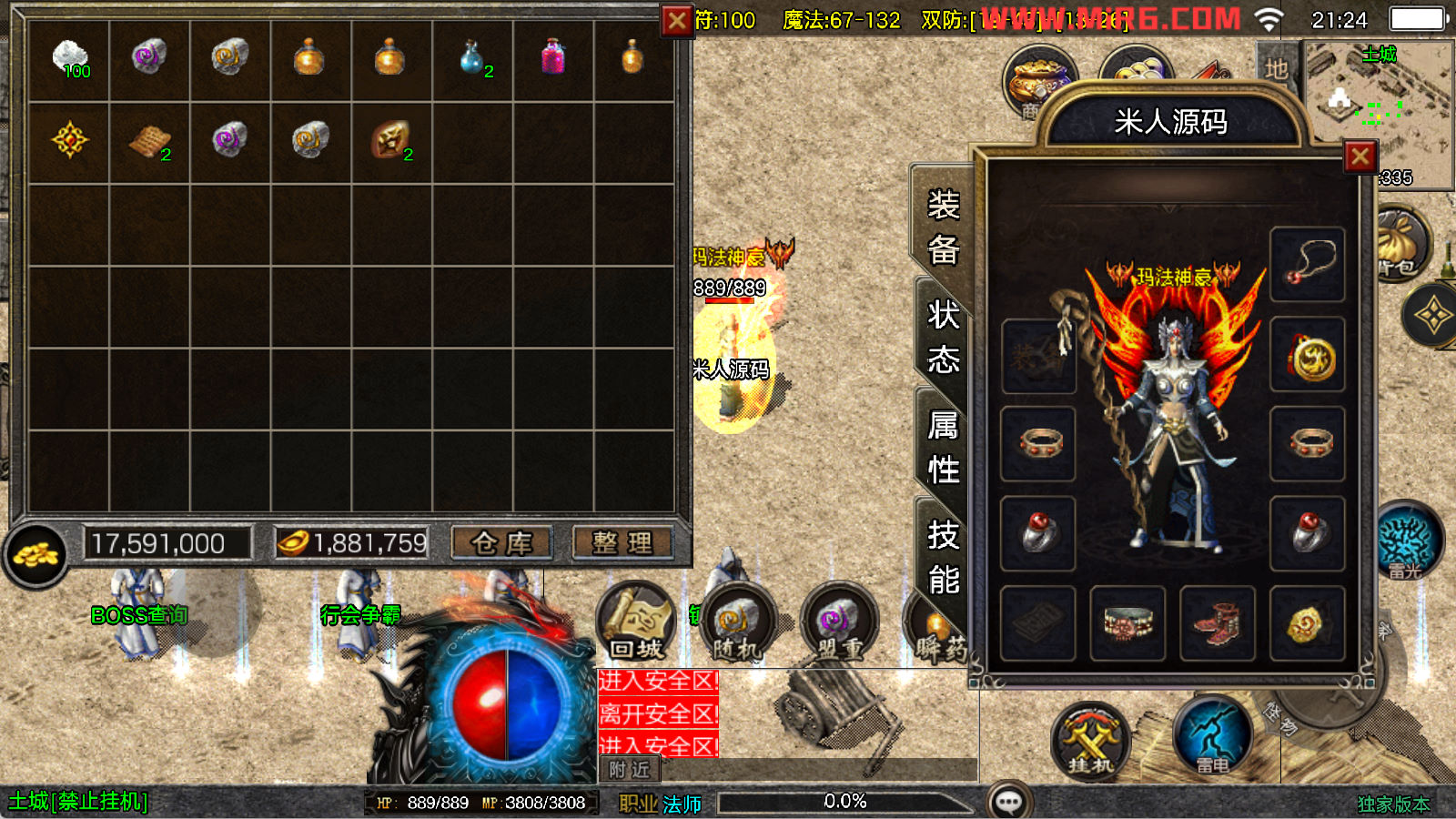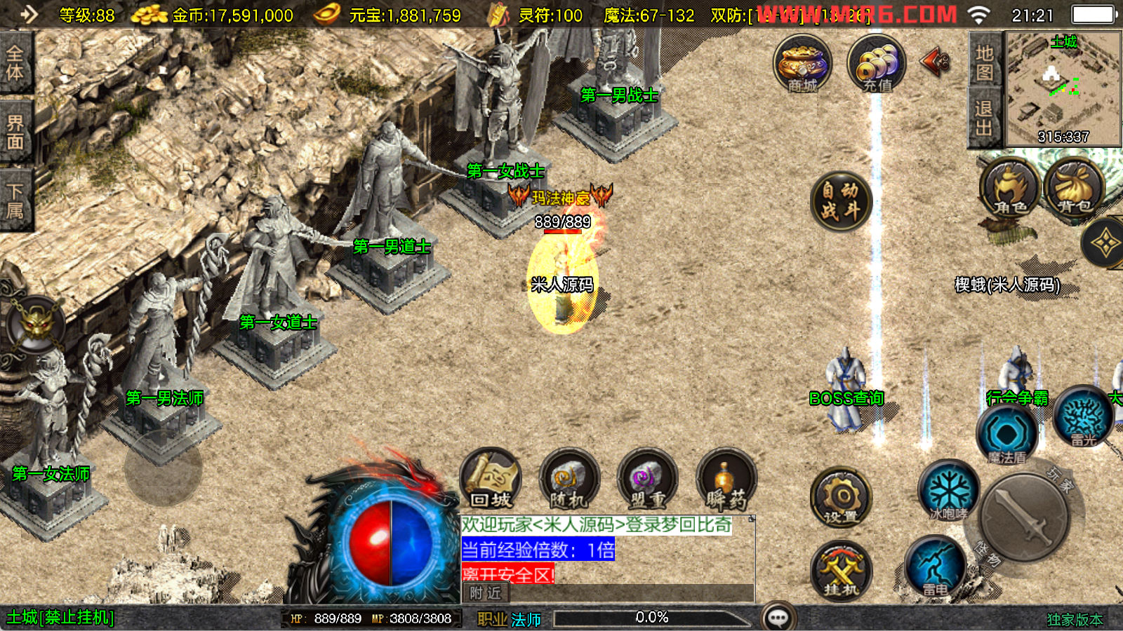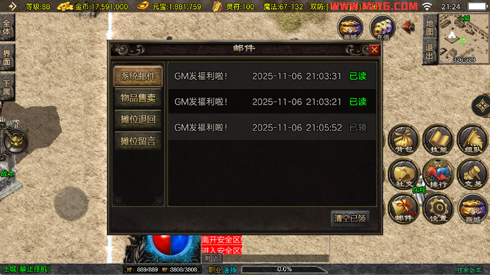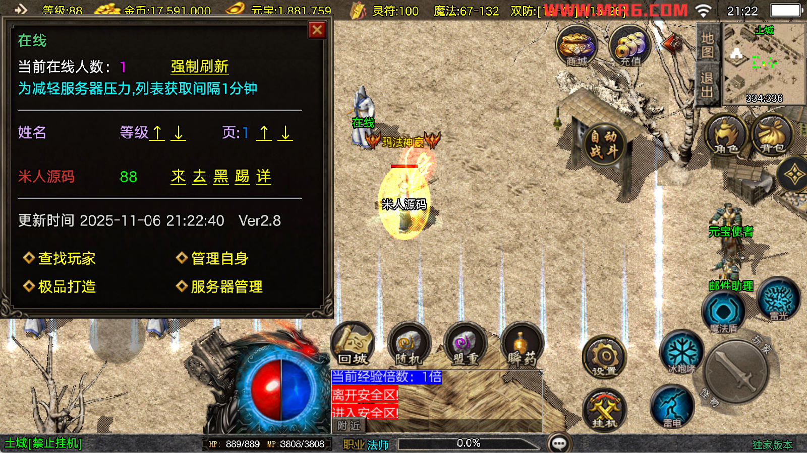 下面我们来测试下游戏里的功能看看。好了,其他功能就自行测试吧。更多的游戏资源可以访问www.MiR6.com下载,我们每款游戏资源均单独制作了独立的视频架设教程,让小白也可以快速上手游戏架设,快来体验自己做GM的乐趣吧!