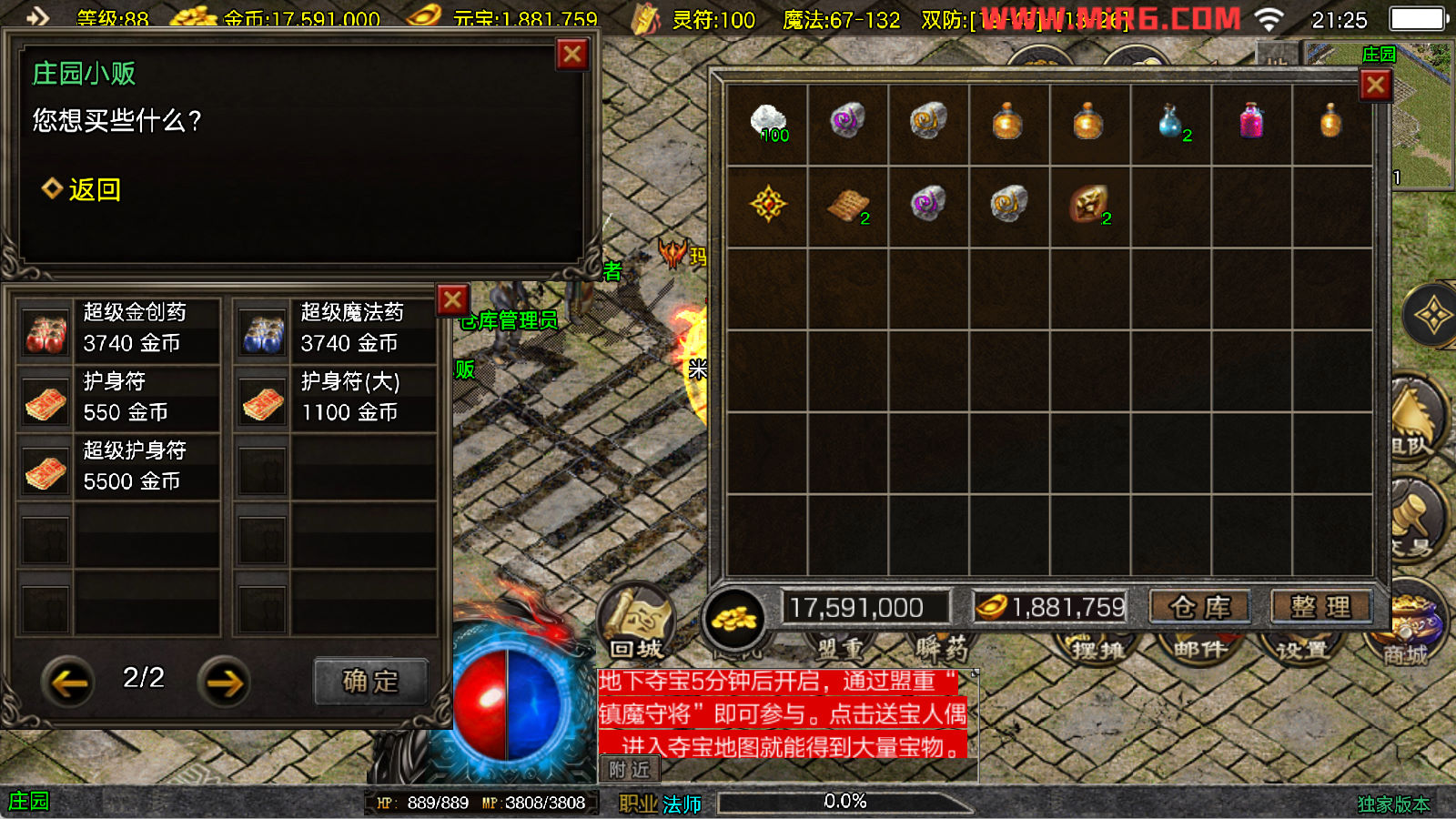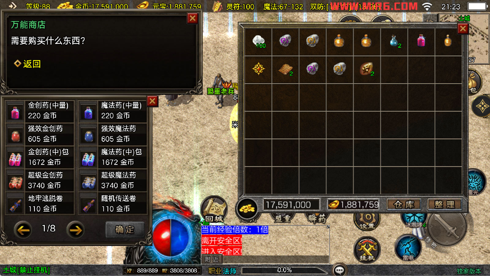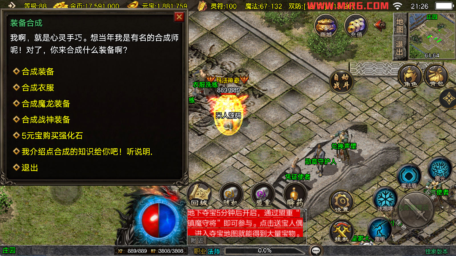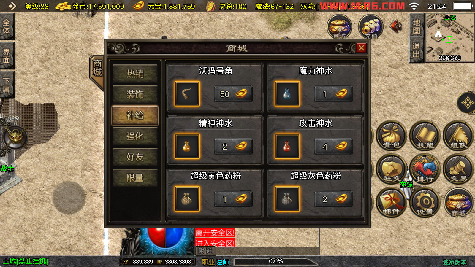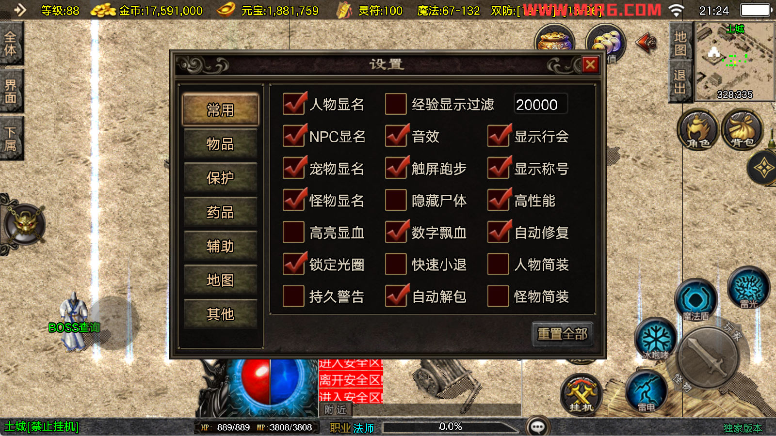 下面我们来测试下游戏里的功能看看。好了,其他功能就自行测试吧。更多的游戏资源可以访问www.MiR6.com下载,我们每款游戏资源均单独制作了独立的视频架设教程,让小白也可以快速上手游戏架设,快来体验自己做GM的乐趣吧!