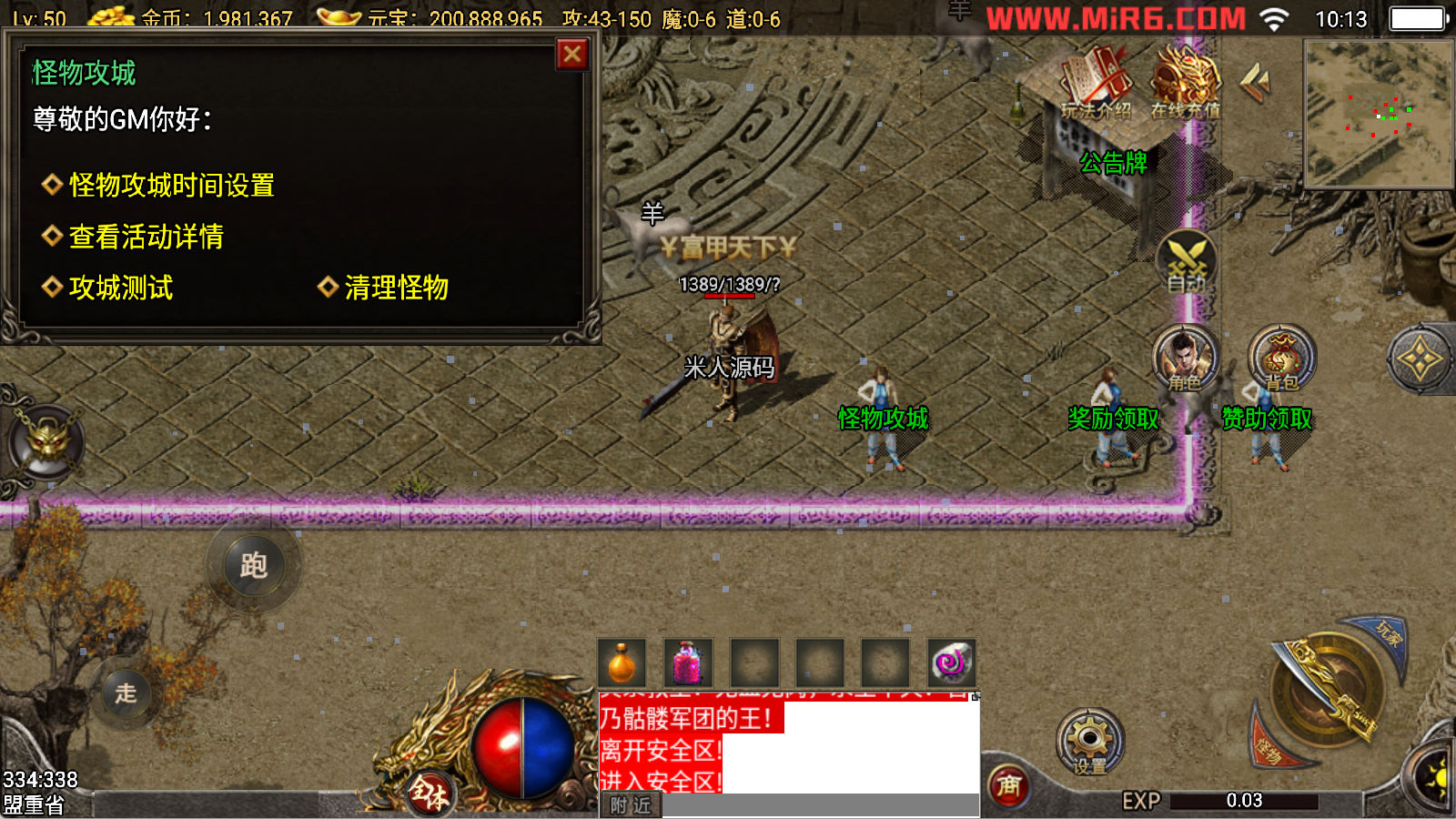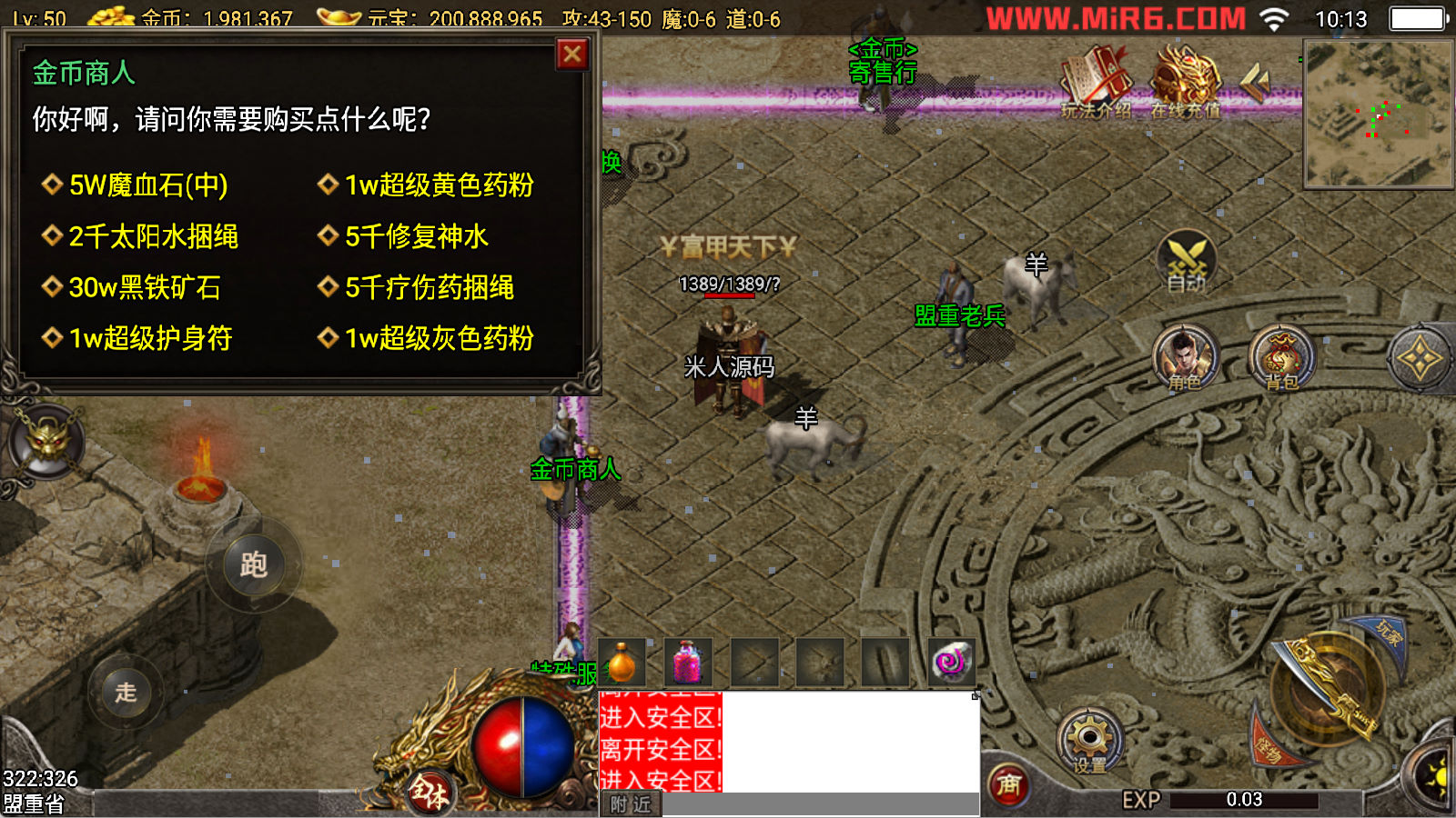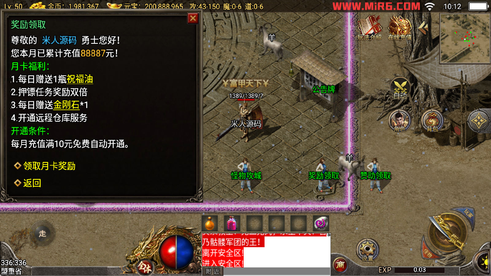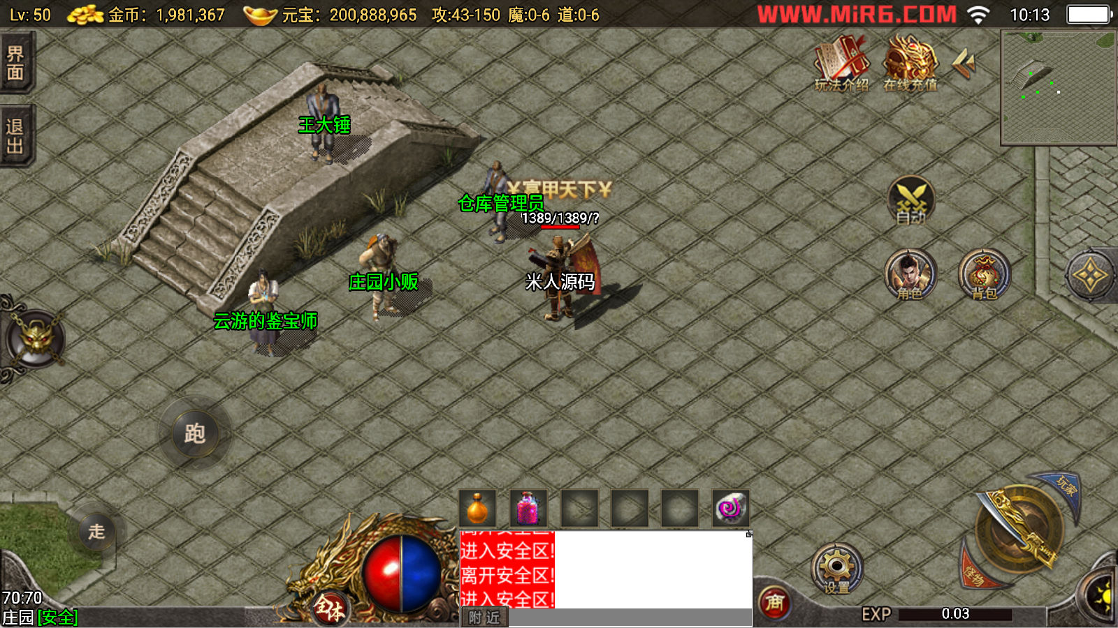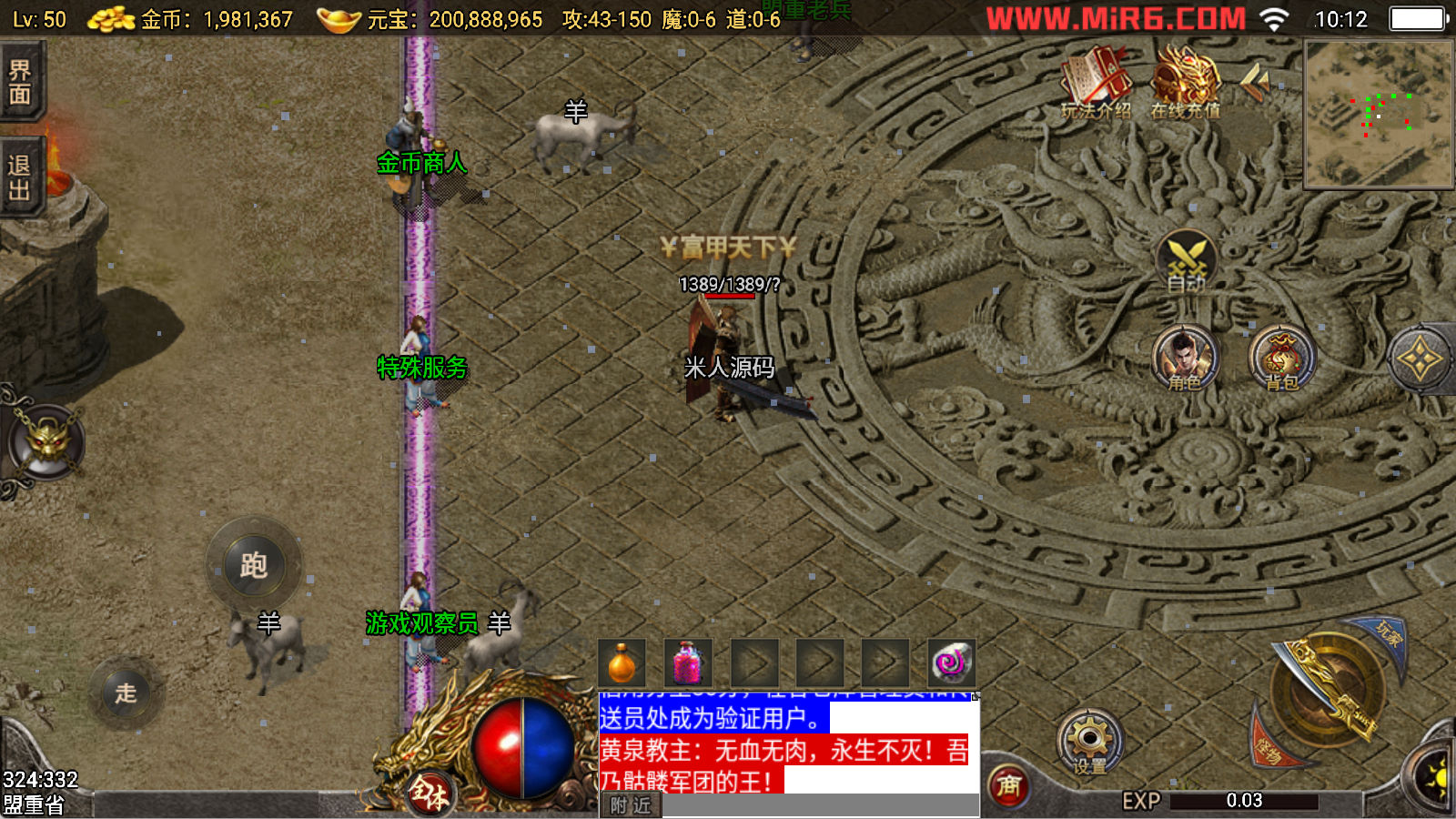 好了,下面我们去测试下游戏里的功能看看。好了,其他功能就自行测试吧。更多的游戏资源可以访问www.MiR6.com下载,我们每款游戏资源均单独制作了独立的视频架设教程,让小白也可以快速上手游戏架设,快来体验自己做GM的乐趣吧!