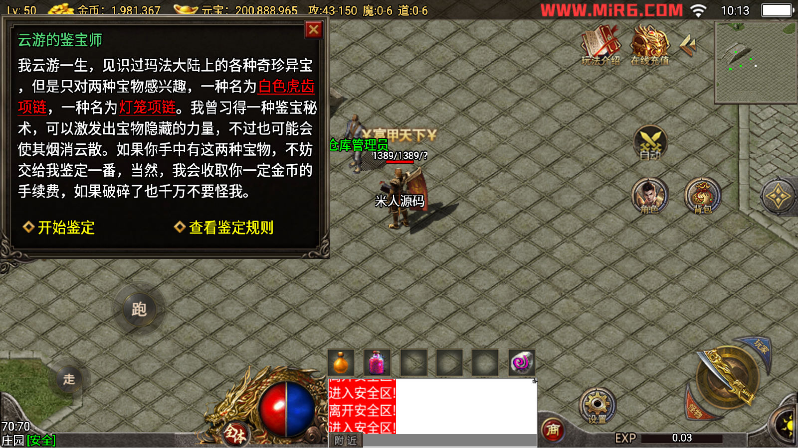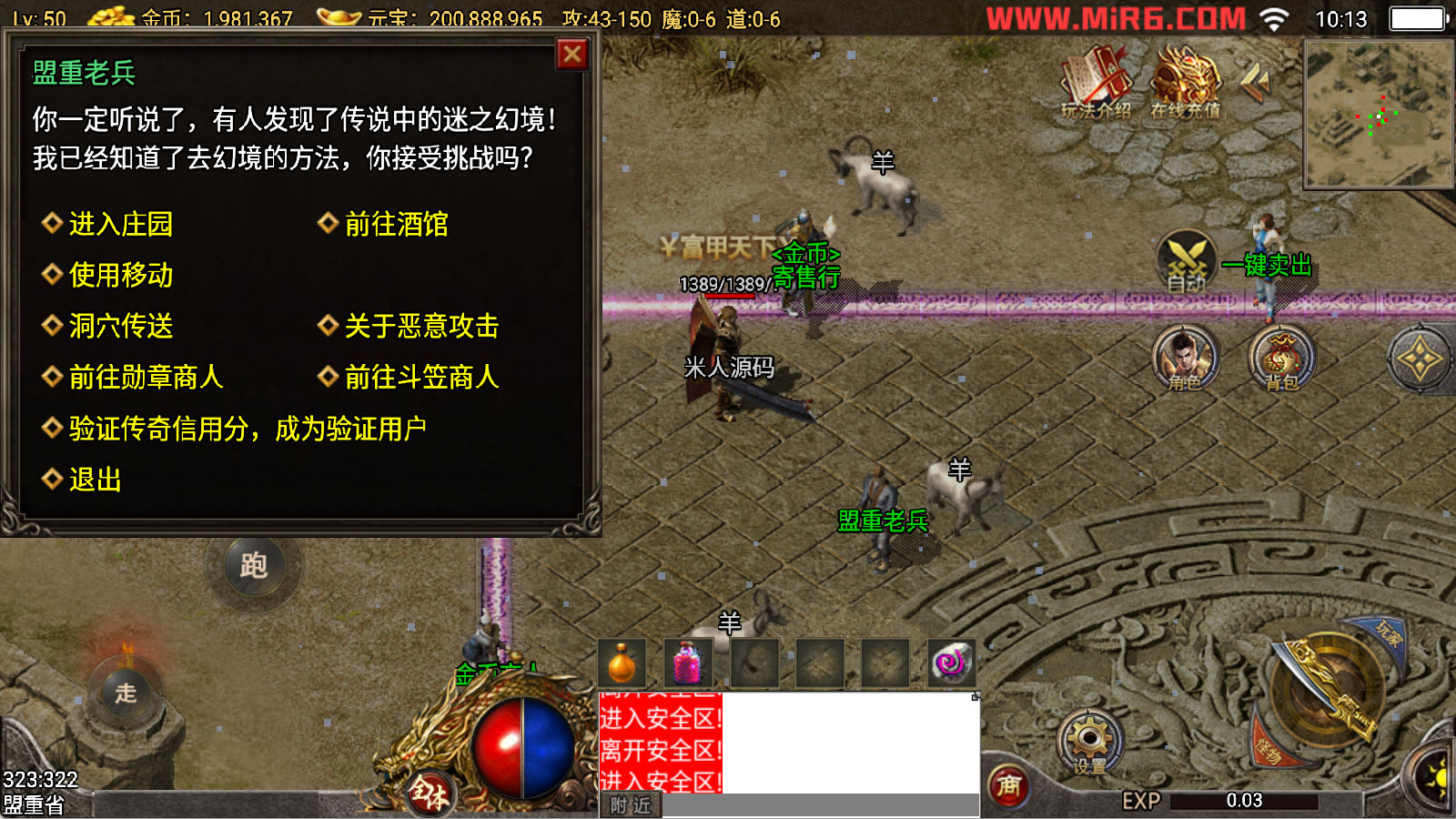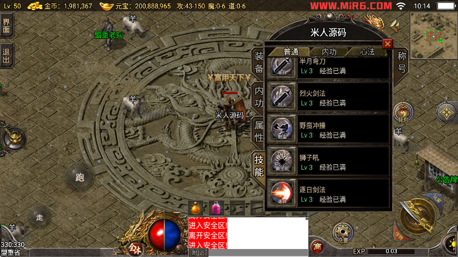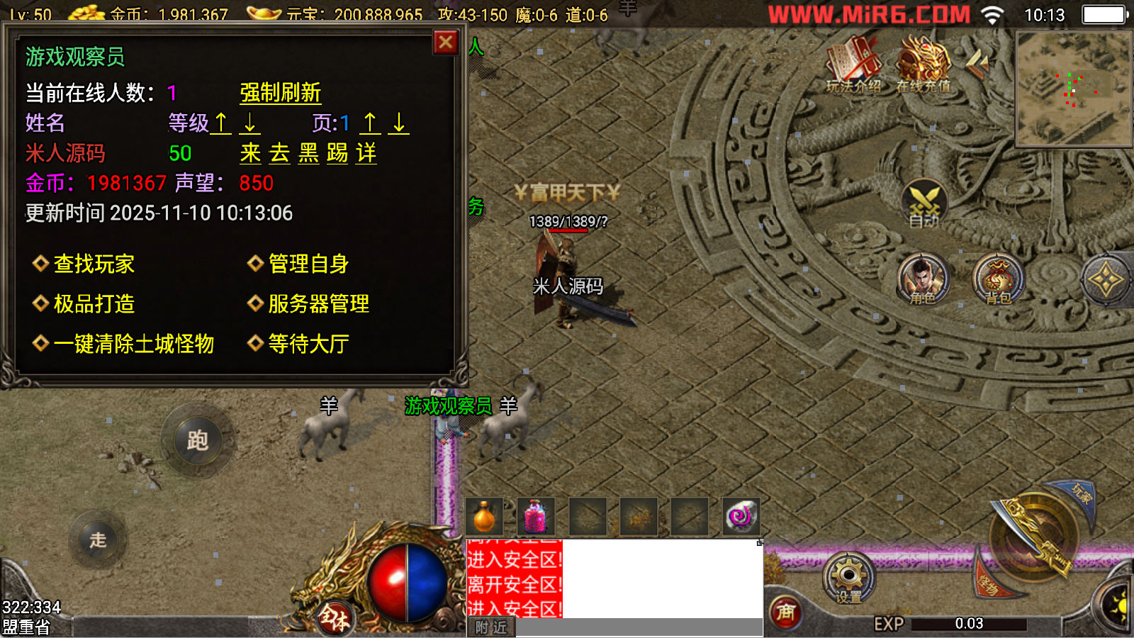 好了,下面我们去测试下游戏里的功能看看。好了,其他功能就自行测试吧。更多的游戏资源可以访问www.MiR6.com下载,我们每款游戏资源均单独制作了独立的视频架设教程,让小白也可以快速上手游戏架设,快来体验自己做GM的乐趣吧!