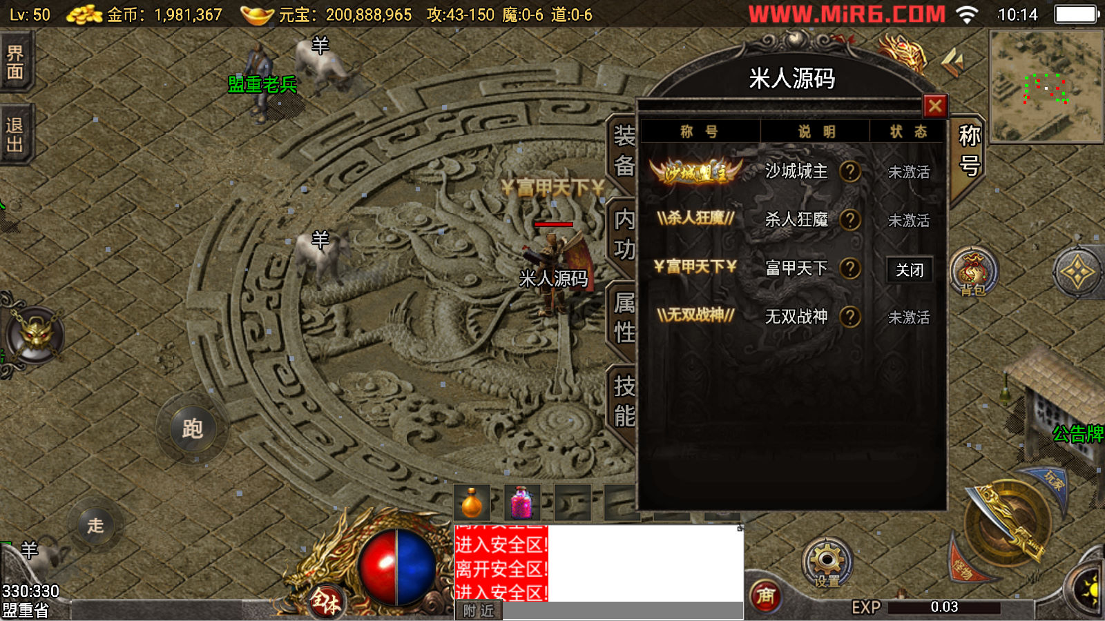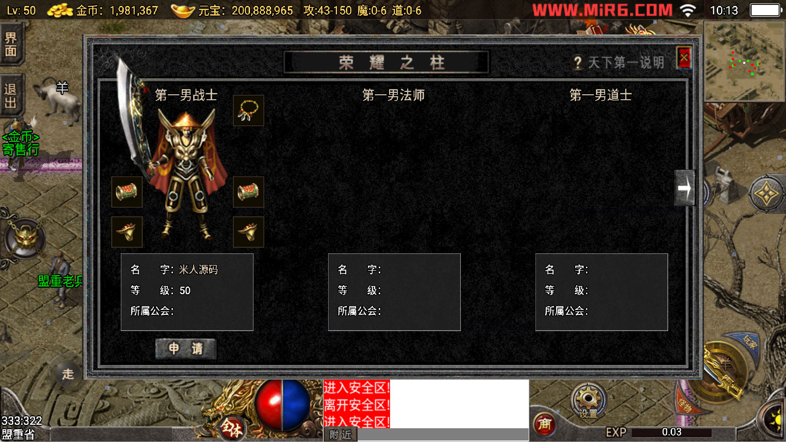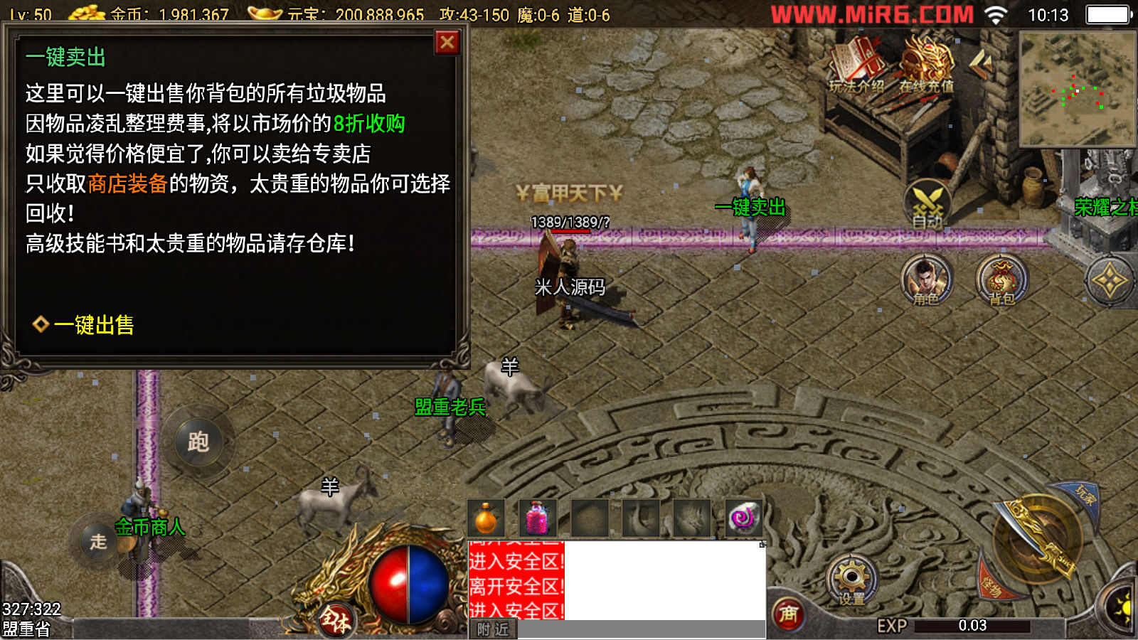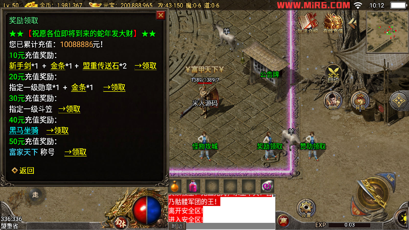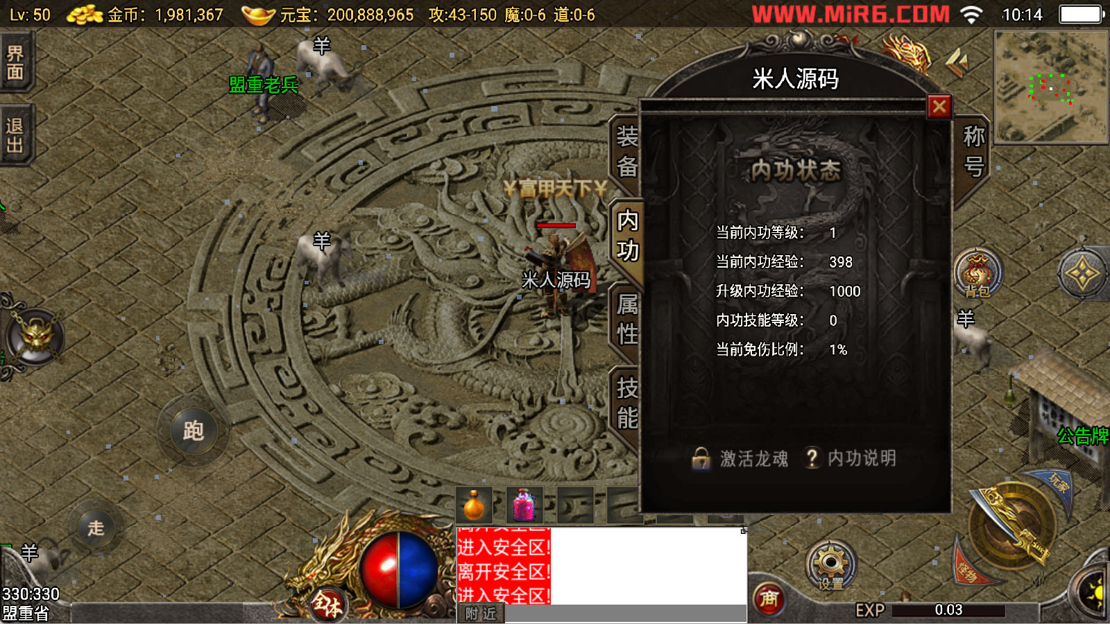 好了,下面我们去测试下游戏里的功能看看。好了,其他功能就自行测试吧。更多的游戏资源可以访问www.MiR6.com下载,我们每款游戏资源均单独制作了独立的视频架设教程,让小白也可以快速上手游戏架设,快来体验自己做GM的乐趣吧!