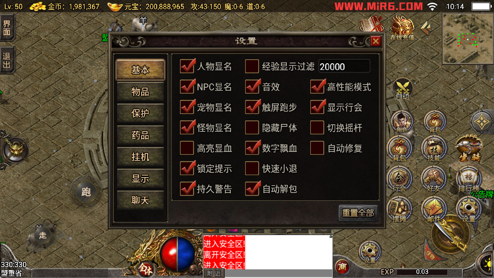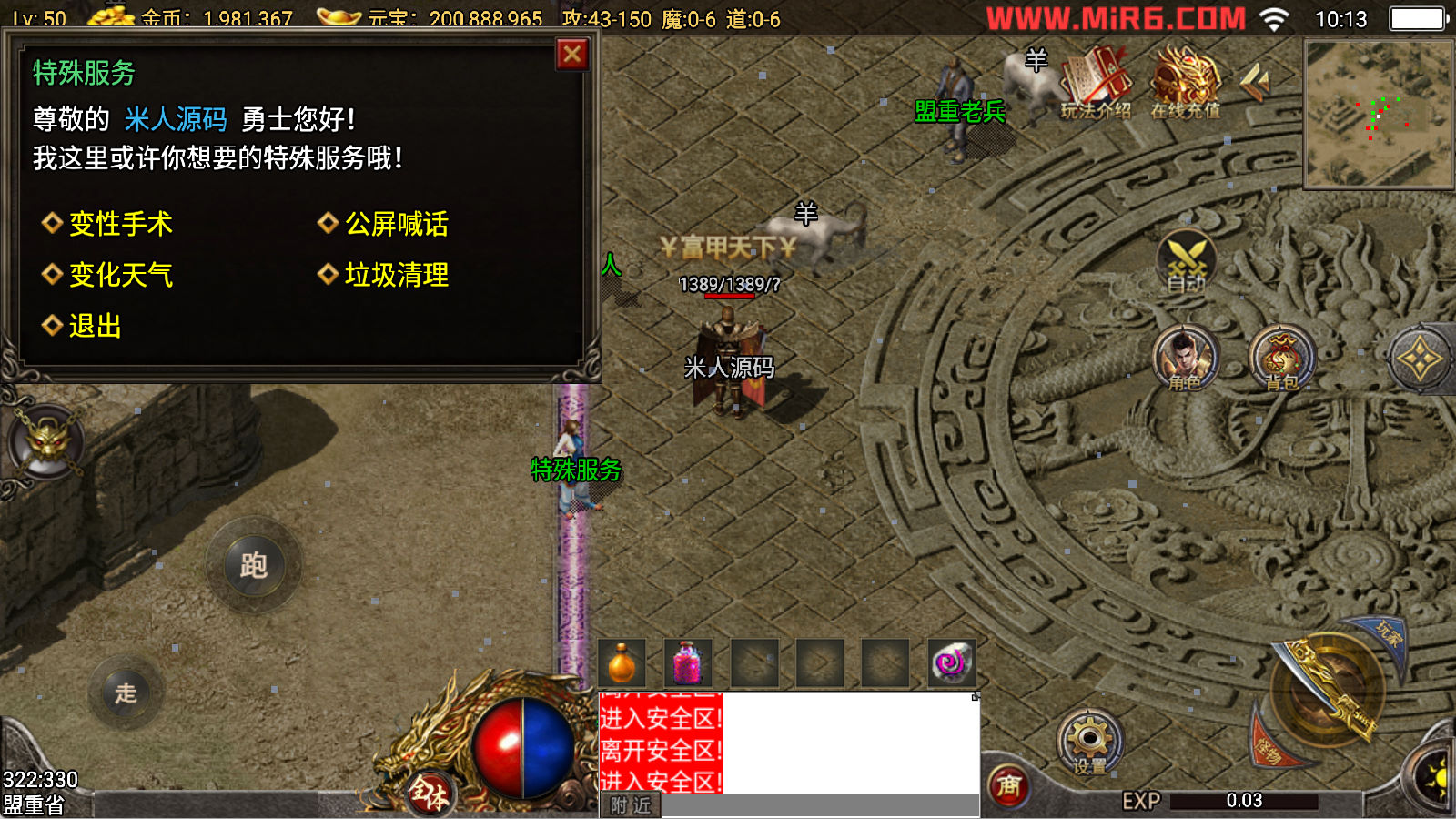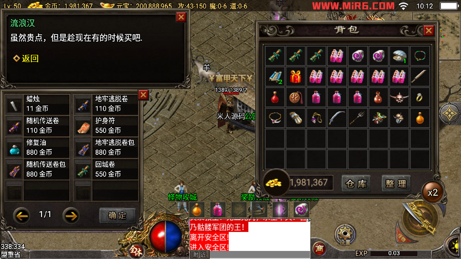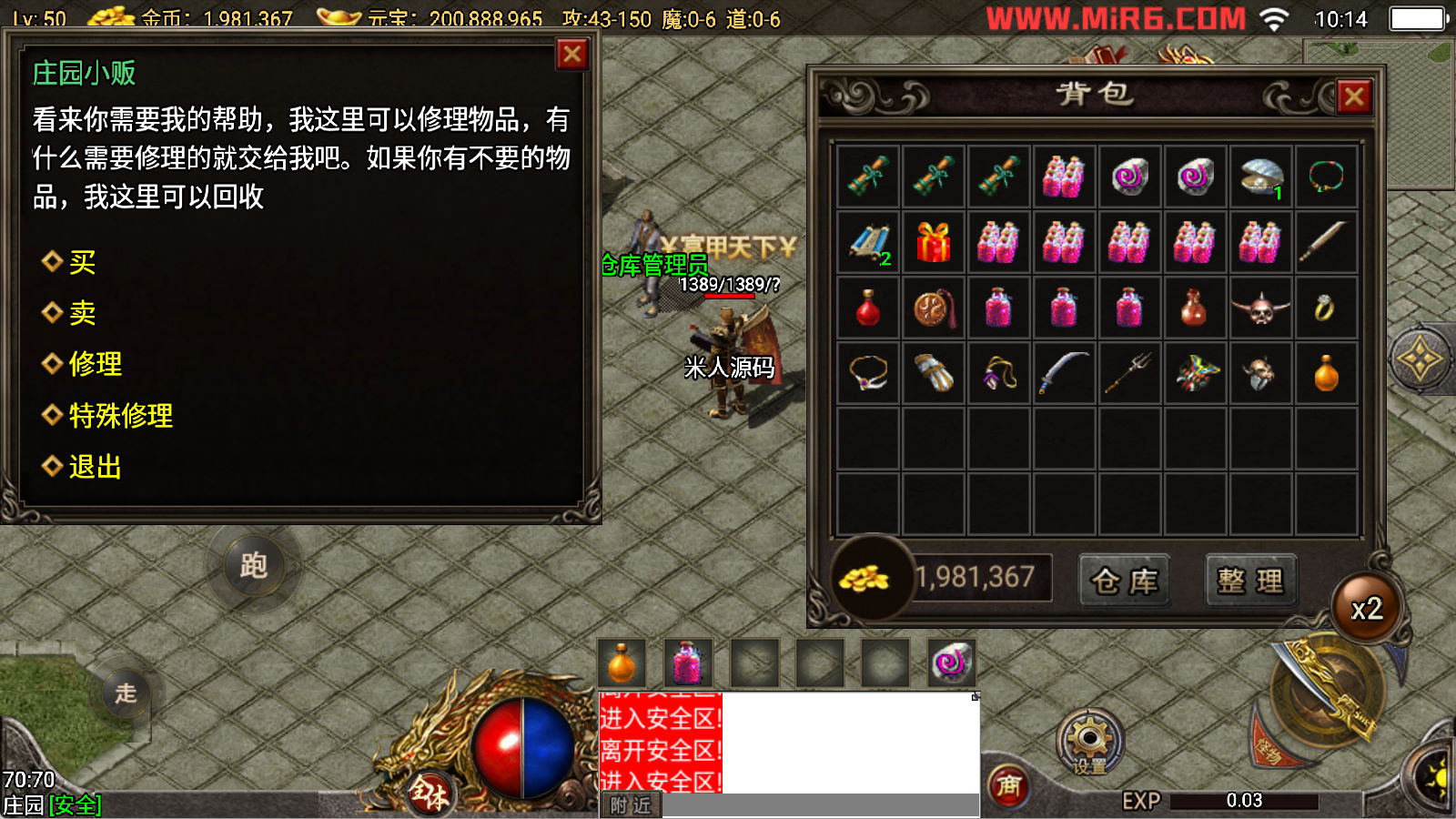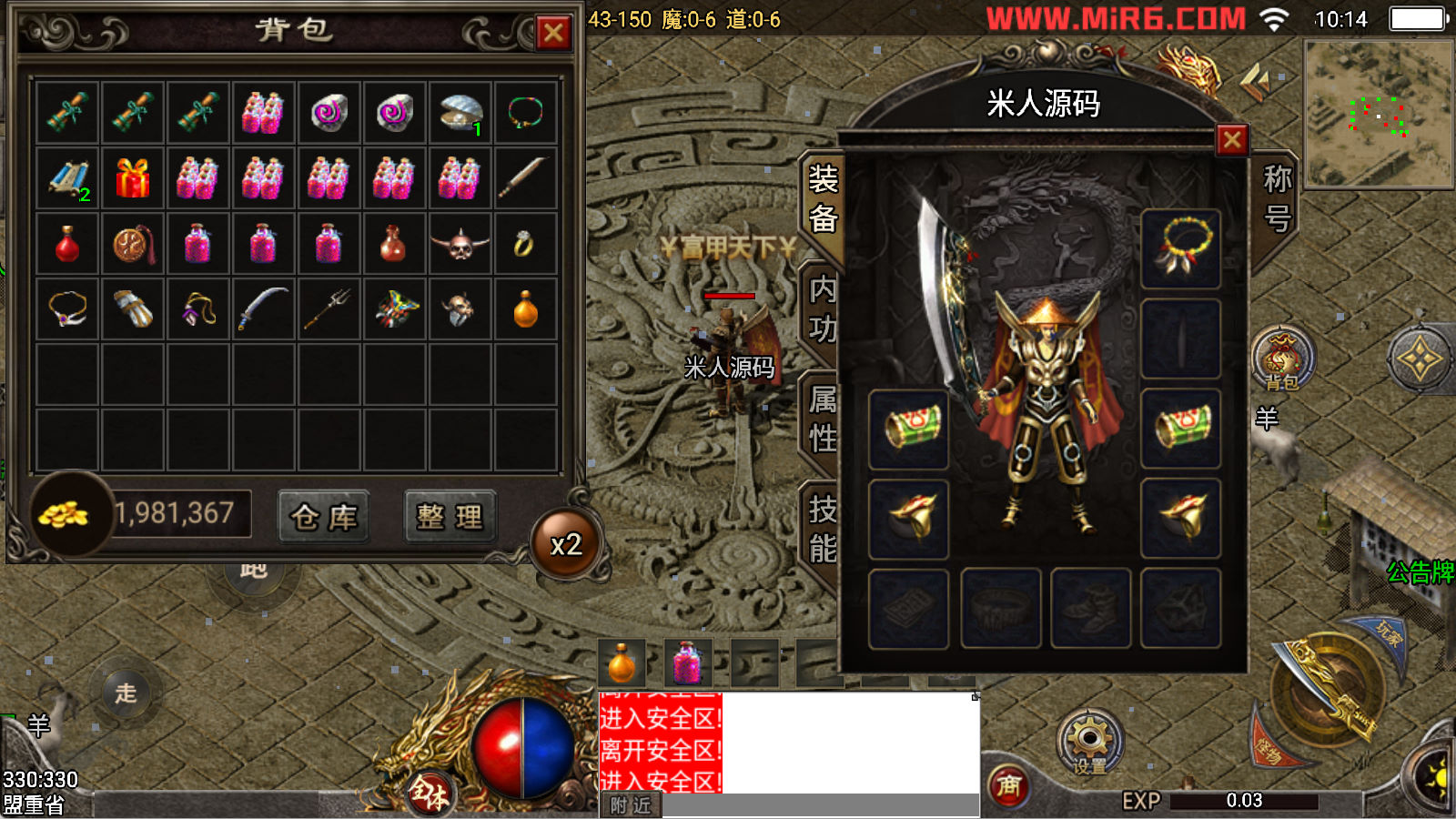 好了,下面我们去测试下游戏里的功能看看。好了,其他功能就自行测试吧。更多的游戏资源可以访问www.MiR6.com下载,我们每款游戏资源均单独制作了独立的视频架设教程,让小白也可以快速上手游戏架设,快来体验自己做GM的乐趣吧!