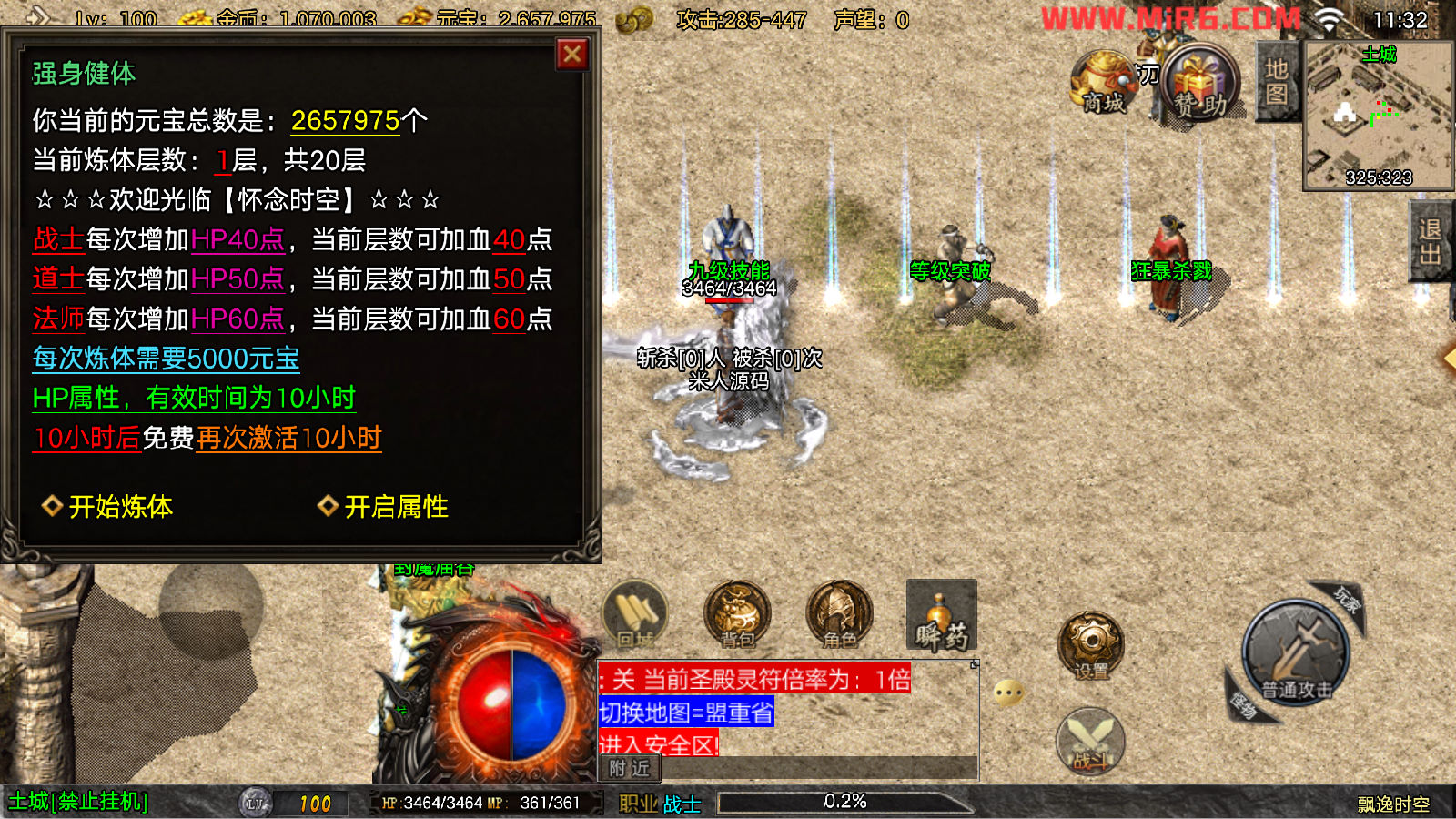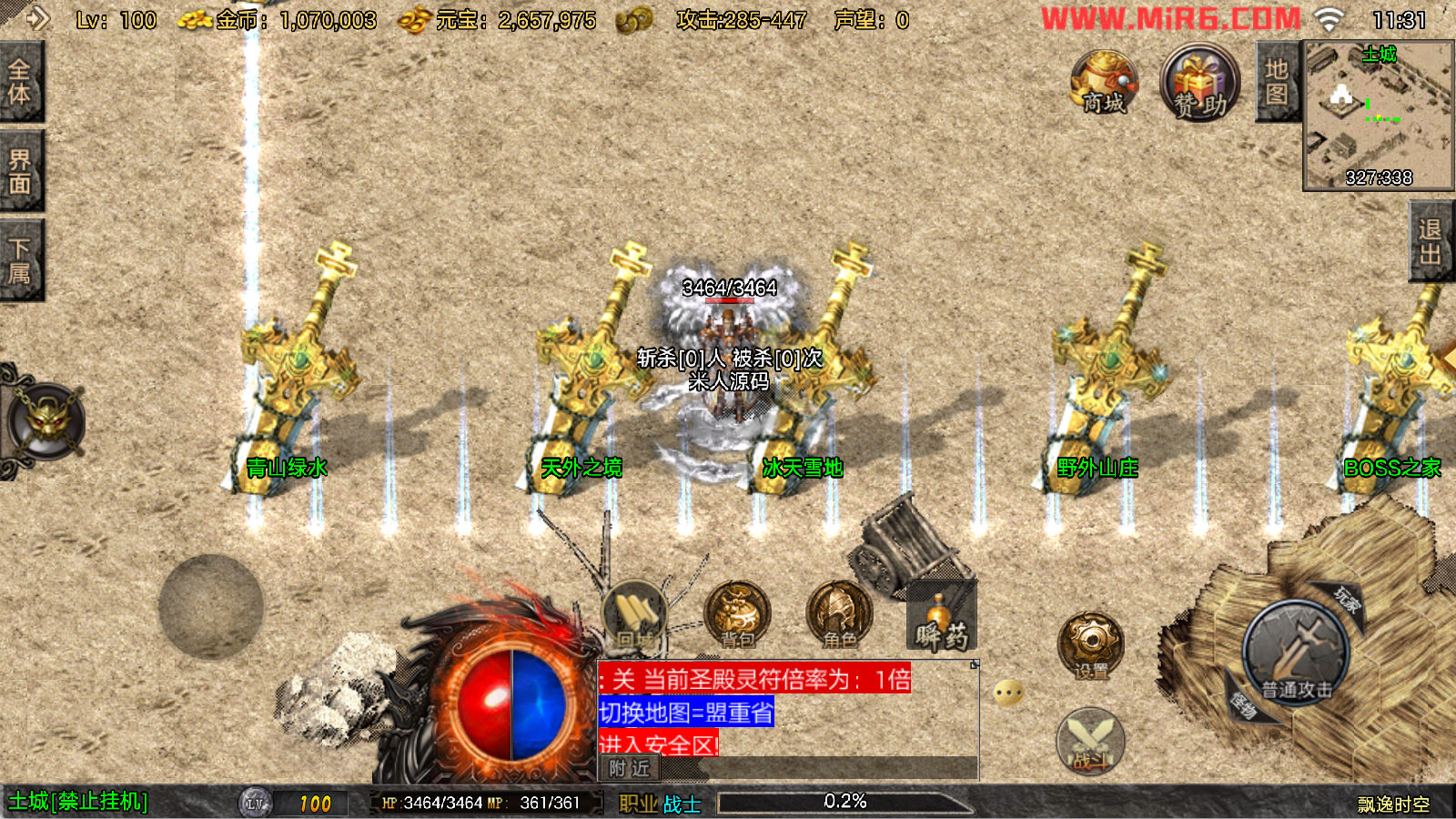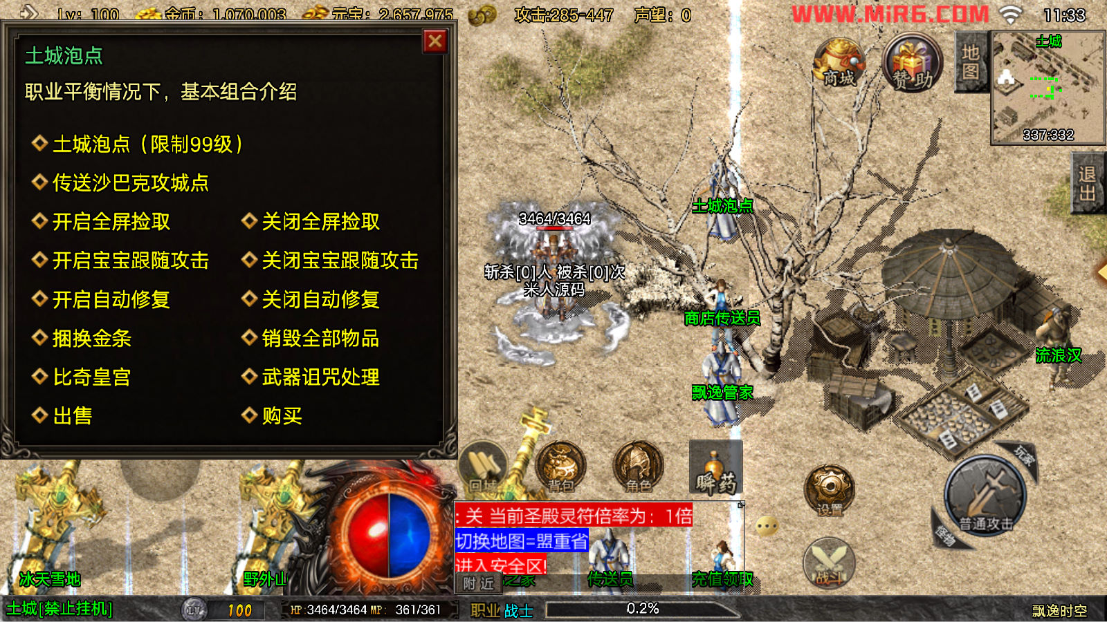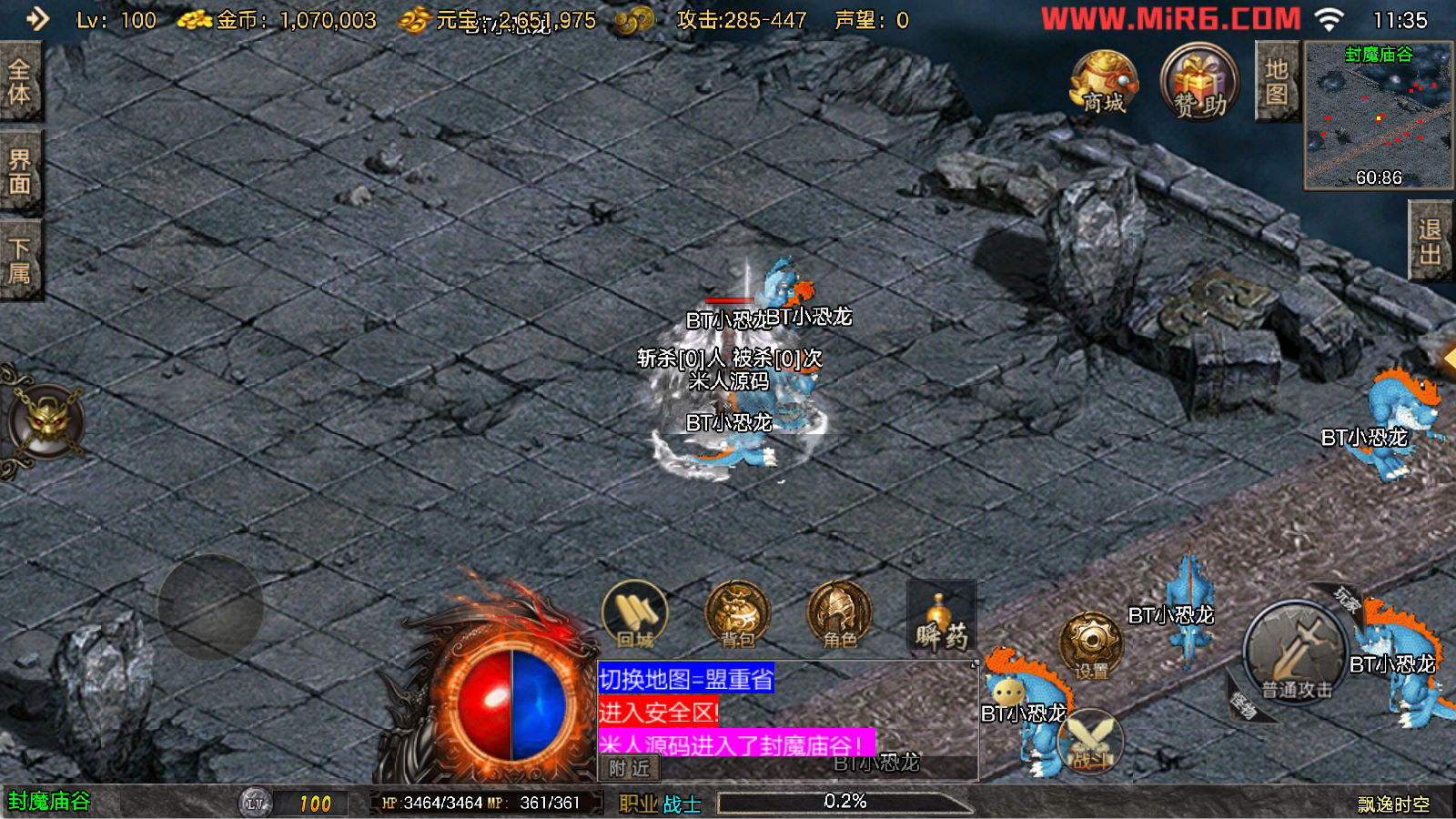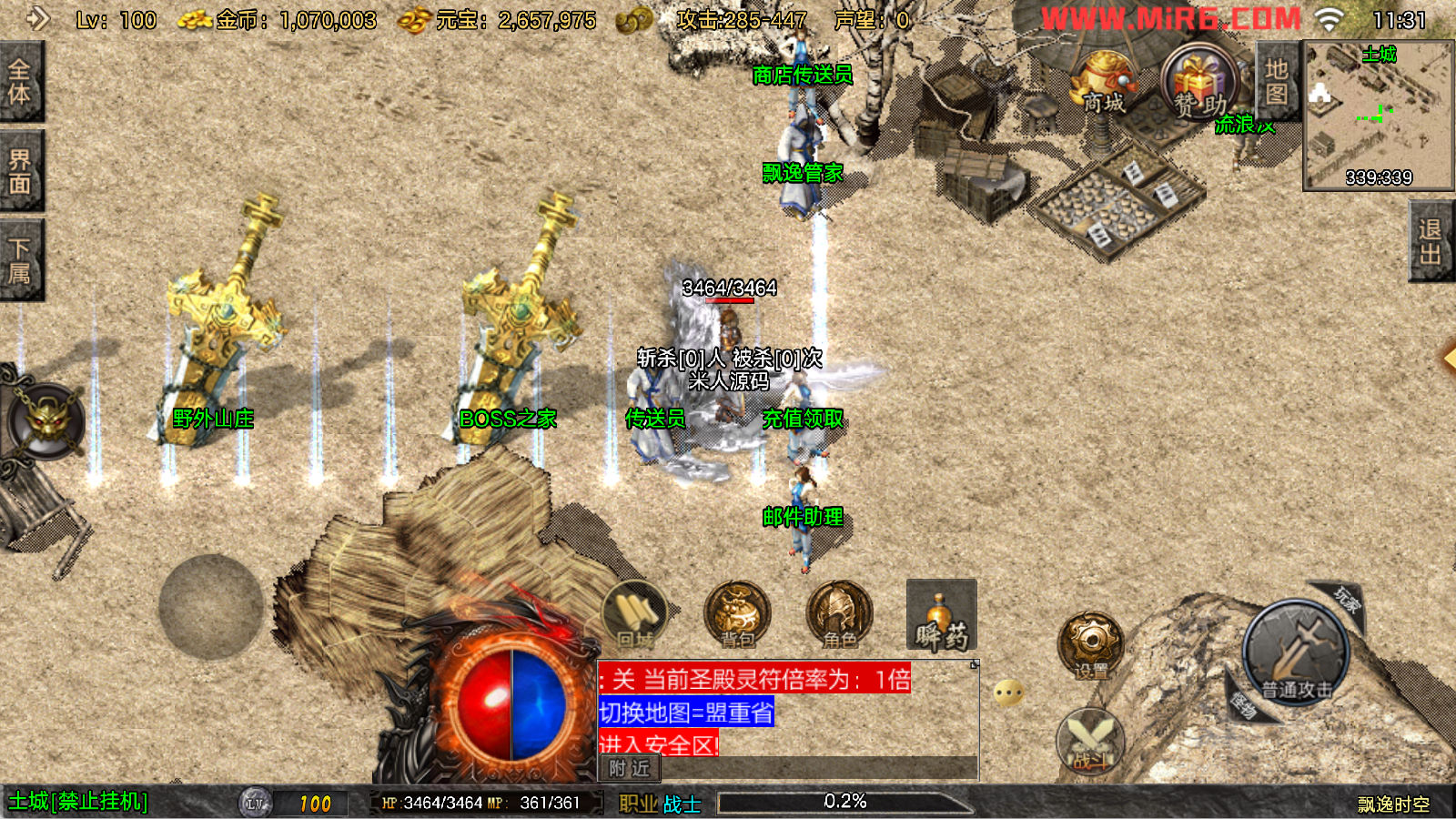 下面我们测试下游戏里的功能看看。好了,其他功能就自行测试吧。更多的游戏资源可以访问www.MiR6.com下载,我们每款游戏资源均单独制作了独立的视频架设教程,让小白也可以快速上手游戏架设,快来体验自己做GM的乐趣吧!