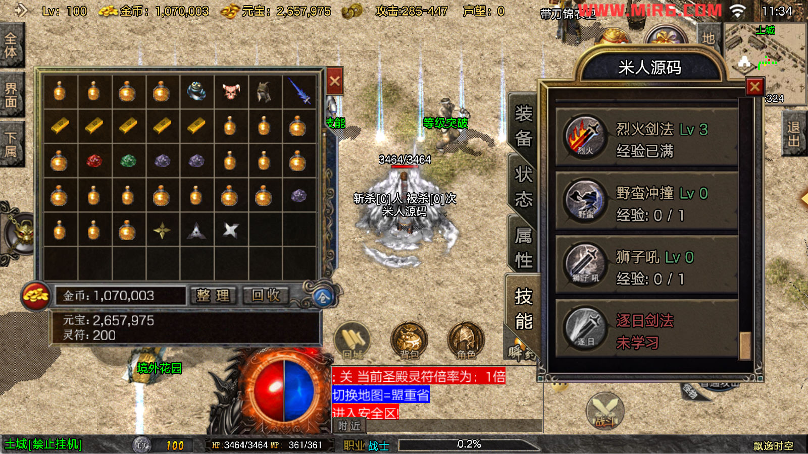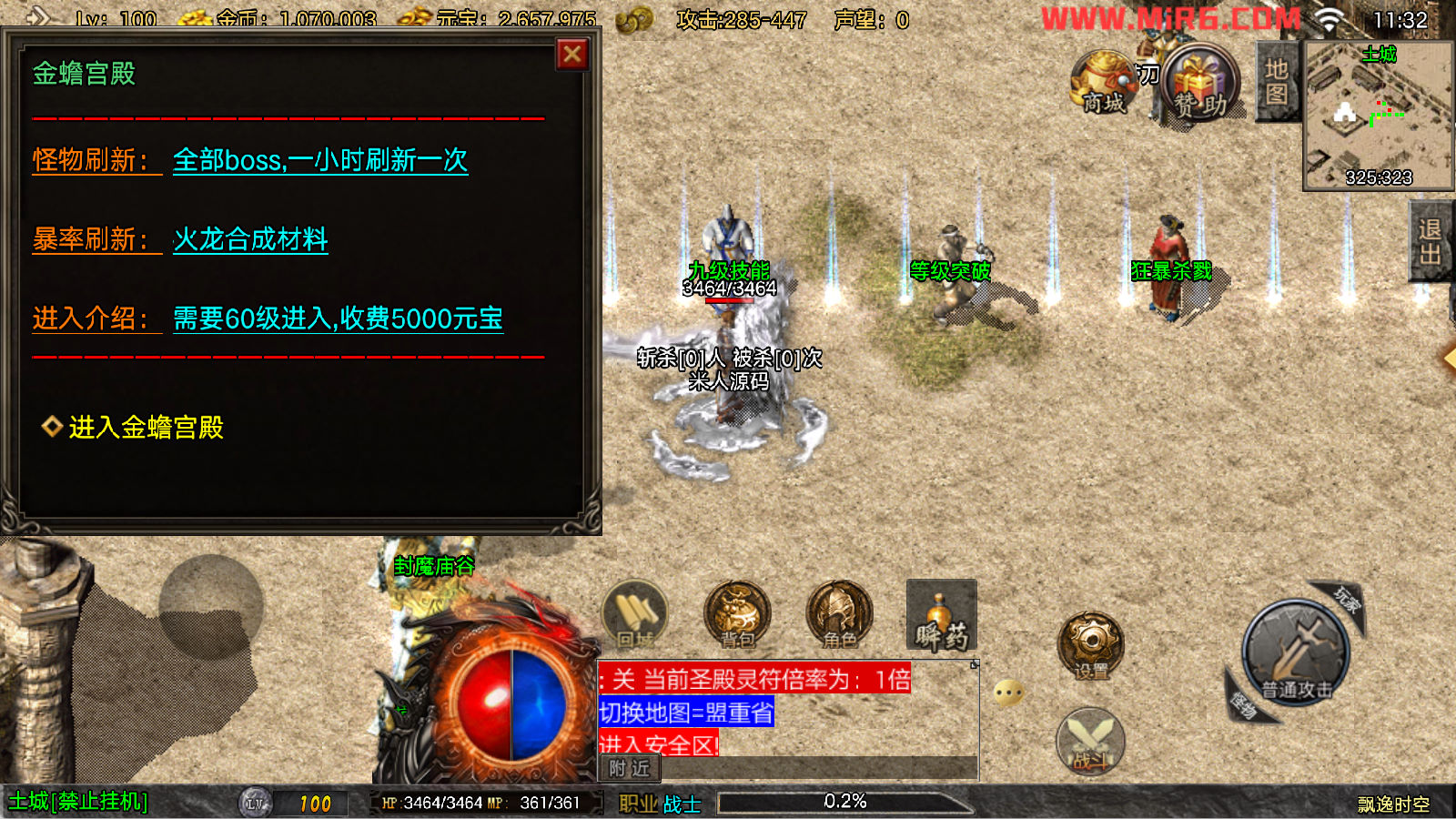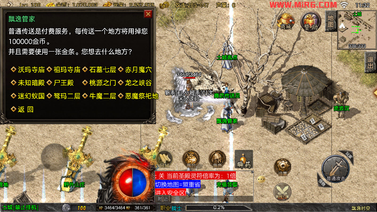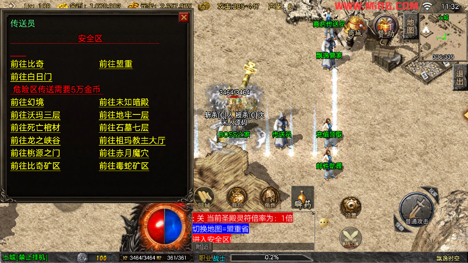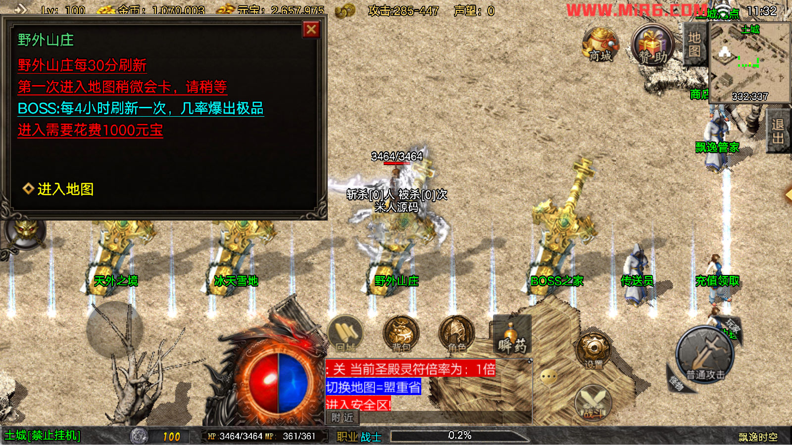 下面我们测试下游戏里的功能看看。好了,其他功能就自行测试吧。更多的游戏资源可以访问www.MiR6.com下载,我们每款游戏资源均单独制作了独立的视频架设教程,让小白也可以快速上手游戏架设,快来体验自己做GM的乐趣吧!