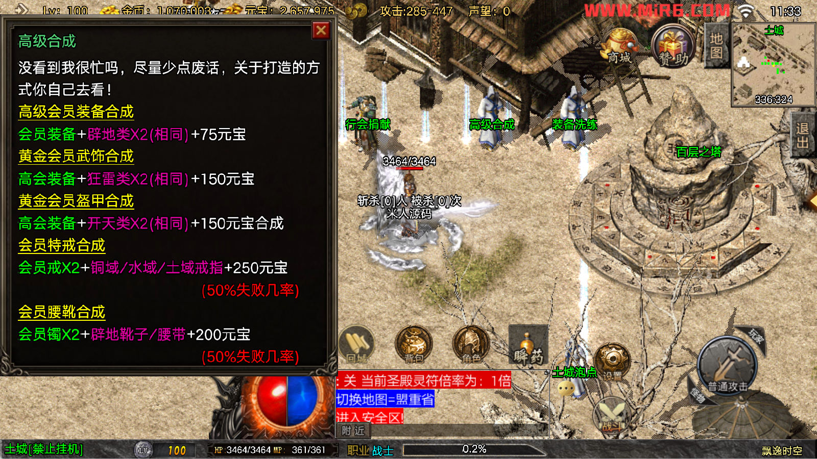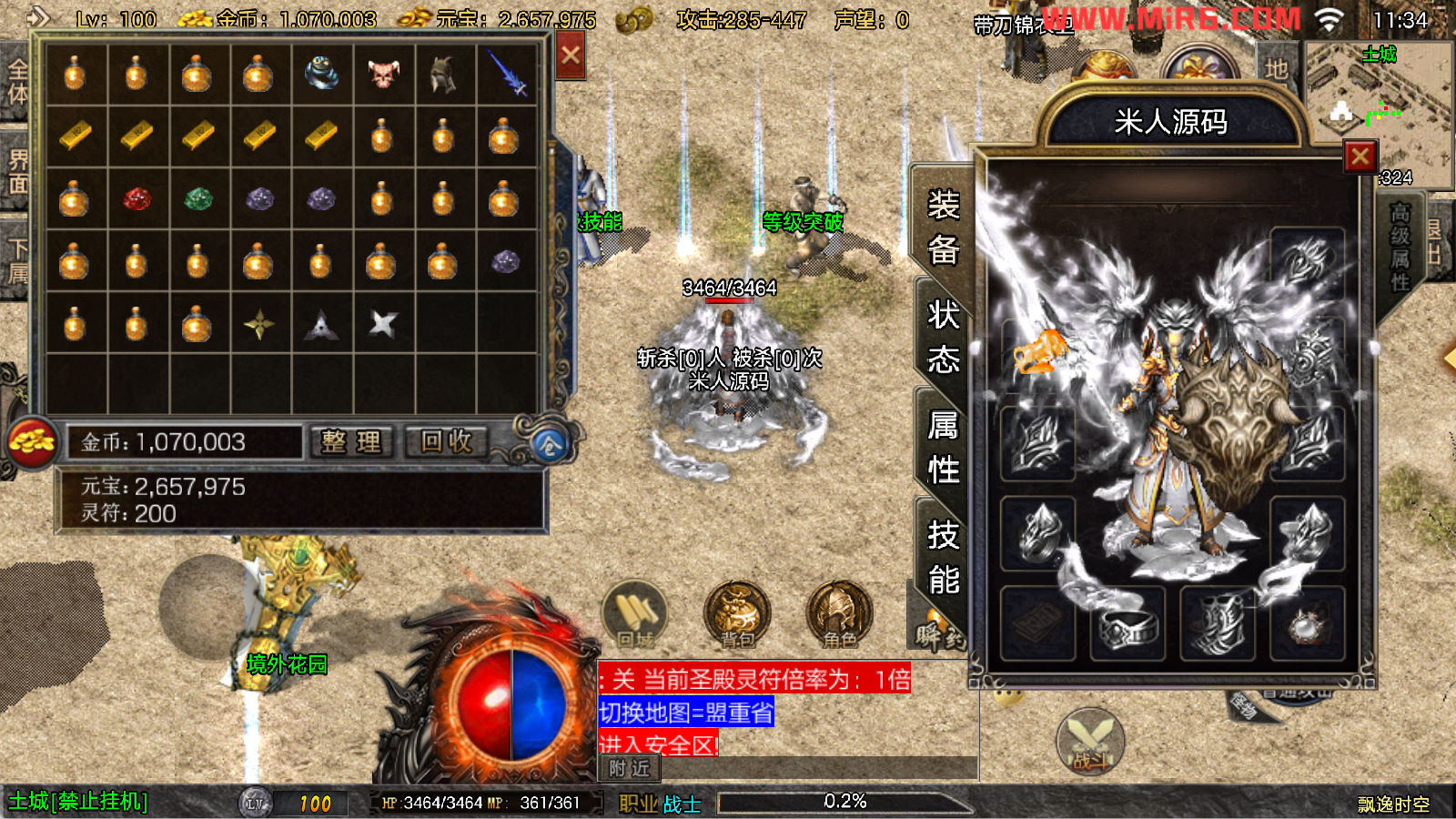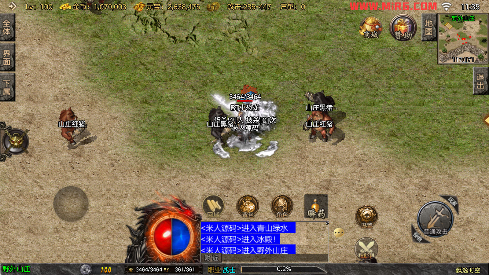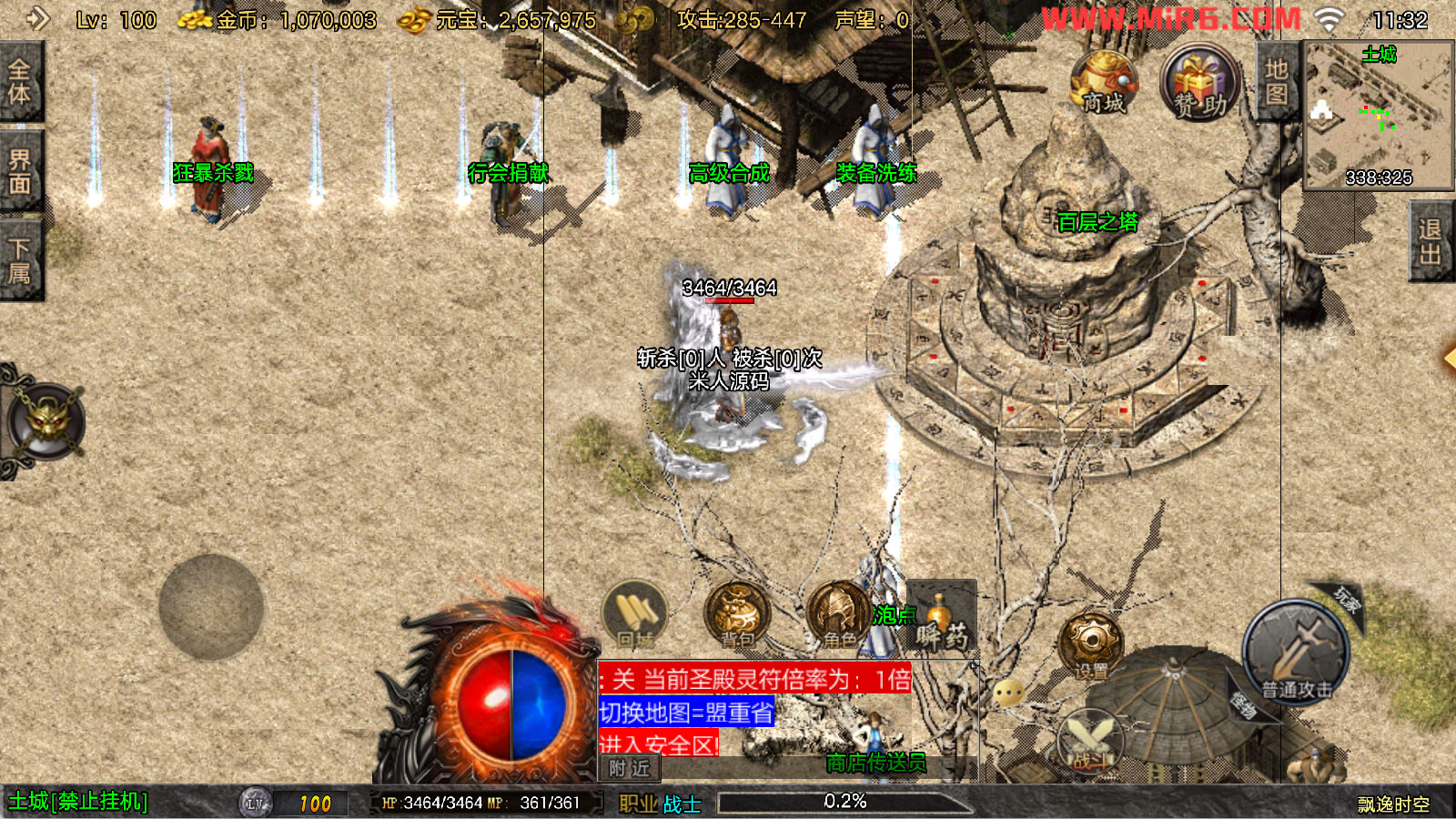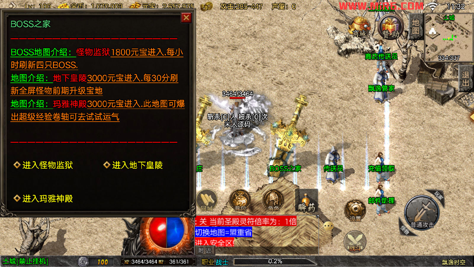 下面我们测试下游戏里的功能看看。好了,其他功能就自行测试吧。更多的游戏资源可以访问www.MiR6.com下载,我们每款游戏资源均单独制作了独立的视频架设教程,让小白也可以快速上手游戏架设,快来体验自己做GM的乐趣吧!