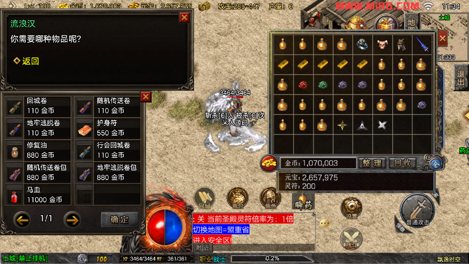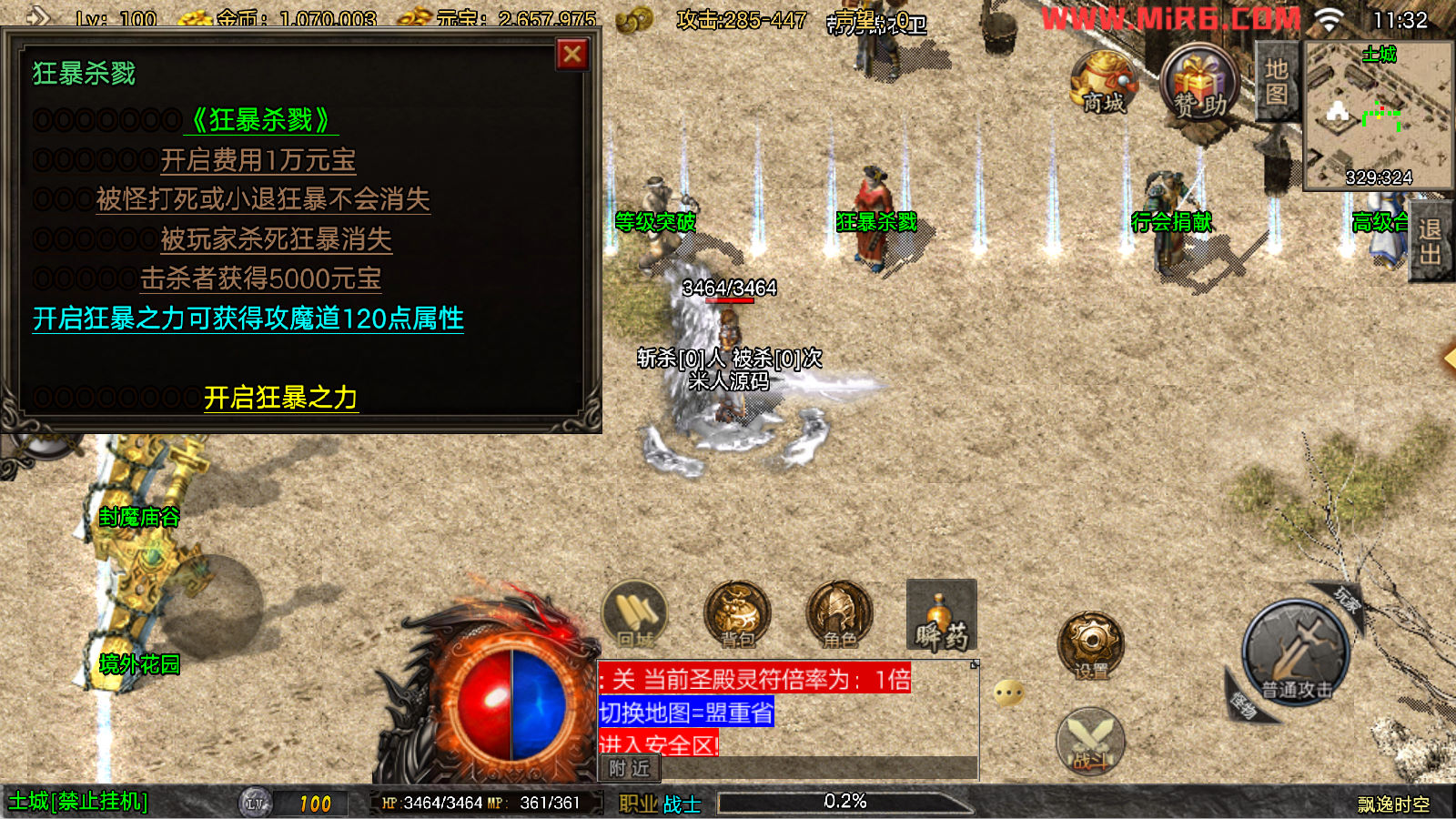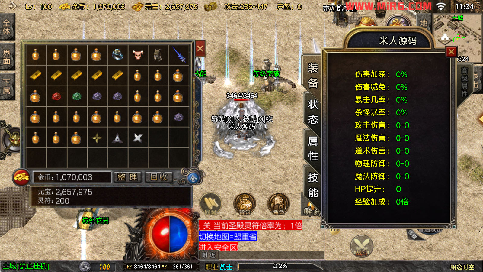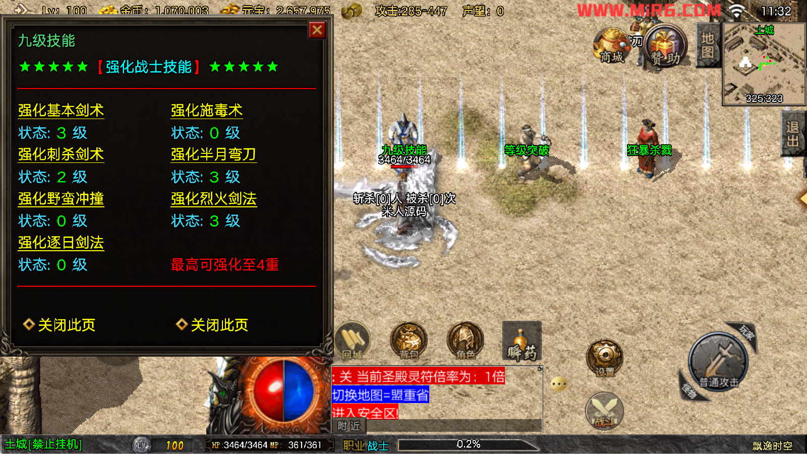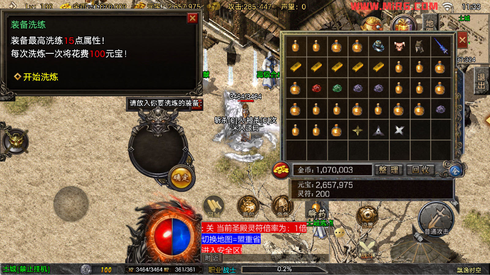 下面我们测试下游戏里的功能看看。好了,其他功能就自行测试吧。更多的游戏资源可以访问www.MiR6.com下载,我们每款游戏资源均单独制作了独立的视频架设教程,让小白也可以快速上手游戏架设,快来体验自己做GM的乐趣吧!