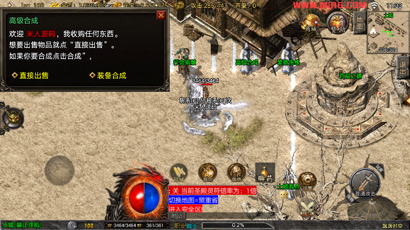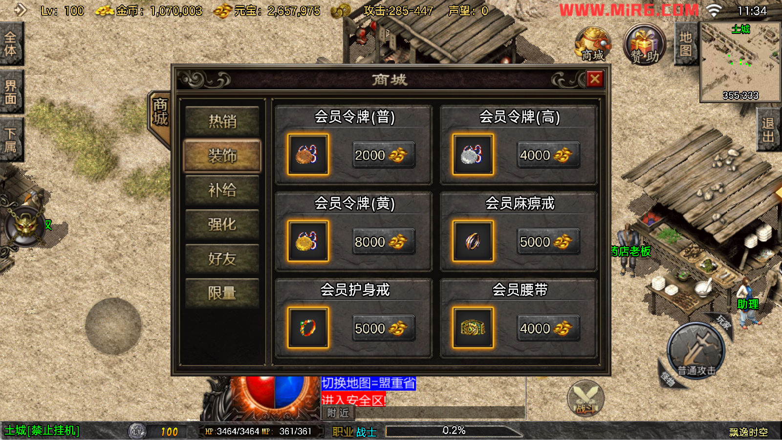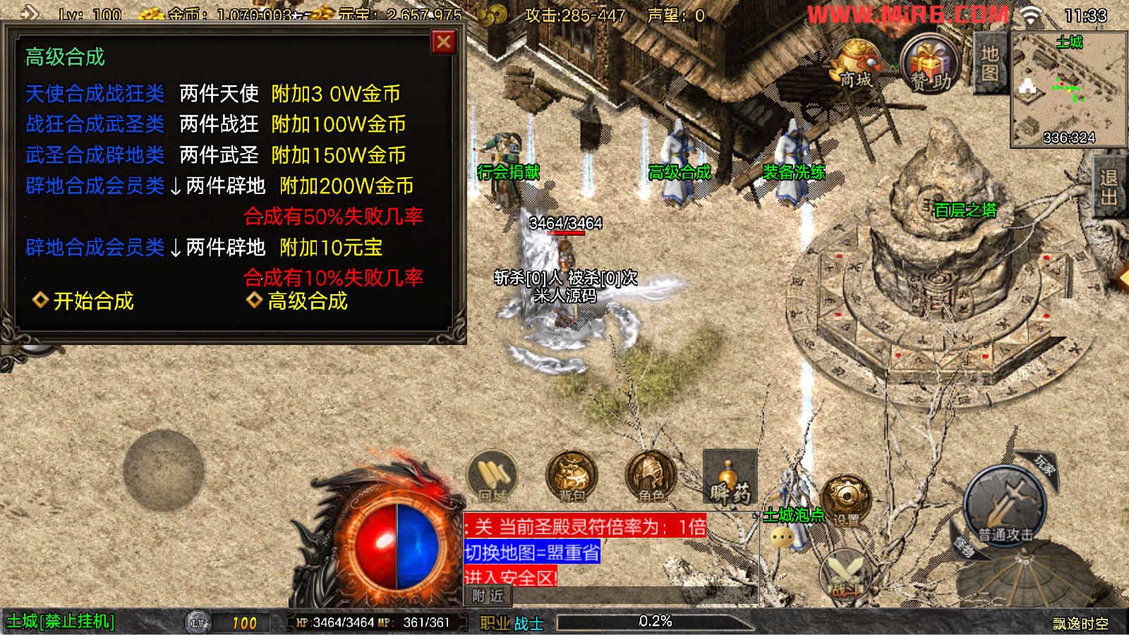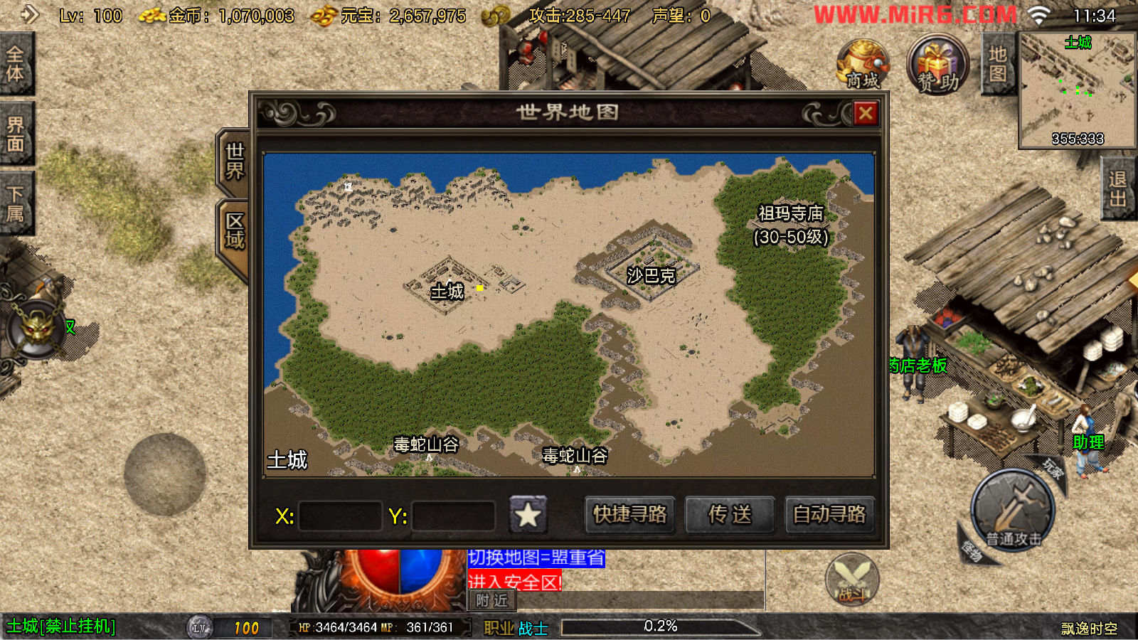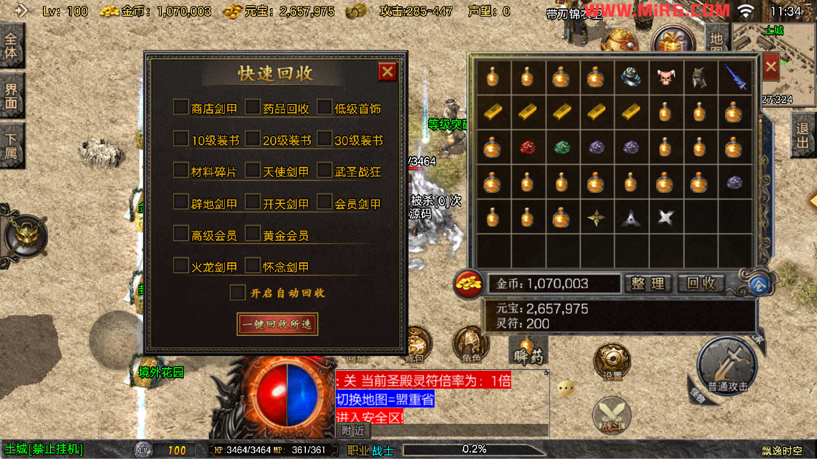 下面我们测试下游戏里的功能看看。好了,其他功能就自行测试吧。更多的游戏资源可以访问www.MiR6.com下载,我们每款游戏资源均单独制作了独立的视频架设教程,让小白也可以快速上手游戏架设,快来体验自己做GM的乐趣吧!