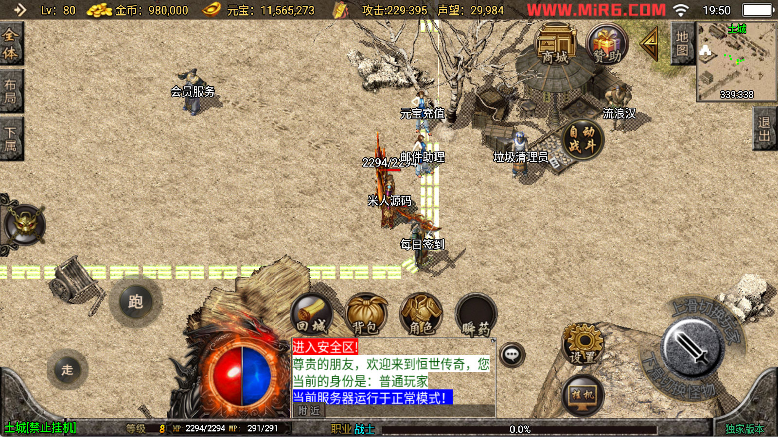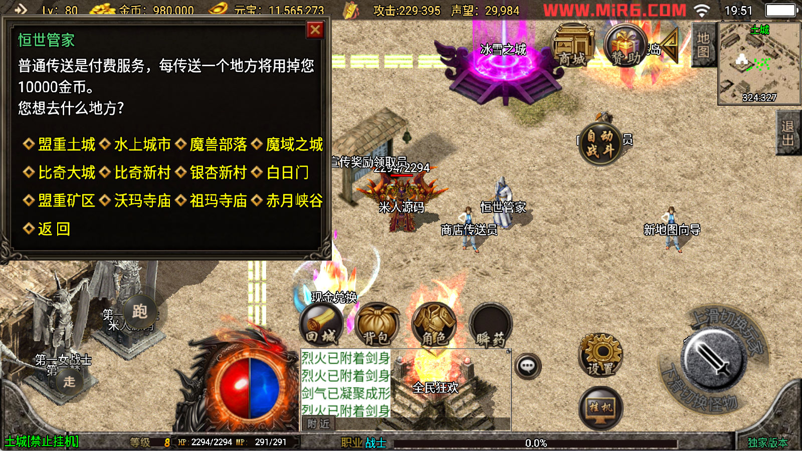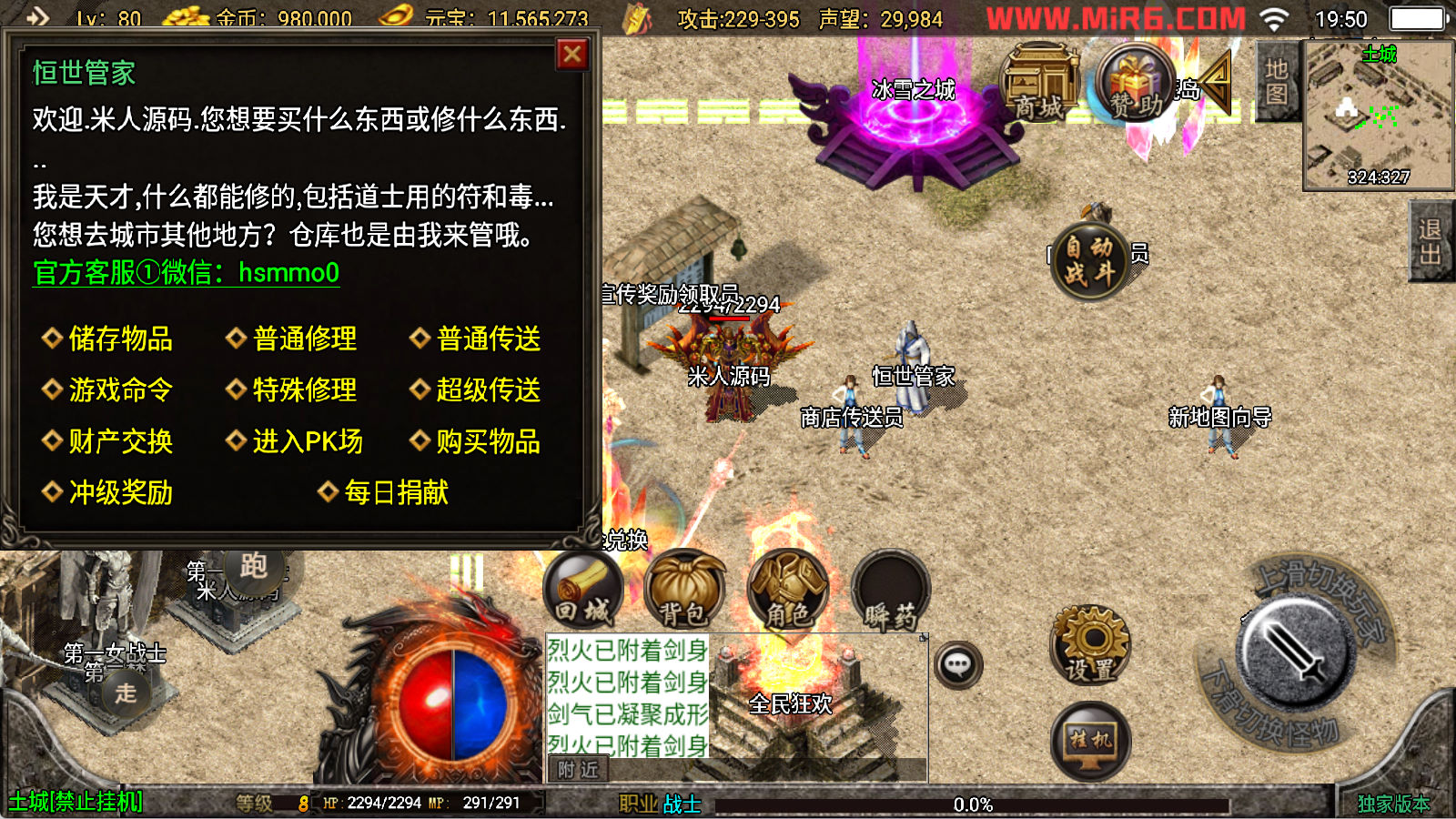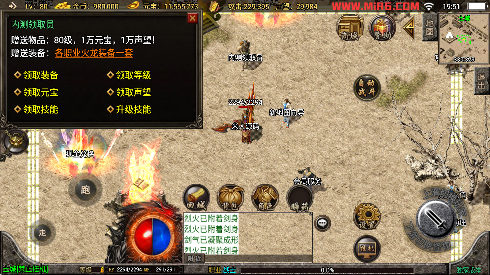 下面我们来测试下游戏里的功能看看。好了,其他功能就自行测试吧。更多的游戏资源可以访问www.MiR6.com下载,我们每款游戏资源均单独制作了独立的视频架设教程,让小白也可以快速上手游戏架设,快来体验自己做GM的乐趣吧!