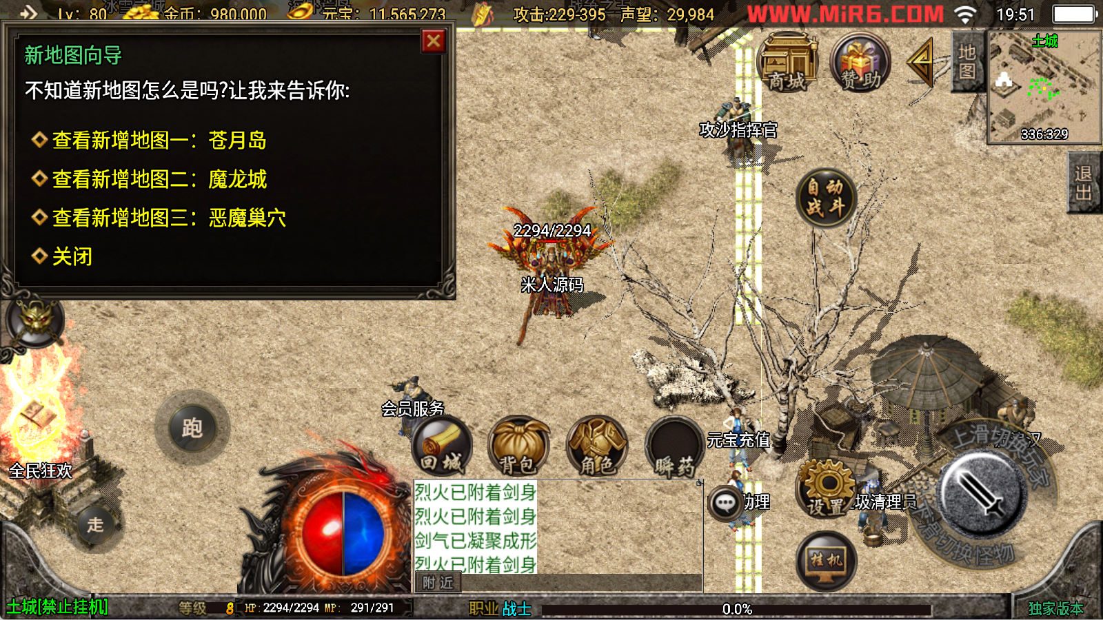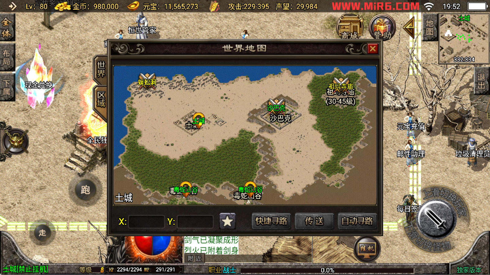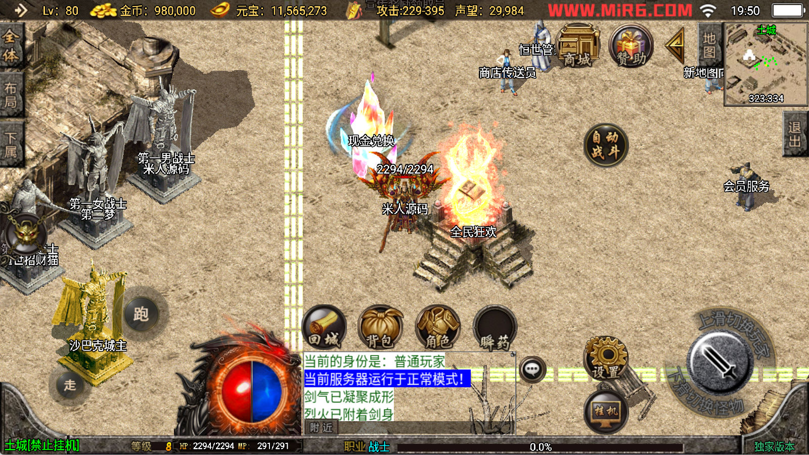 下面我们来测试下游戏里的功能看看。好了,其他功能就自行测试吧。更多的游戏资源可以访问www.MiR6.com下载,我们每款游戏资源均单独制作了独立的视频架设教程,让小白也可以快速上手游戏架设,快来体验自己做GM的乐趣吧!