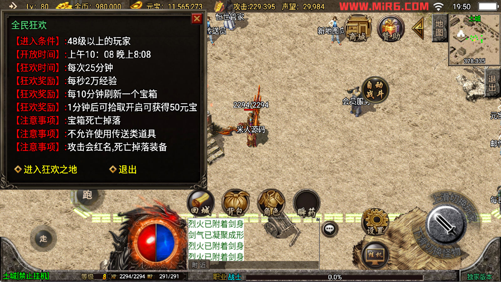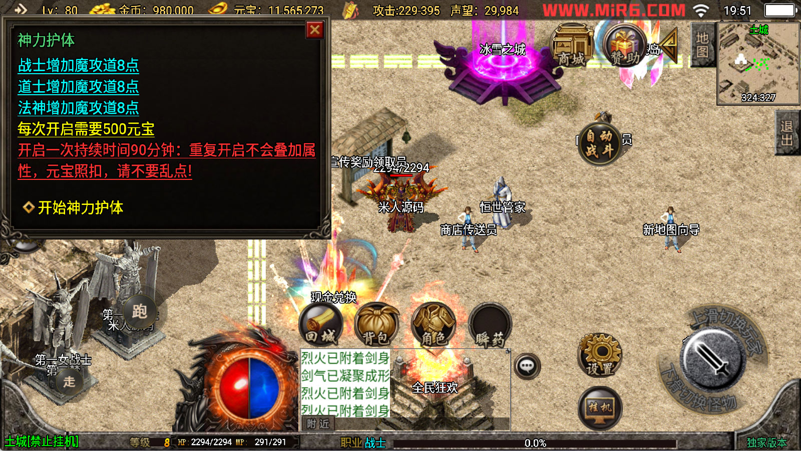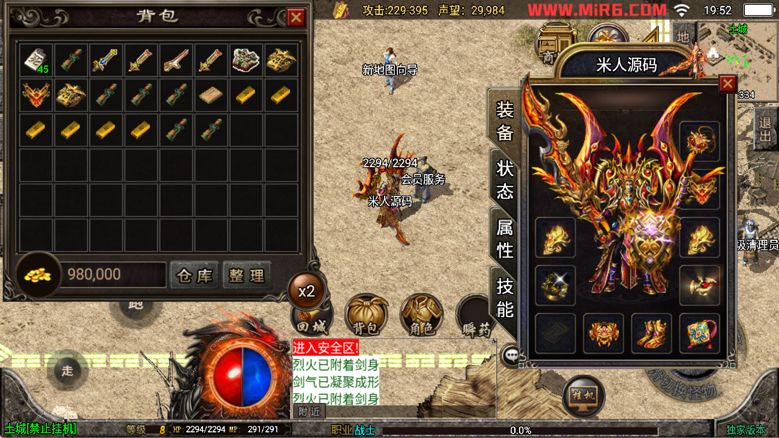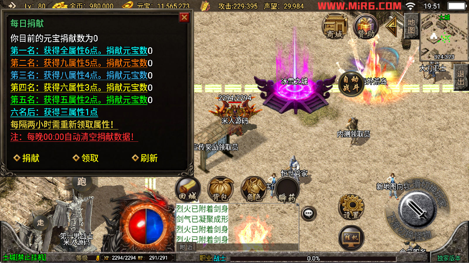下面我们来测试下游戏里的功能看看。好了,其他功能就自行测试吧。更多的游戏资源可以访问www.MiR6.com下载,我们每款游戏资源均单独制作了独立的视频架设教程,让小白也可以快速上手游戏架设,快来体验自己做GM的乐趣吧!