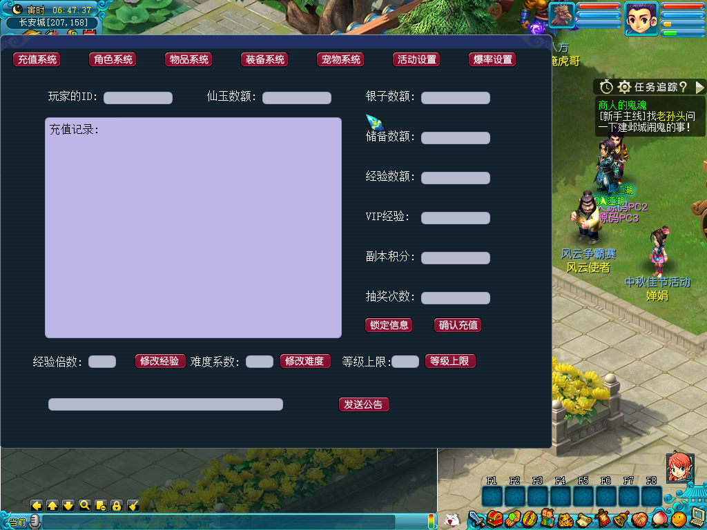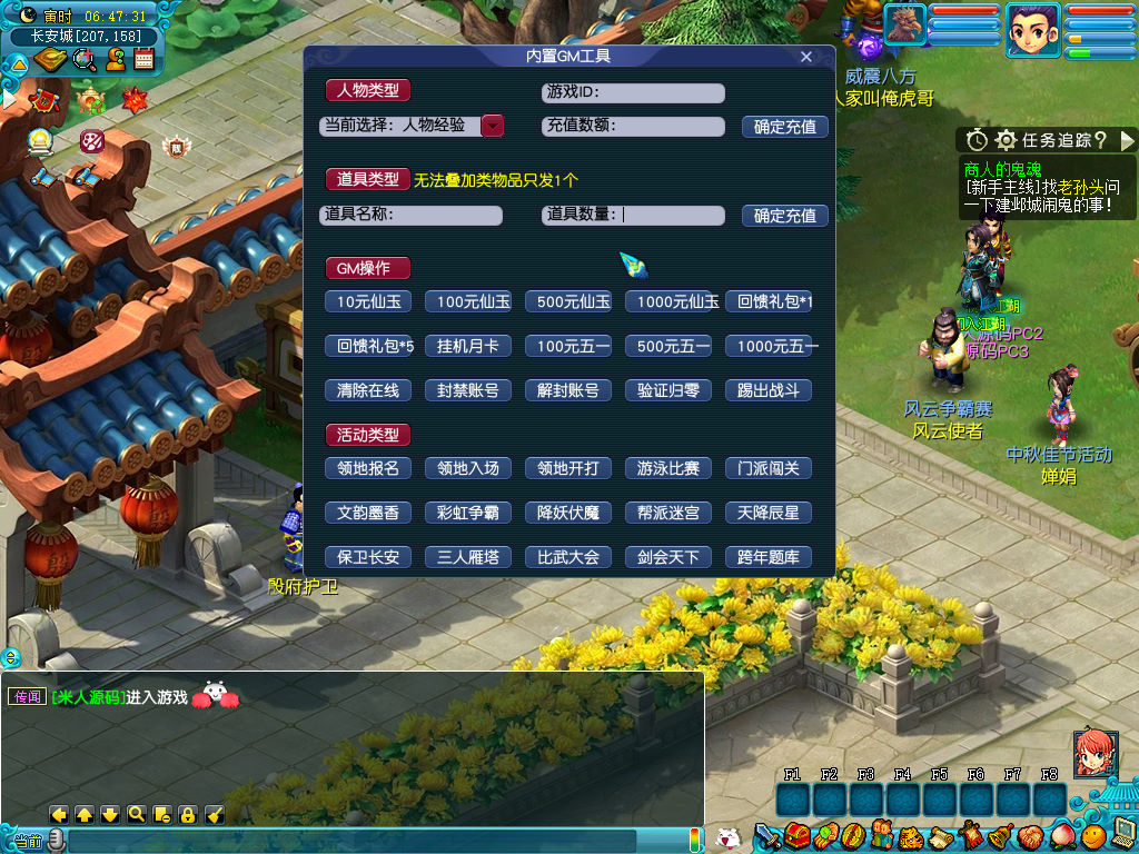 注意:此内置GM工具,仅限在PC客户端内使用。另外只可使用此内置GM工具,网关里的GM功能不可使用。