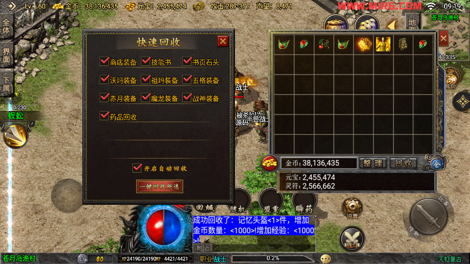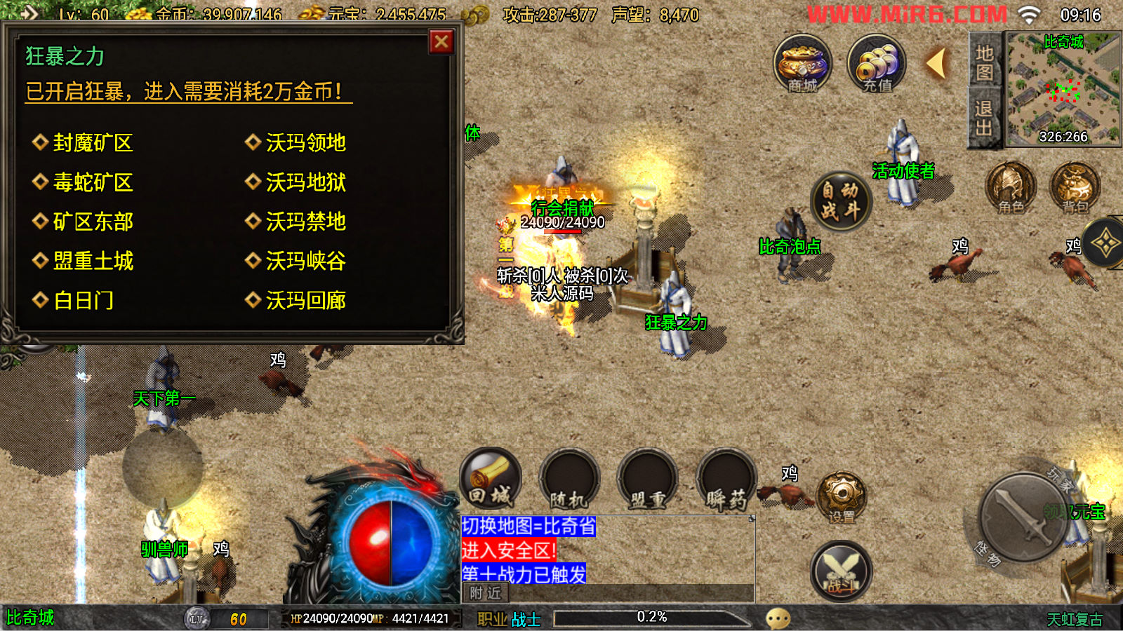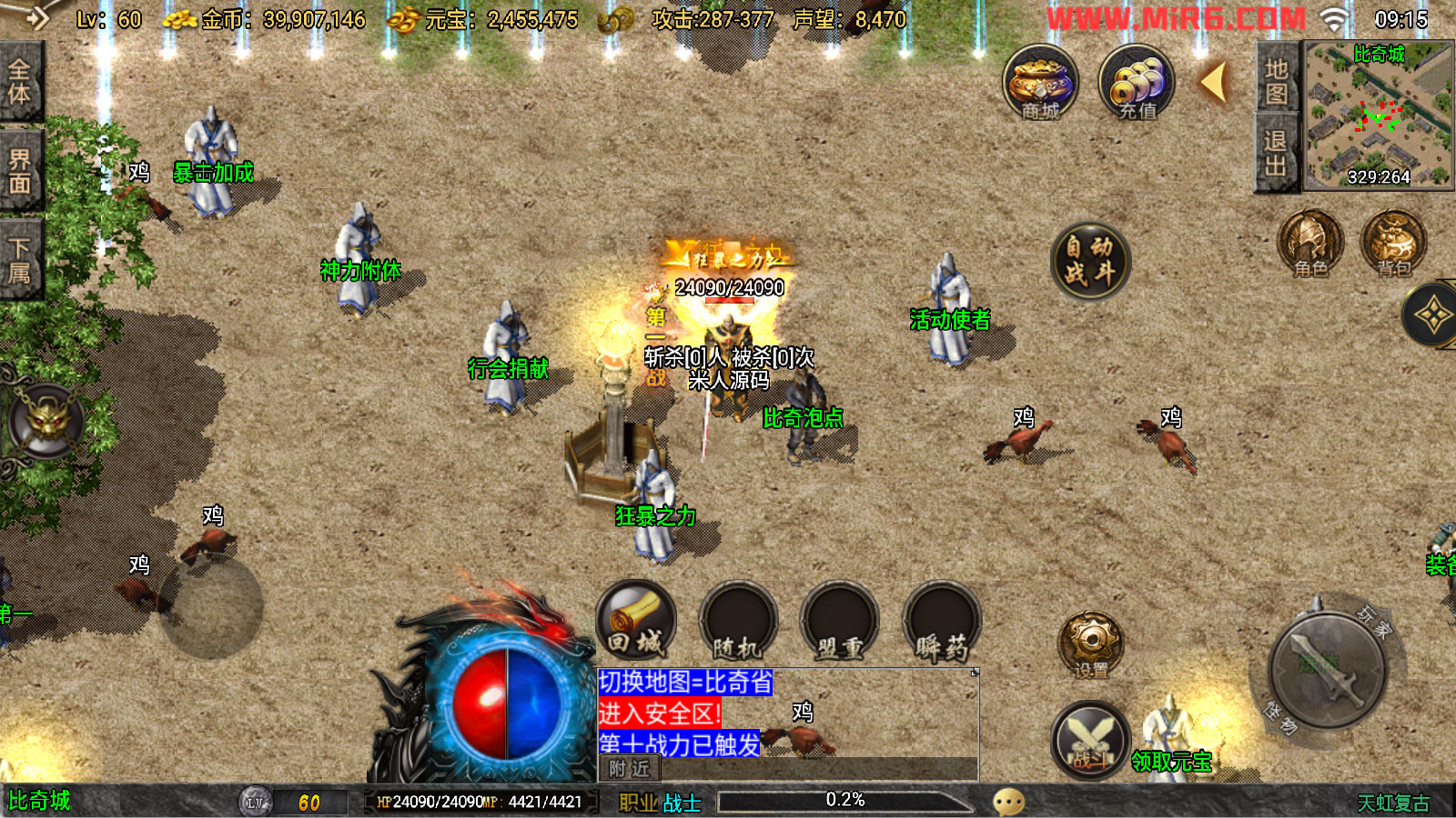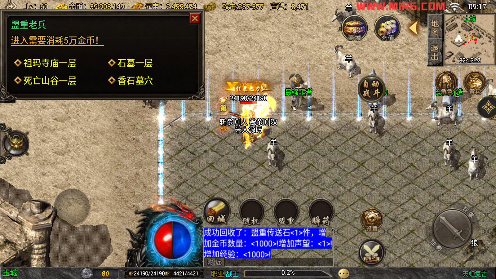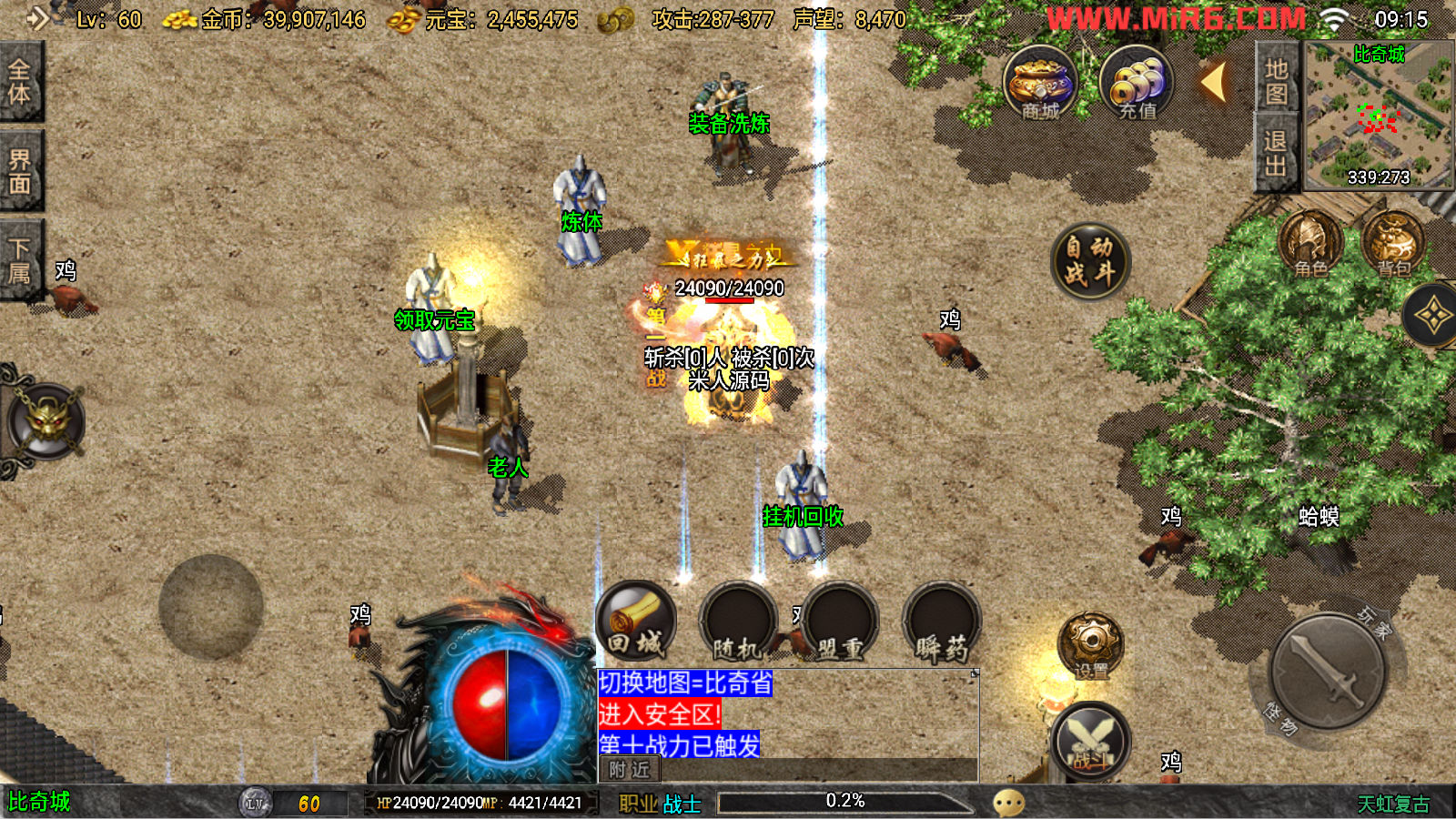 下面我们来测试下游戏里的功能看看吧。好了,其他功能就自行测试吧。更多的游戏资源可以访问www.MiR6.com下载,我们每款游戏资源均单独制作了独立的视频架设教程,让小白也可以快速上手游戏架设。快来体验自己做GM的乐趣吧!