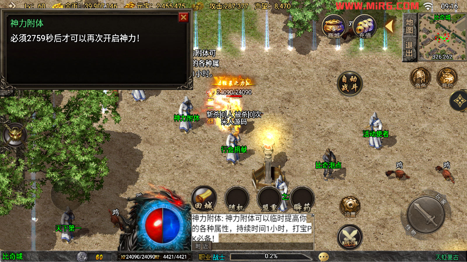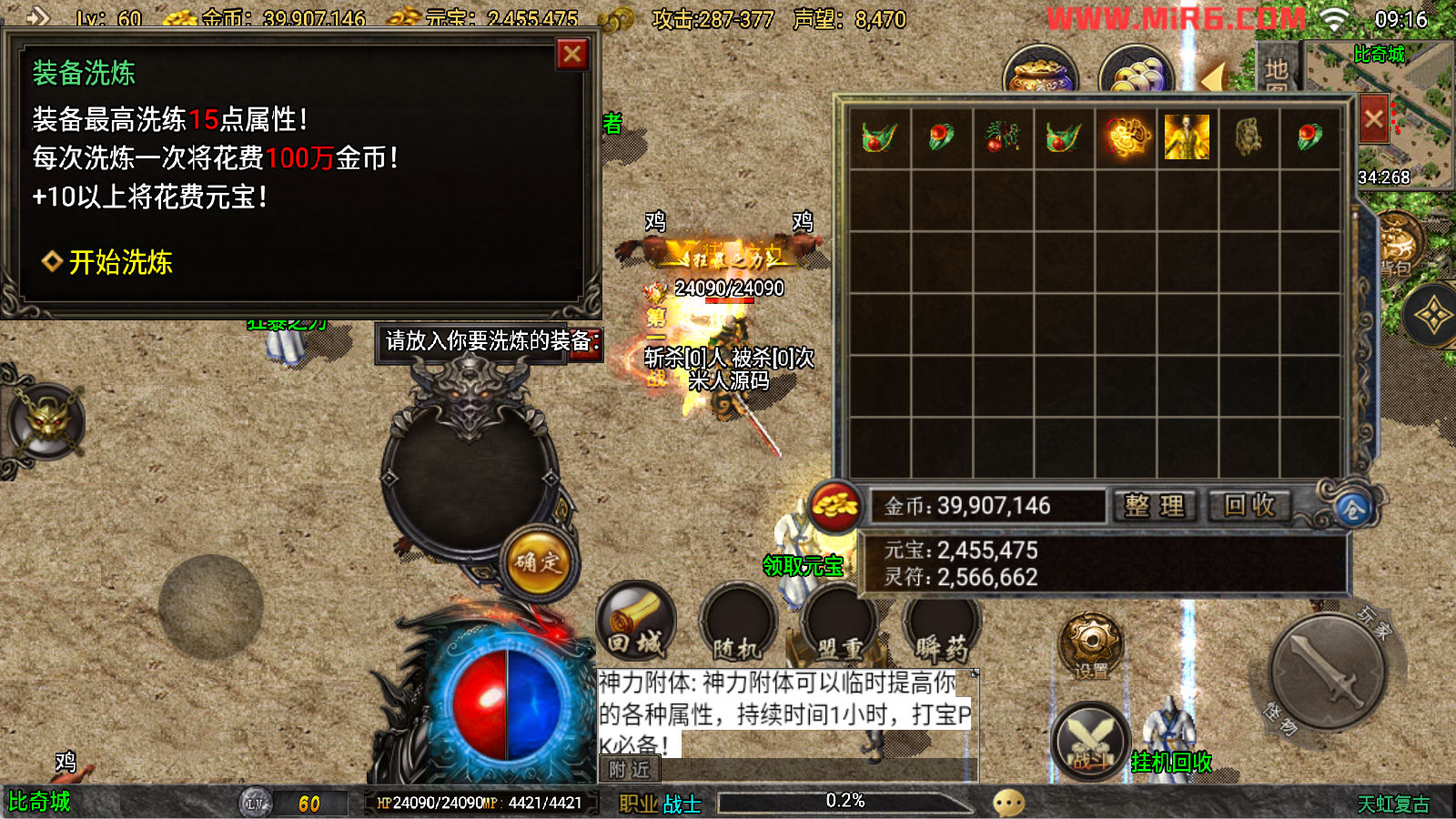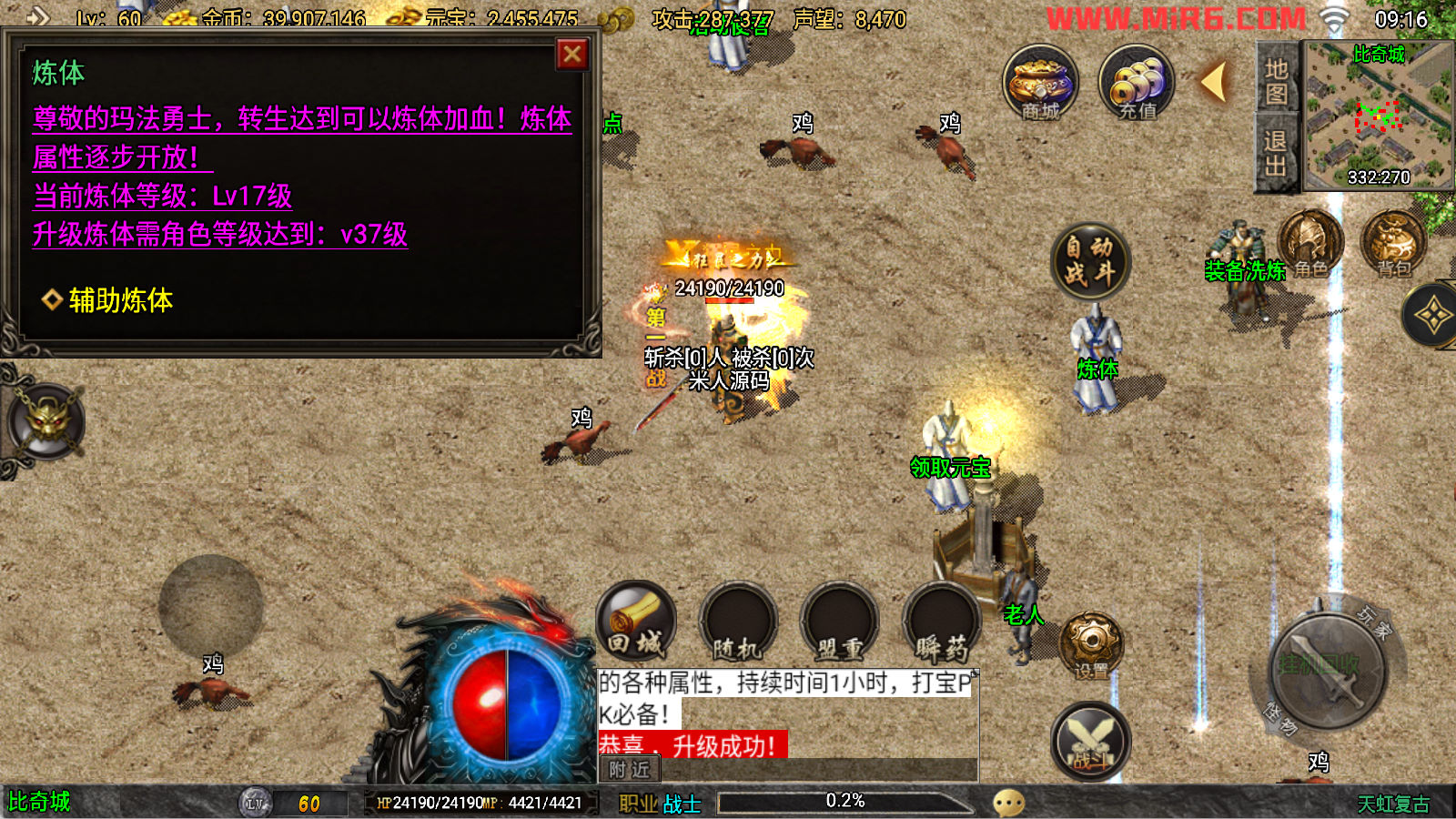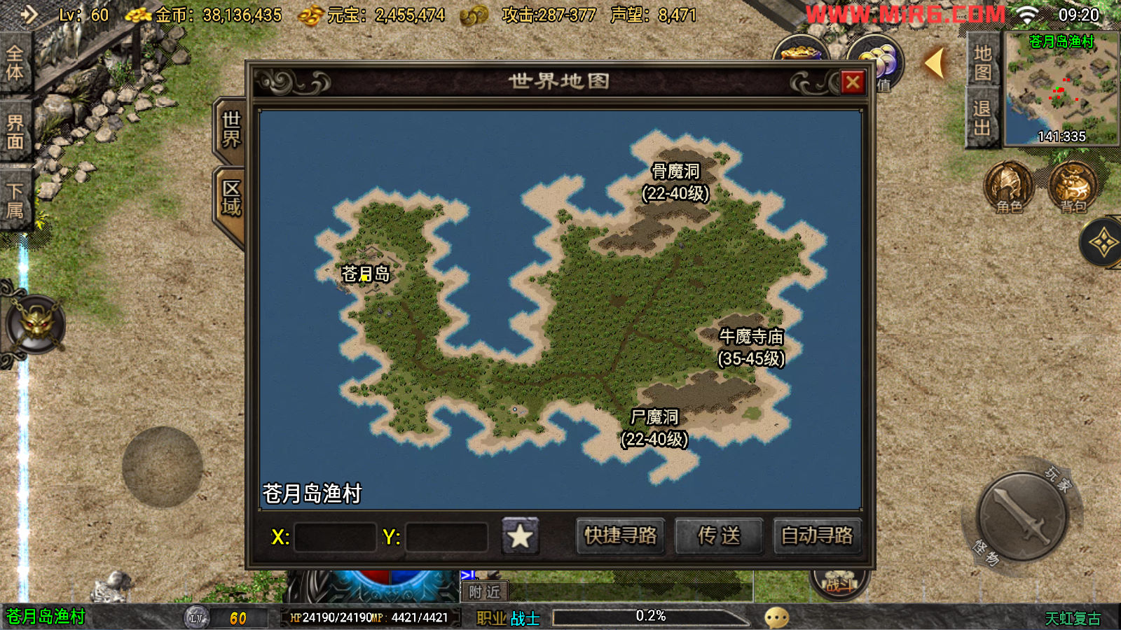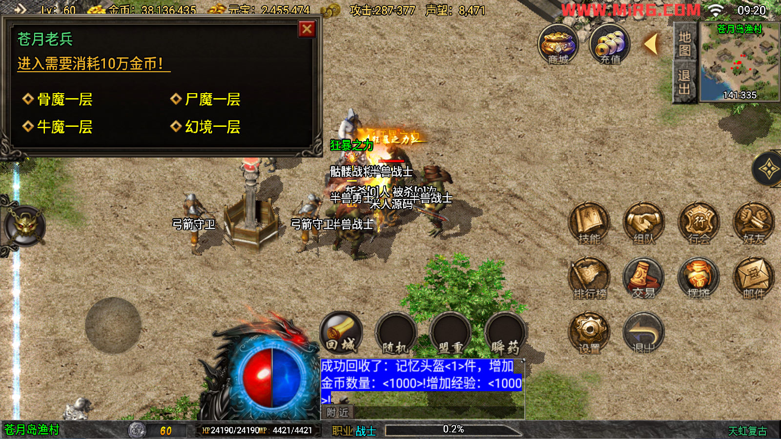下面我们来测试下游戏里的功能看看吧。好了,其他功能就自行测试吧。更多的游戏资源可以访问www.MiR6.com下载,我们每款游戏资源均单独制作了独立的视频架设教程,让小白也可以快速上手游戏架设。快来体验自己做GM的乐趣吧!