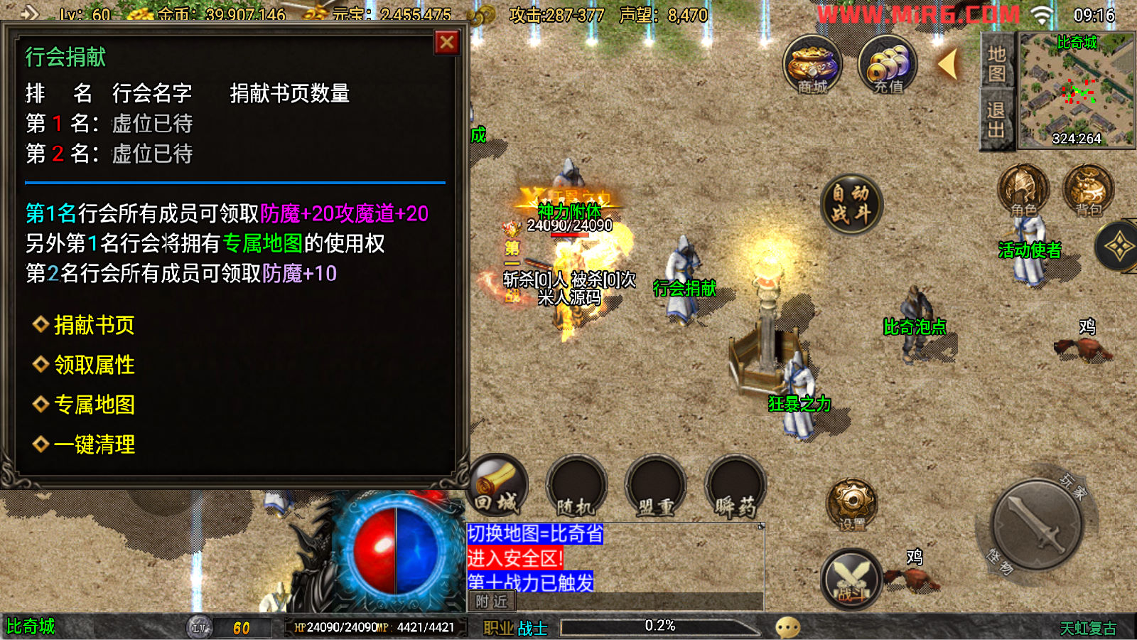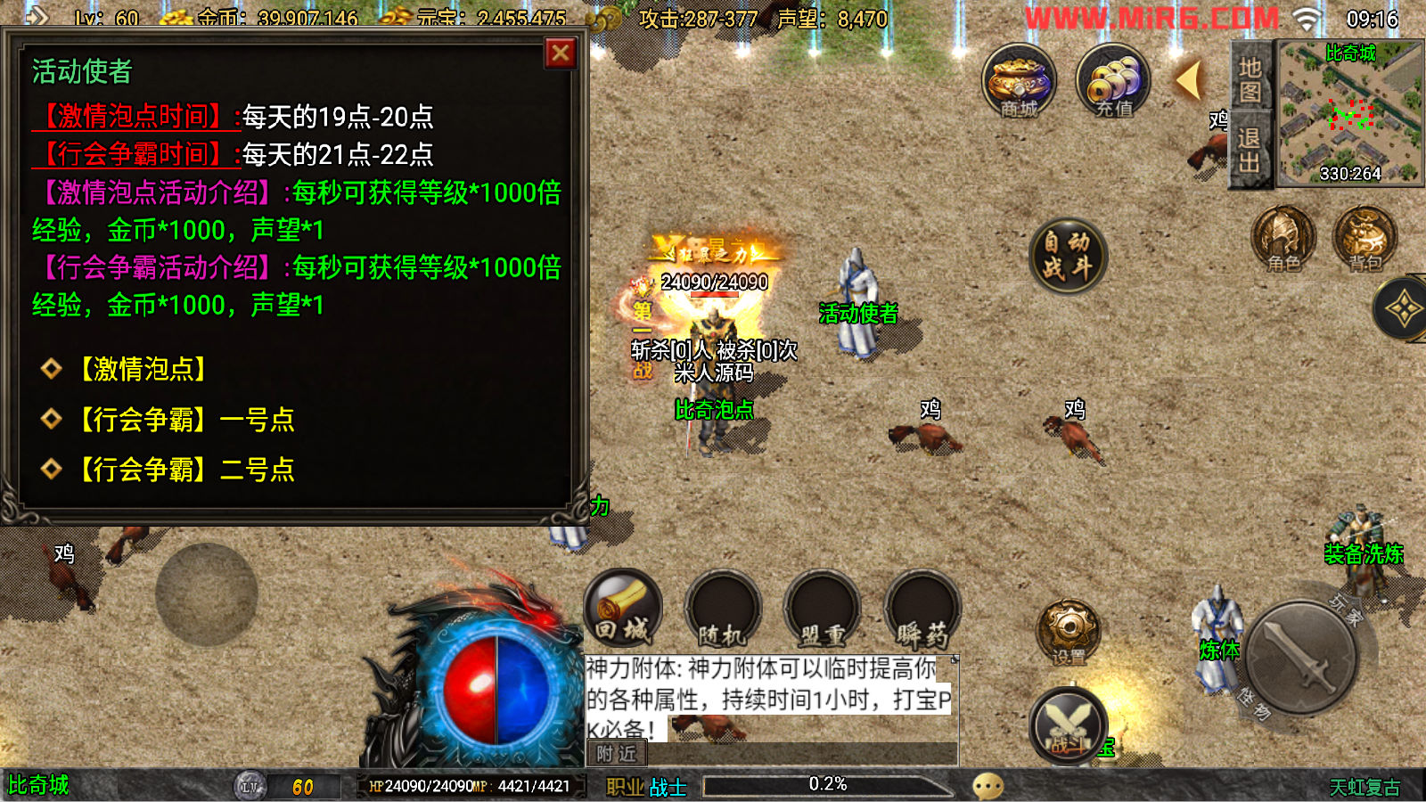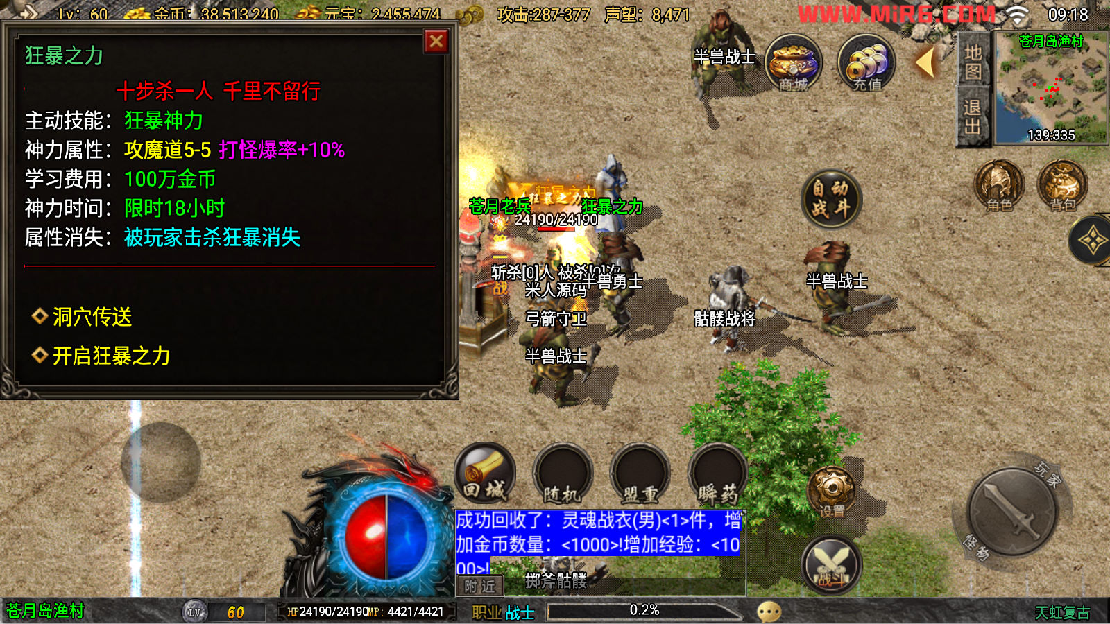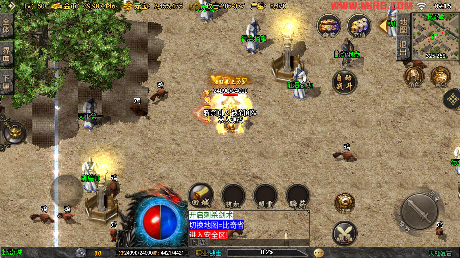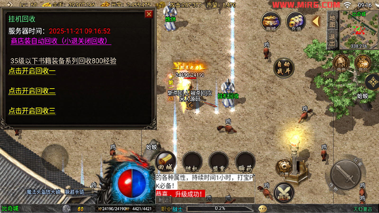 下面我们来测试下游戏里的功能看看吧。好了,其他功能就自行测试吧。更多的游戏资源可以访问www.MiR6.com下载,我们每款游戏资源均单独制作了独立的视频架设教程,让小白也可以快速上手游戏架设。快来体验自己做GM的乐趣吧!